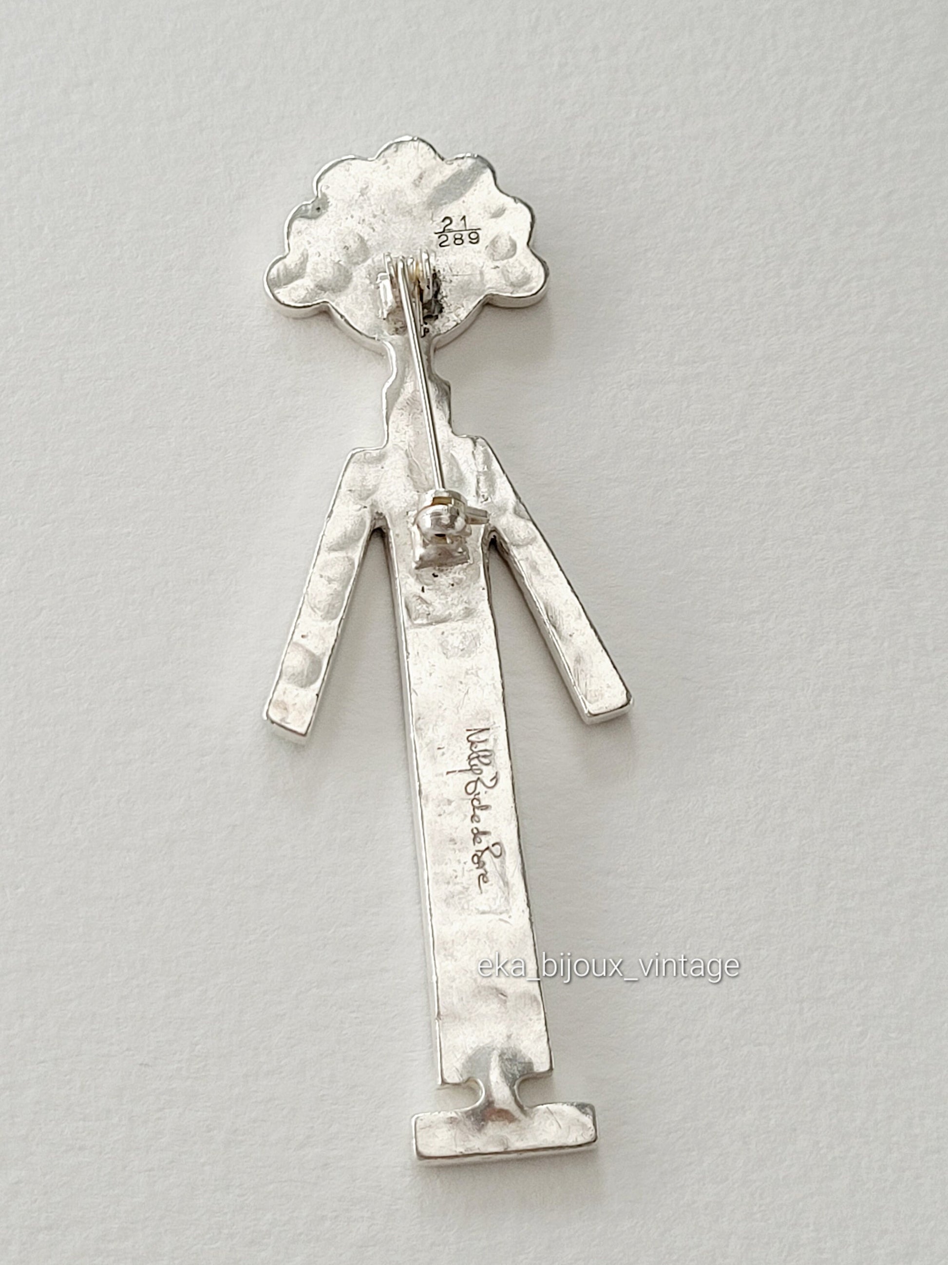 Magnificent vintage Biche de Bere brooch, in silver plated and green enamels.