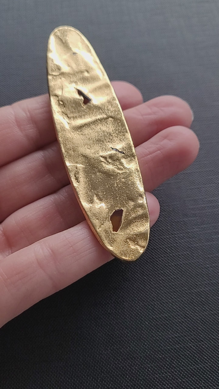 Magnifique grande broche vintage Biche de Bere, base d'étain doré à l'or fin 0.5 micron 24 carats.