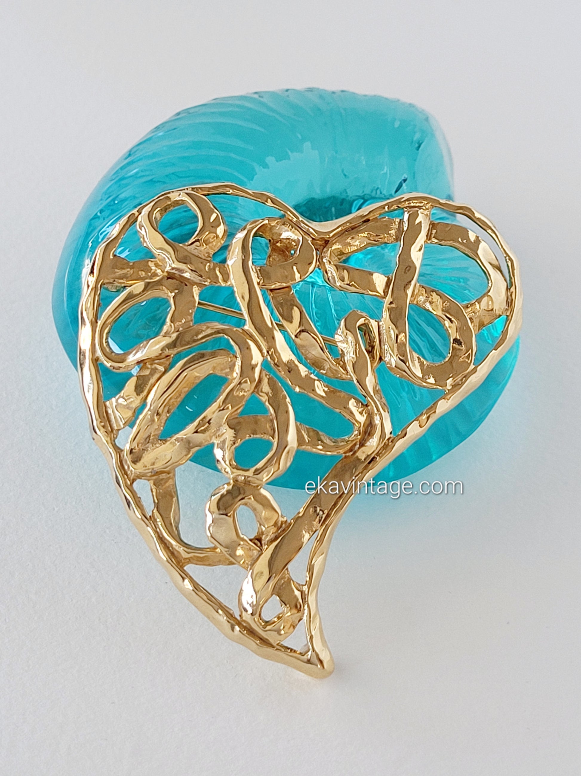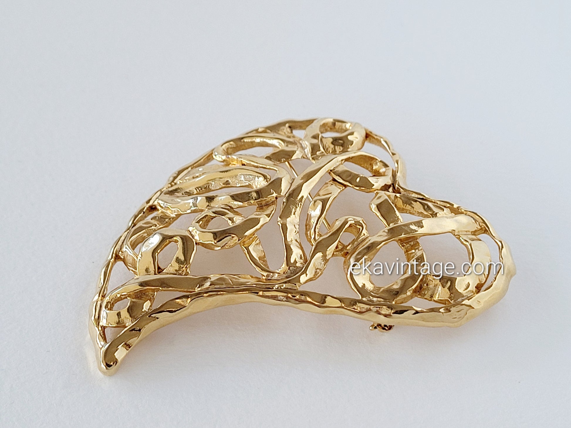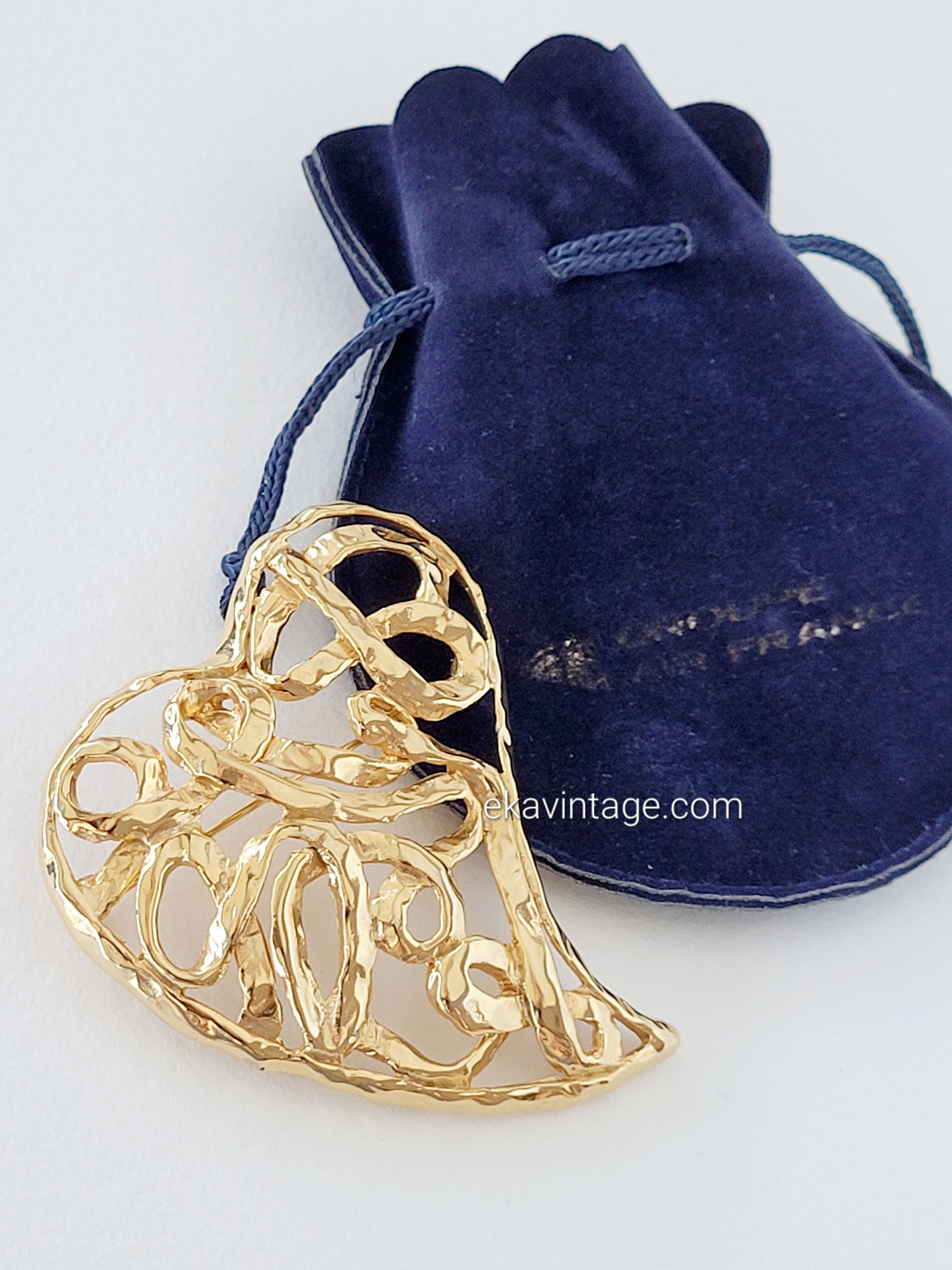 Authentique et magnifique grande broche vintage en forme de cœur, en plaqué or. Créé pour Air France par Christian Lacroix.