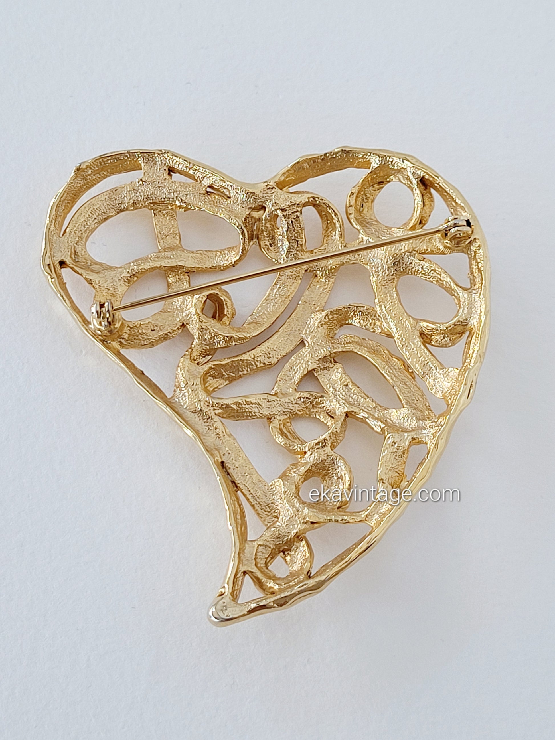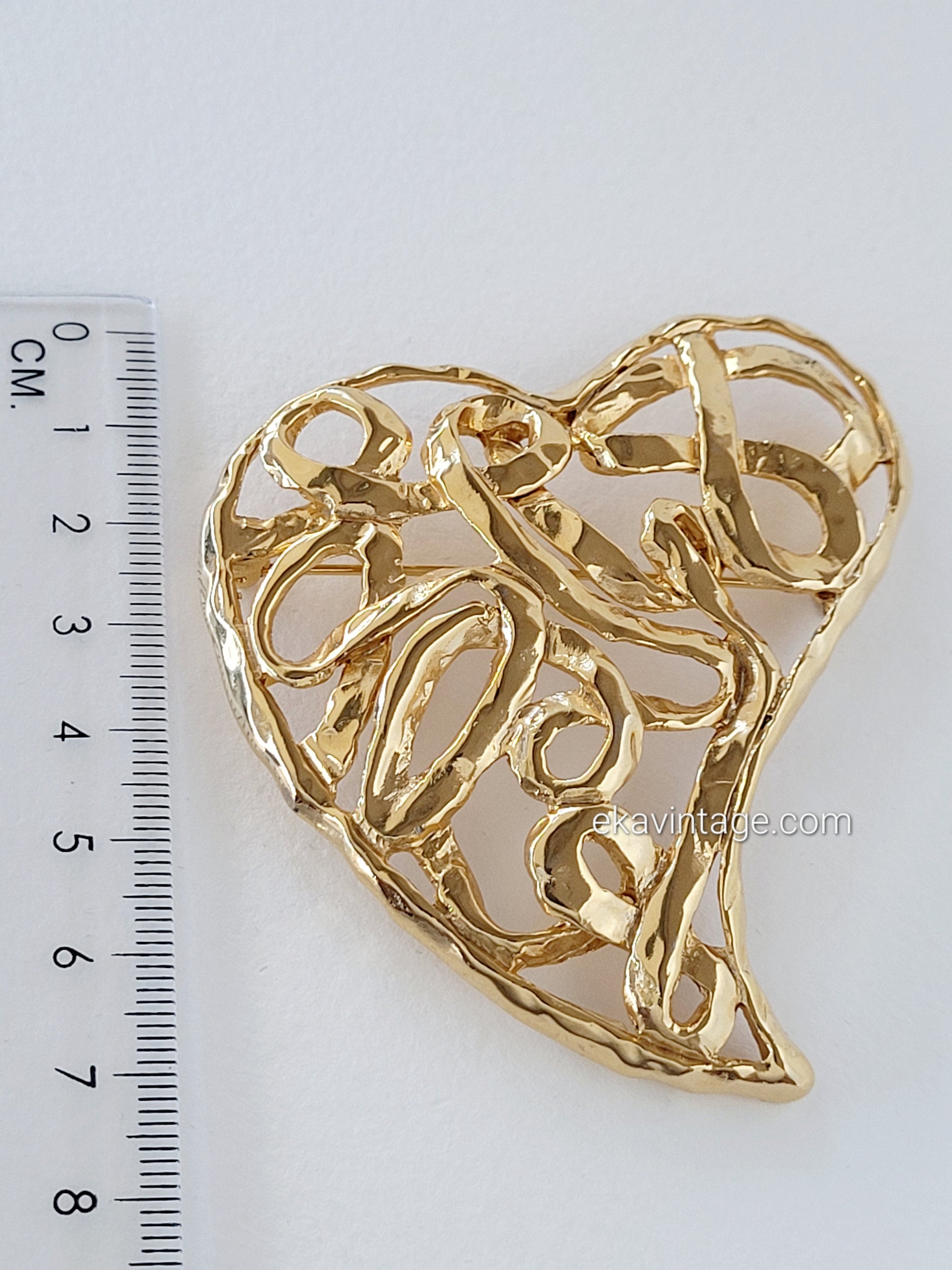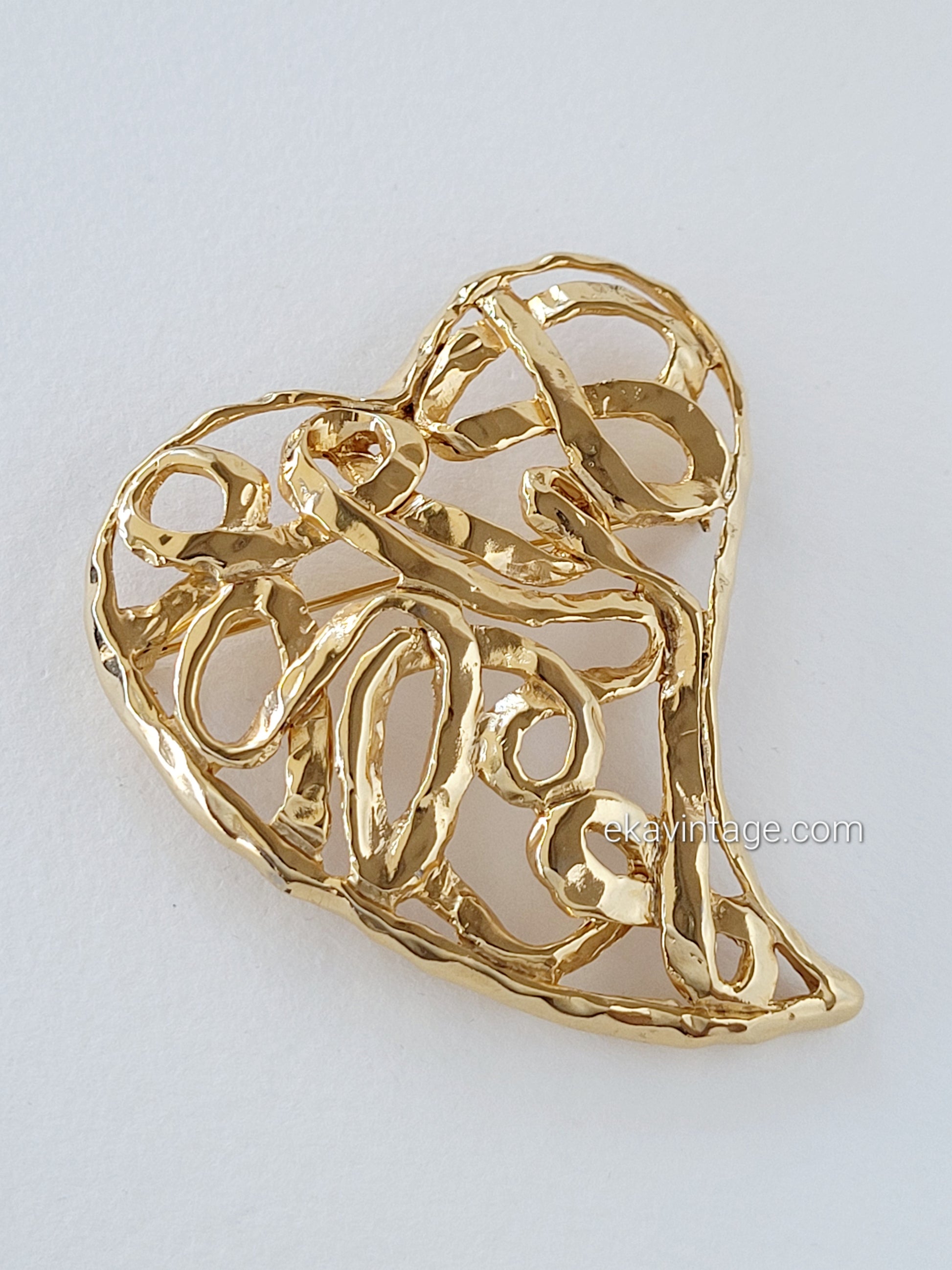 Authentique et magnifique grande broche vintage en forme de cœur, en plaqué or. Créé pour Air France par Christian Lacroix.