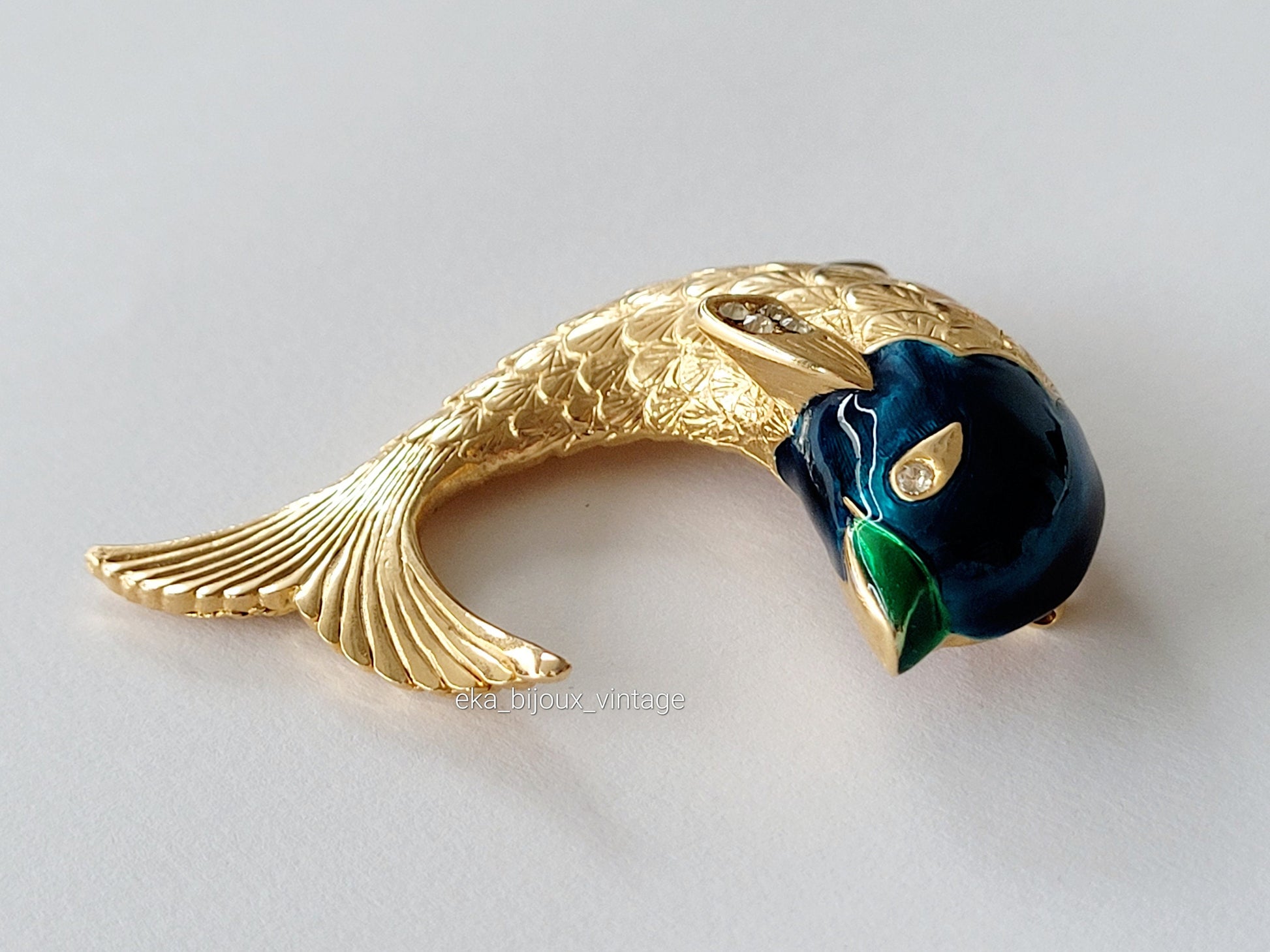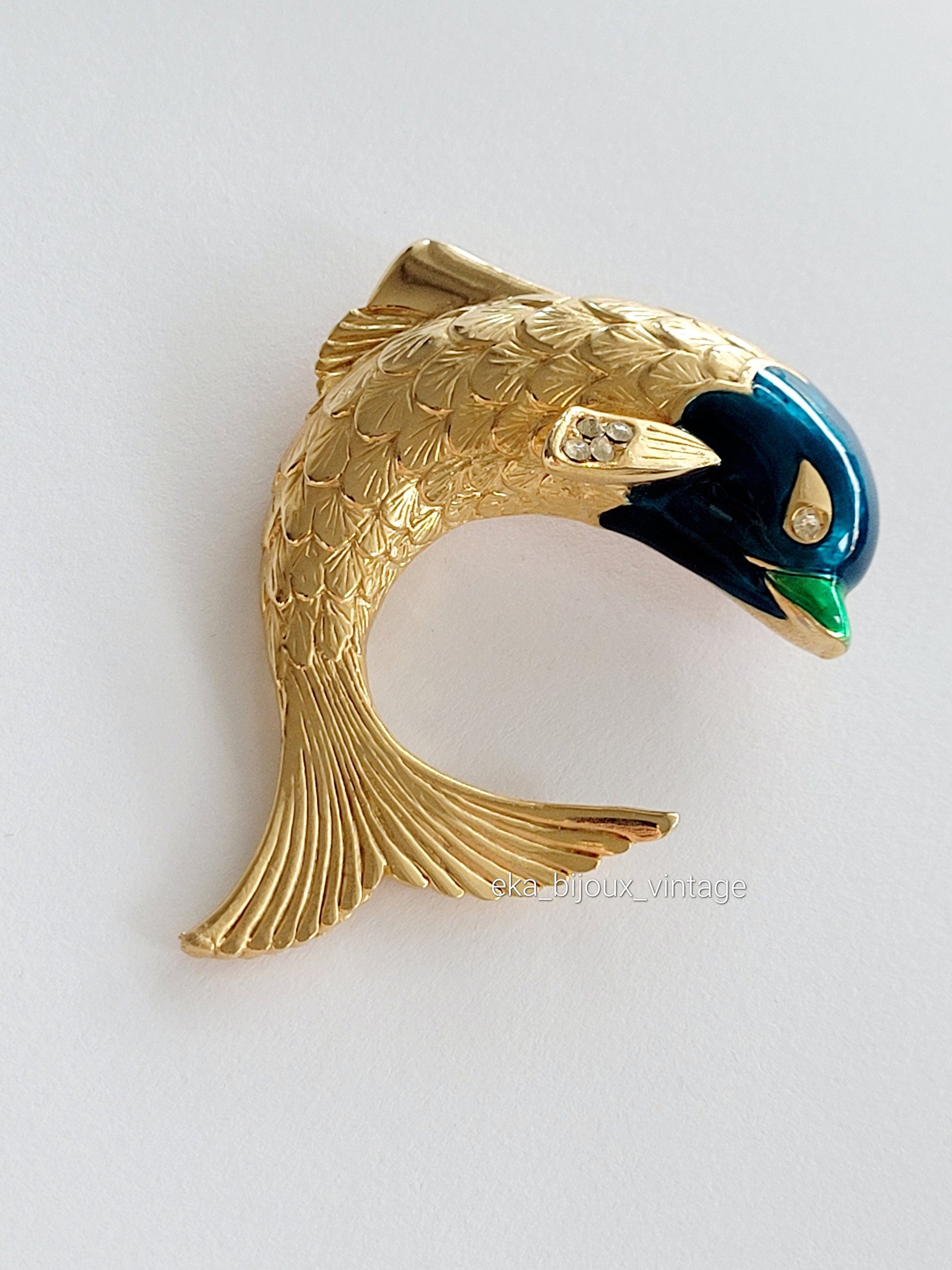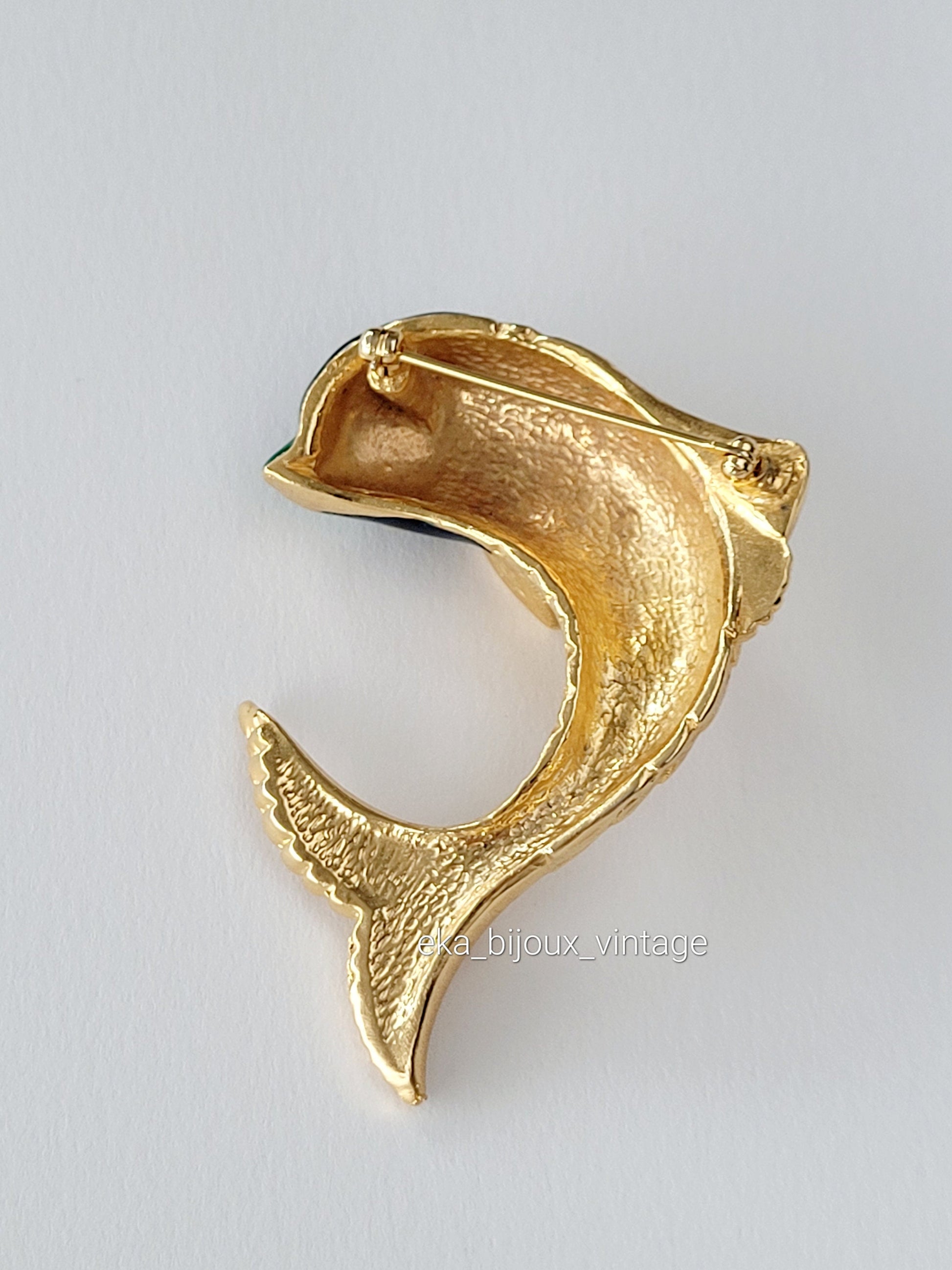 Very beautiful vintage gold-plated brooch in the shape of a fish.
