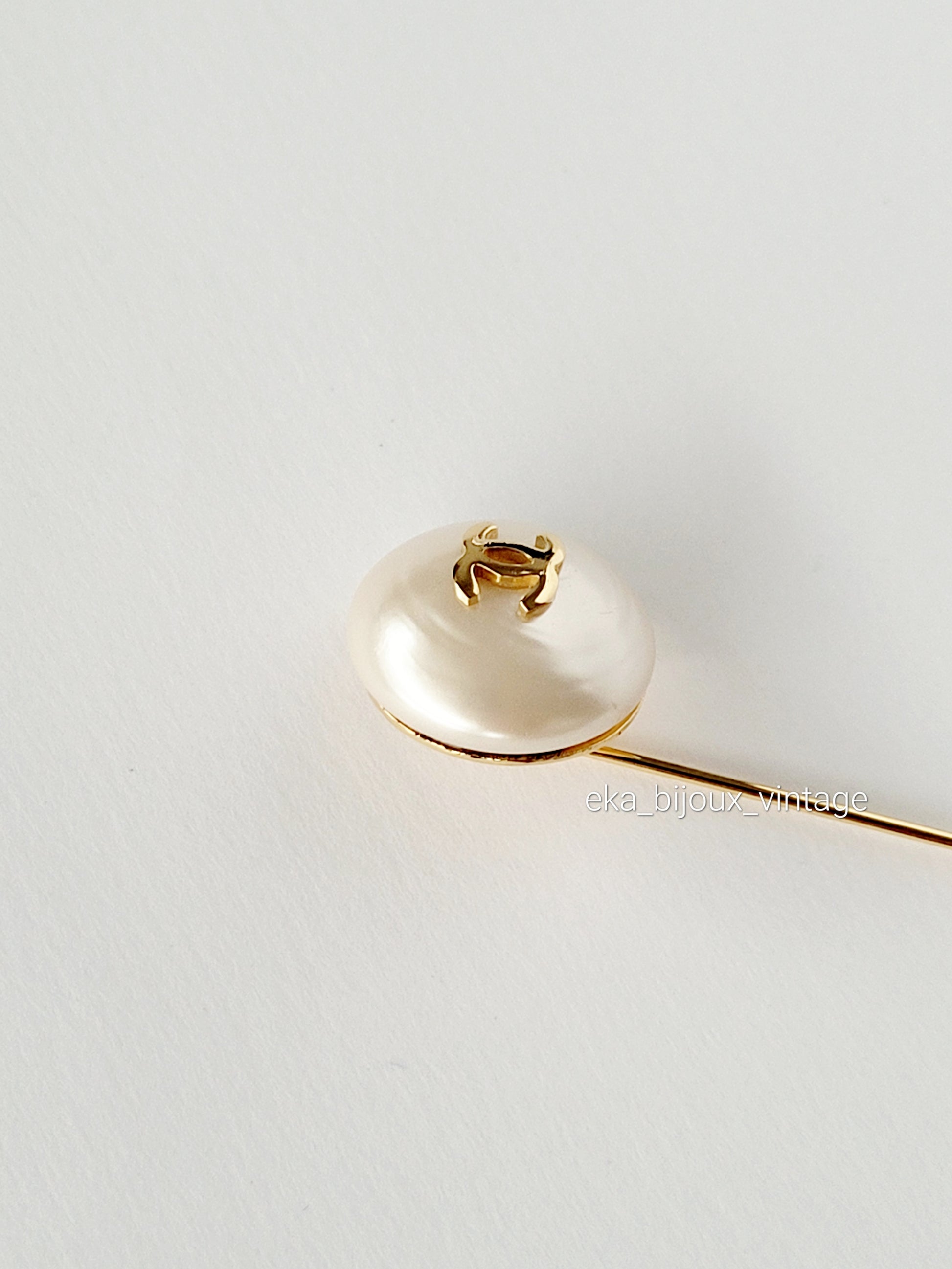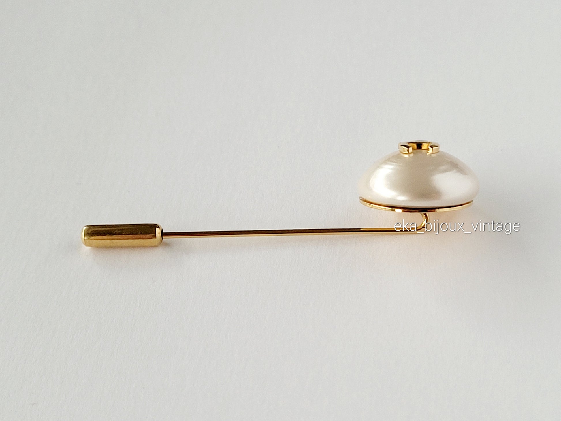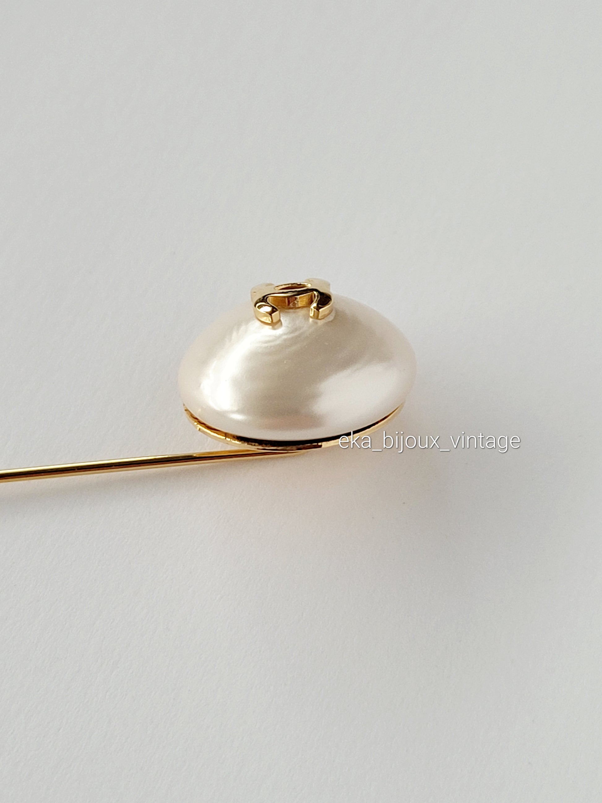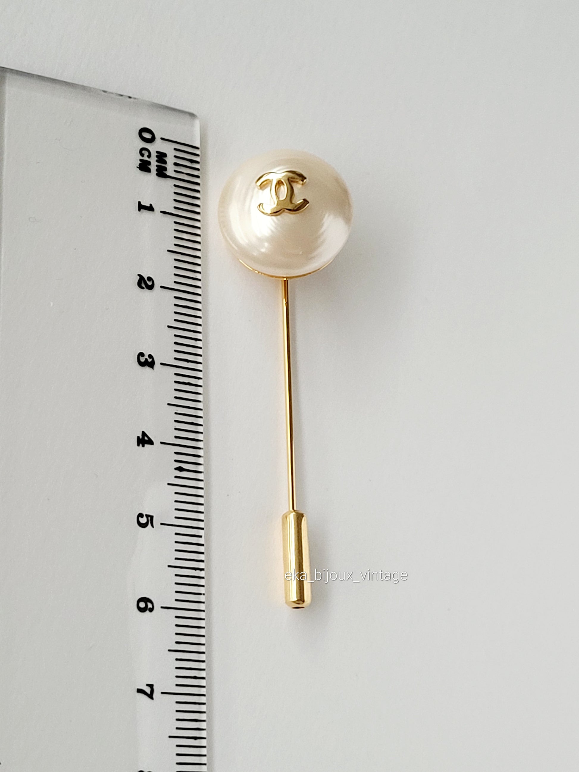 Très belle et élégante broche / épingle vintage Chanel. Broche perle avec le sigle CC au centre.