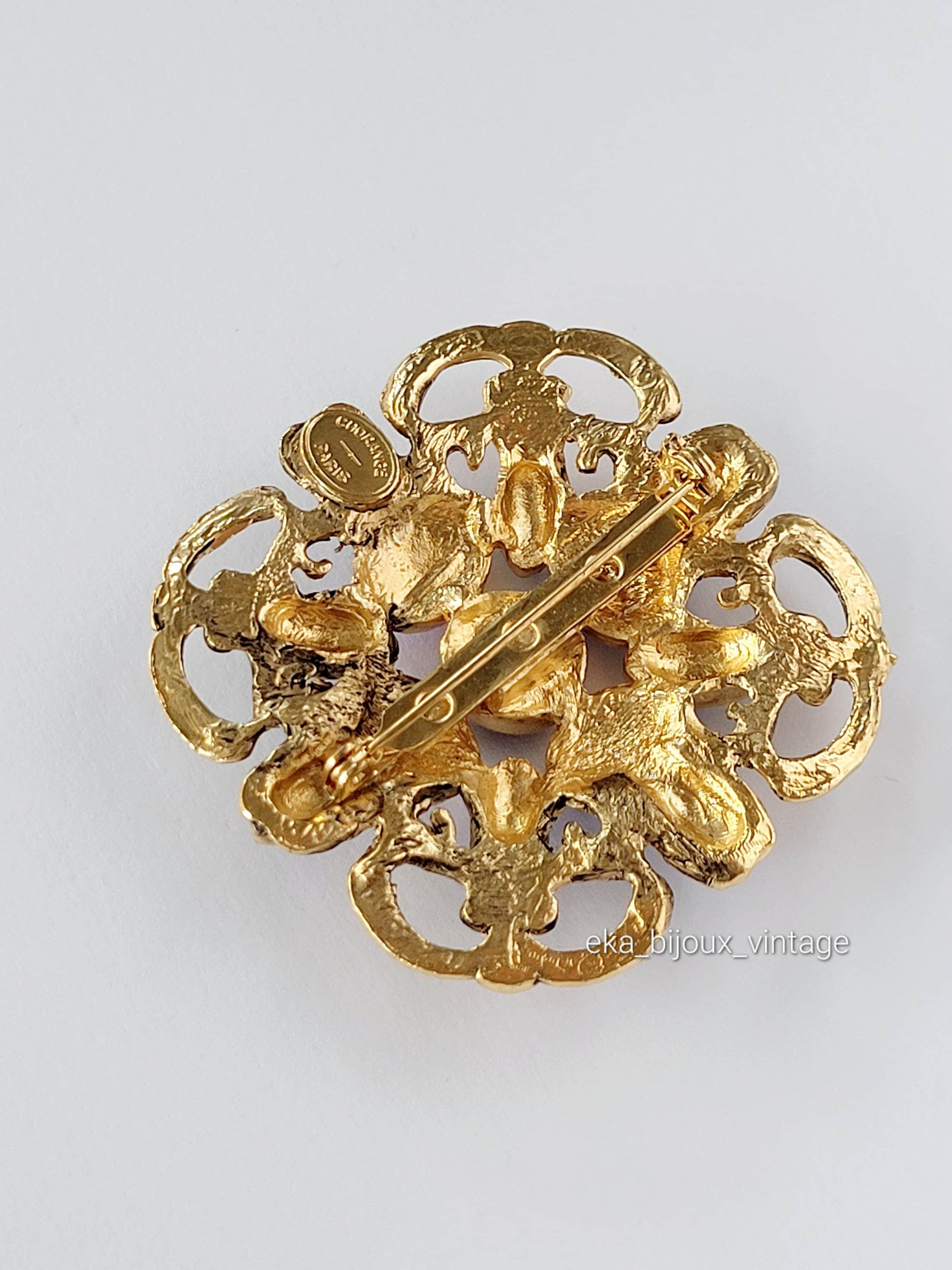 Magnificent vintage Chorange Paris brooch, gold plated with blue glass cabochons.