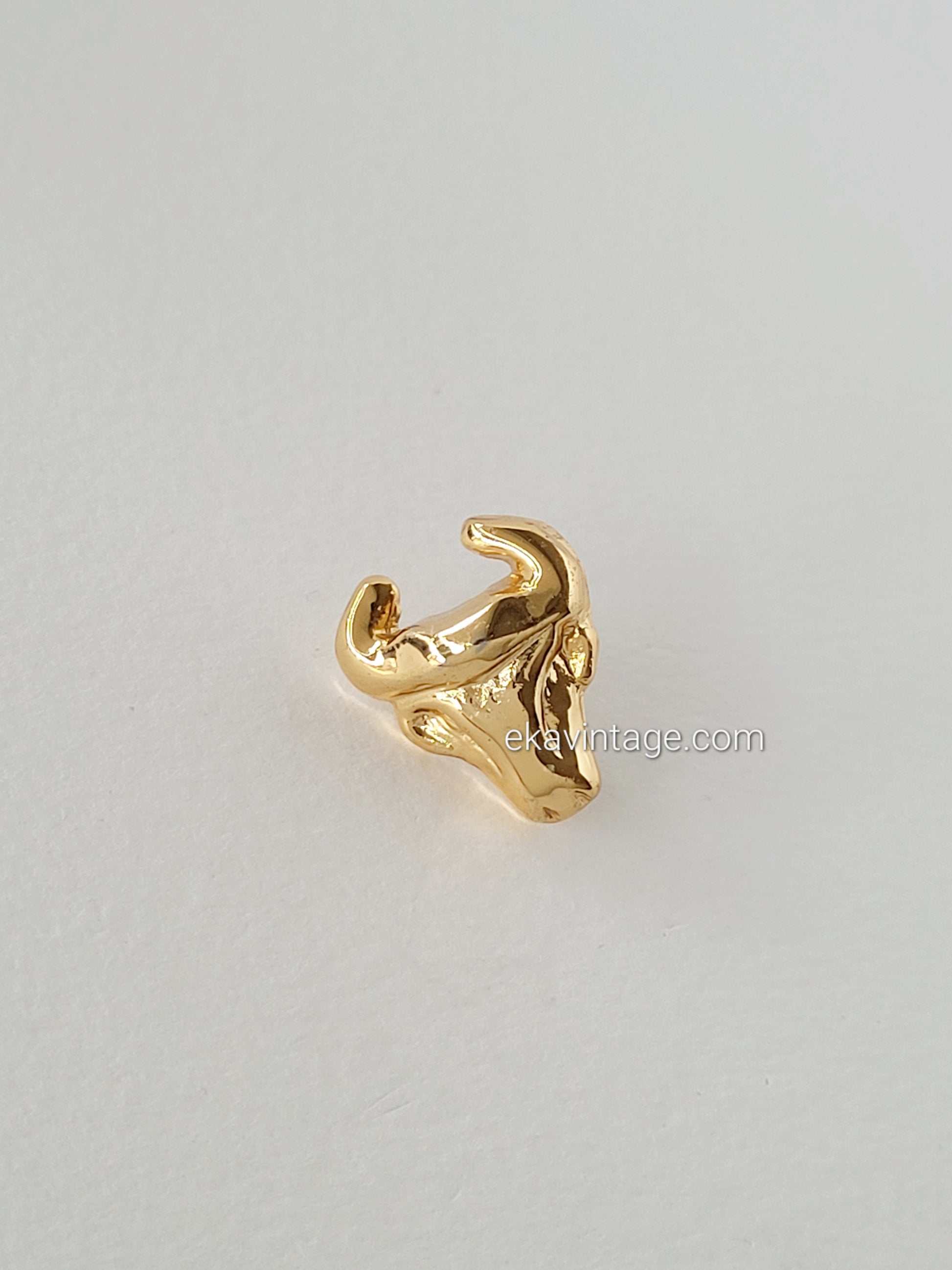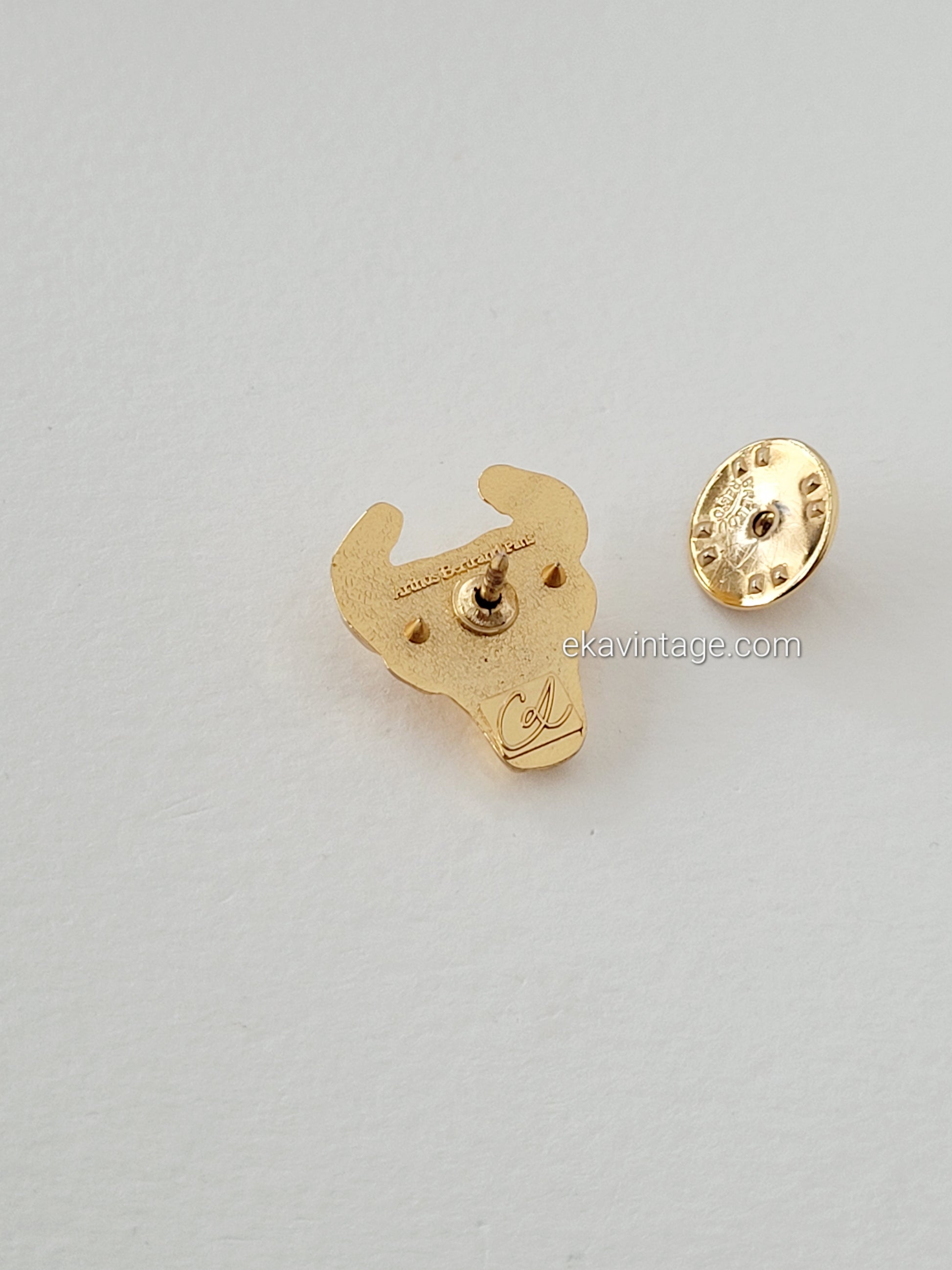 Authentique pin's Christian Lacroix vintage réalisé par Arthus Bertrand Paris à tete de taureau.