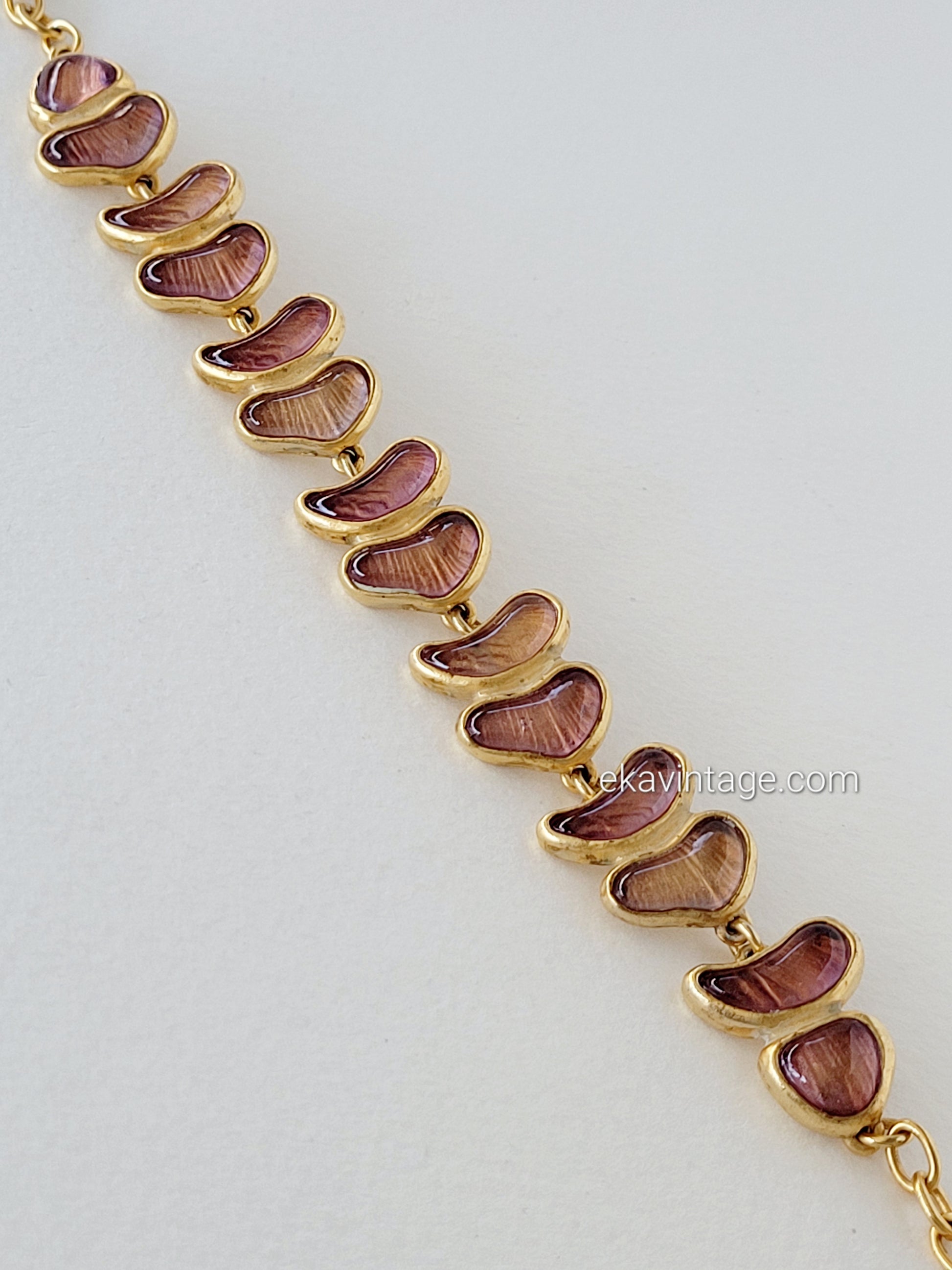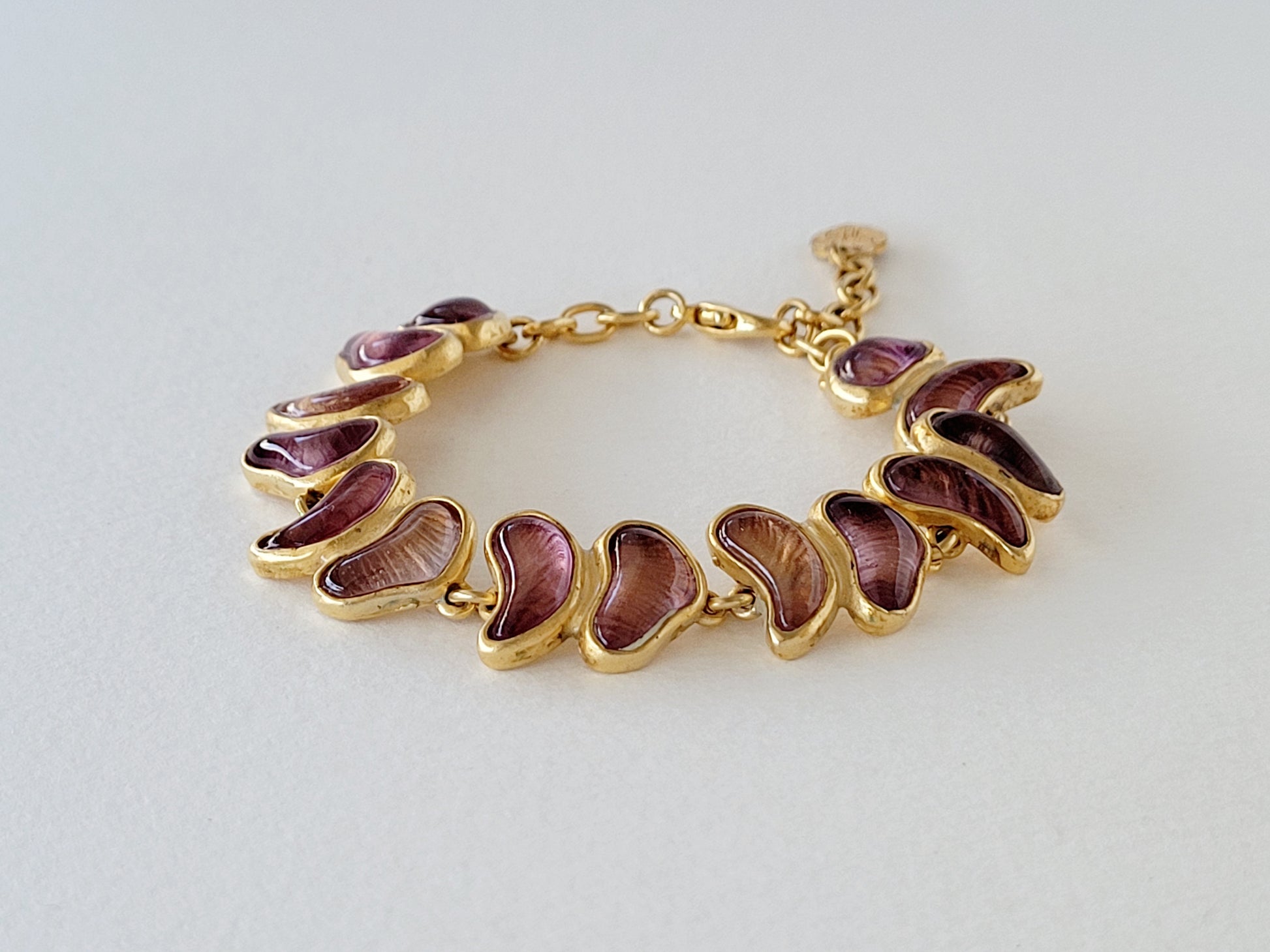 Magnifique bracelet vintage Dolce Vita Paris en plaqué or avec cabochons en résine.