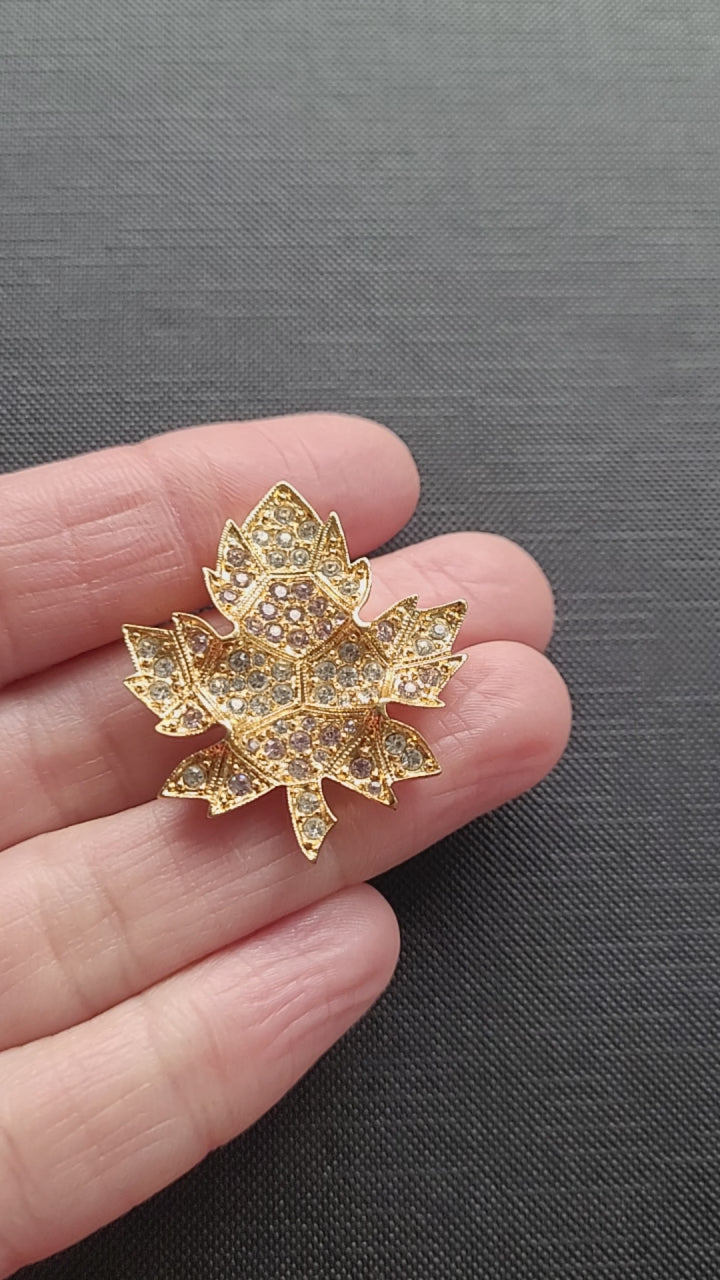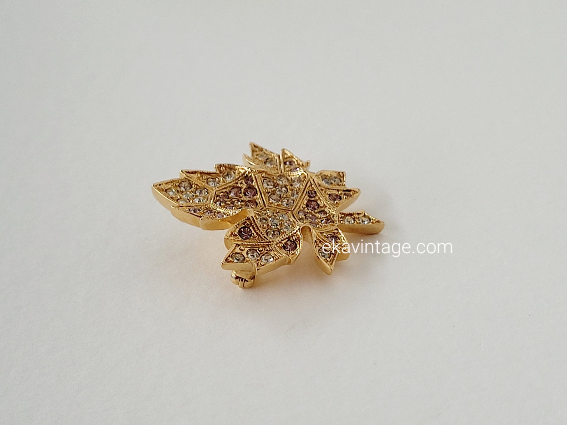 Magnifique petite broche D'orlan vintage en plaqué or et cristaux.