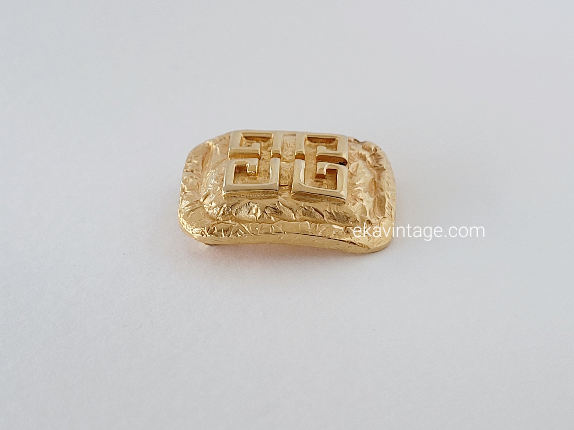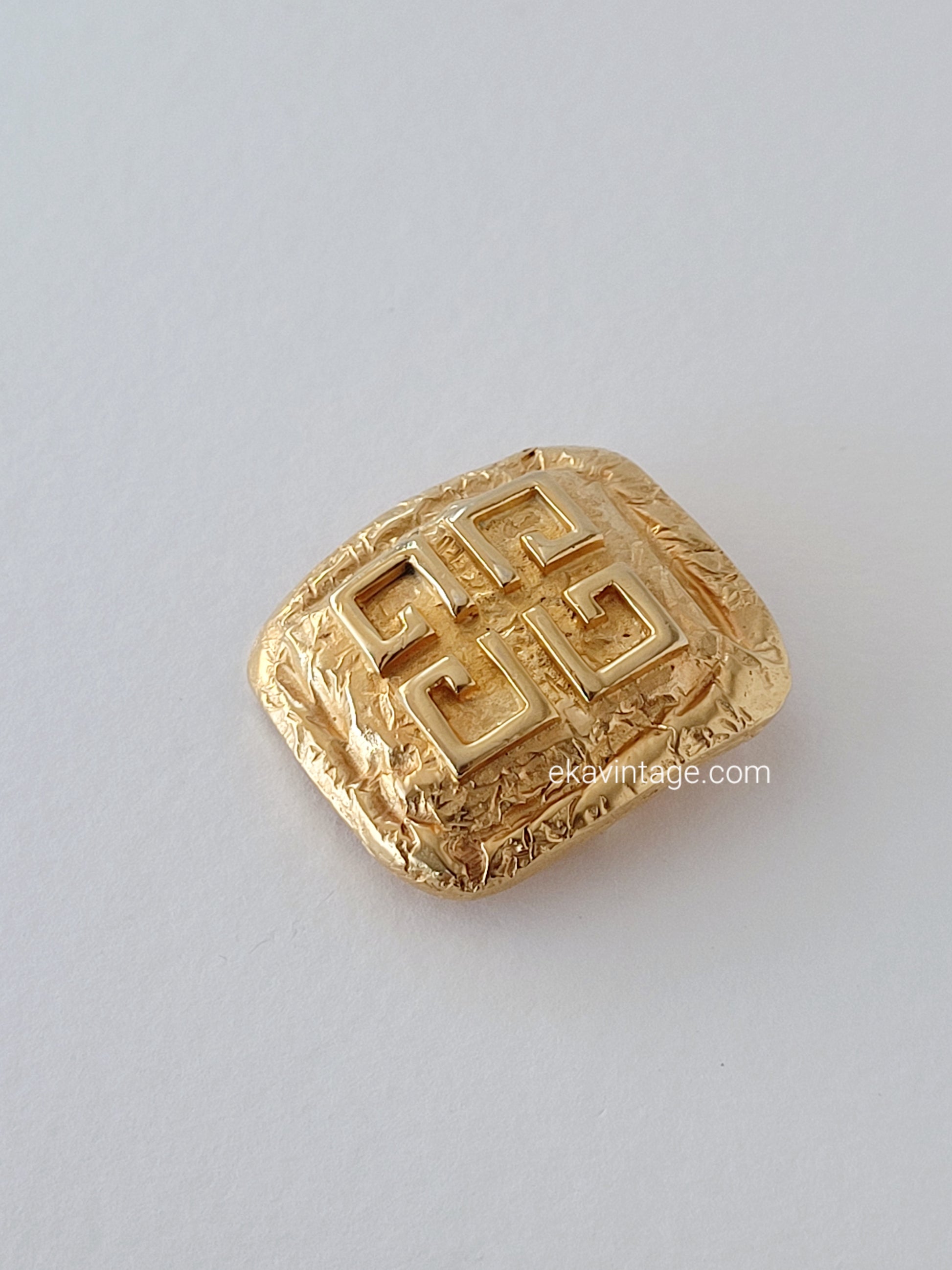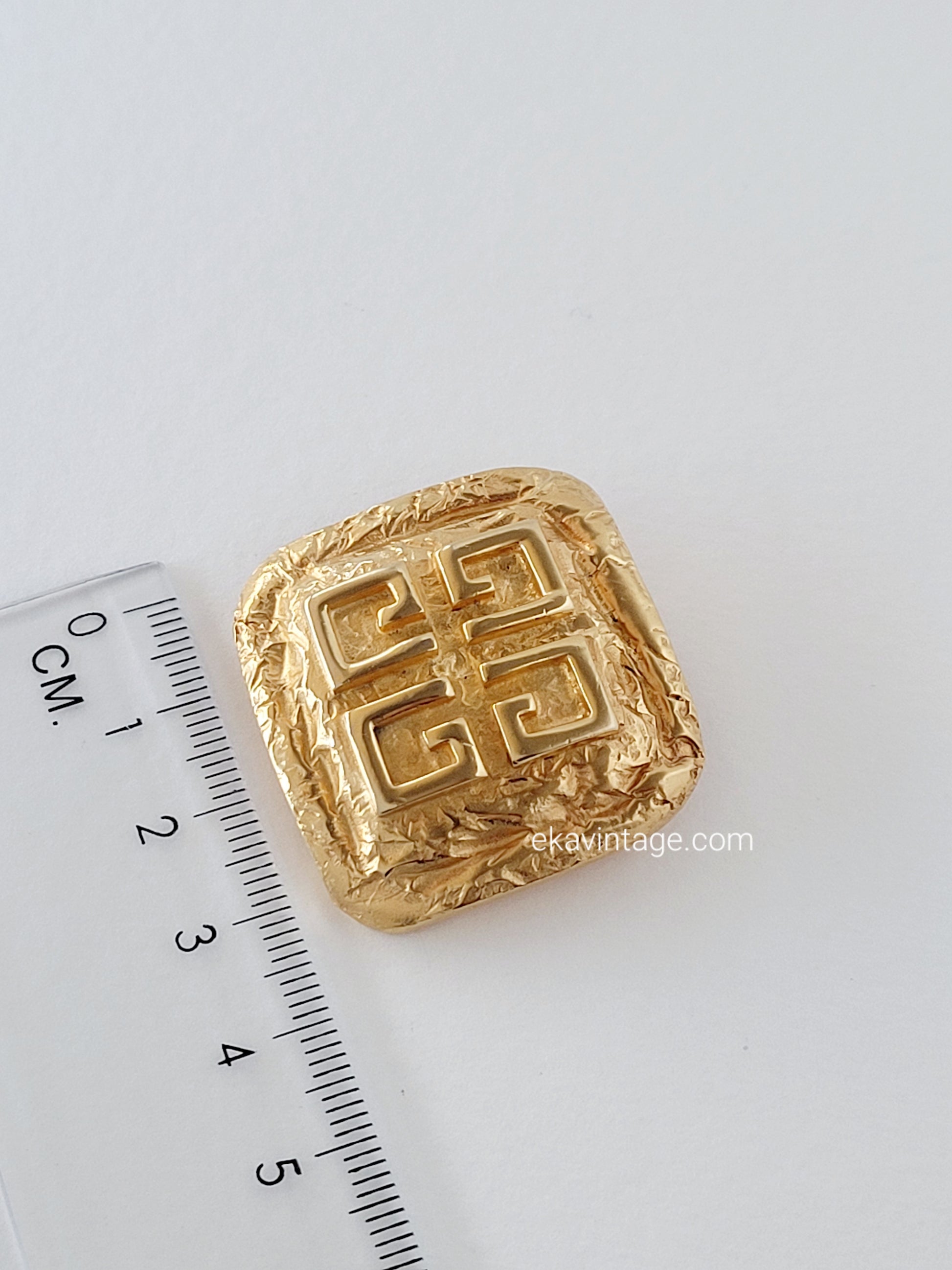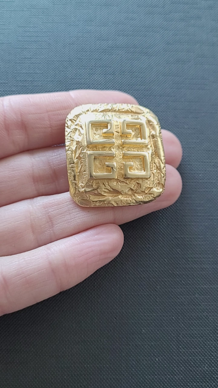 Très belle broche vintage Givenchy, en plaqué or, en forme carrée avec logo de la marque.