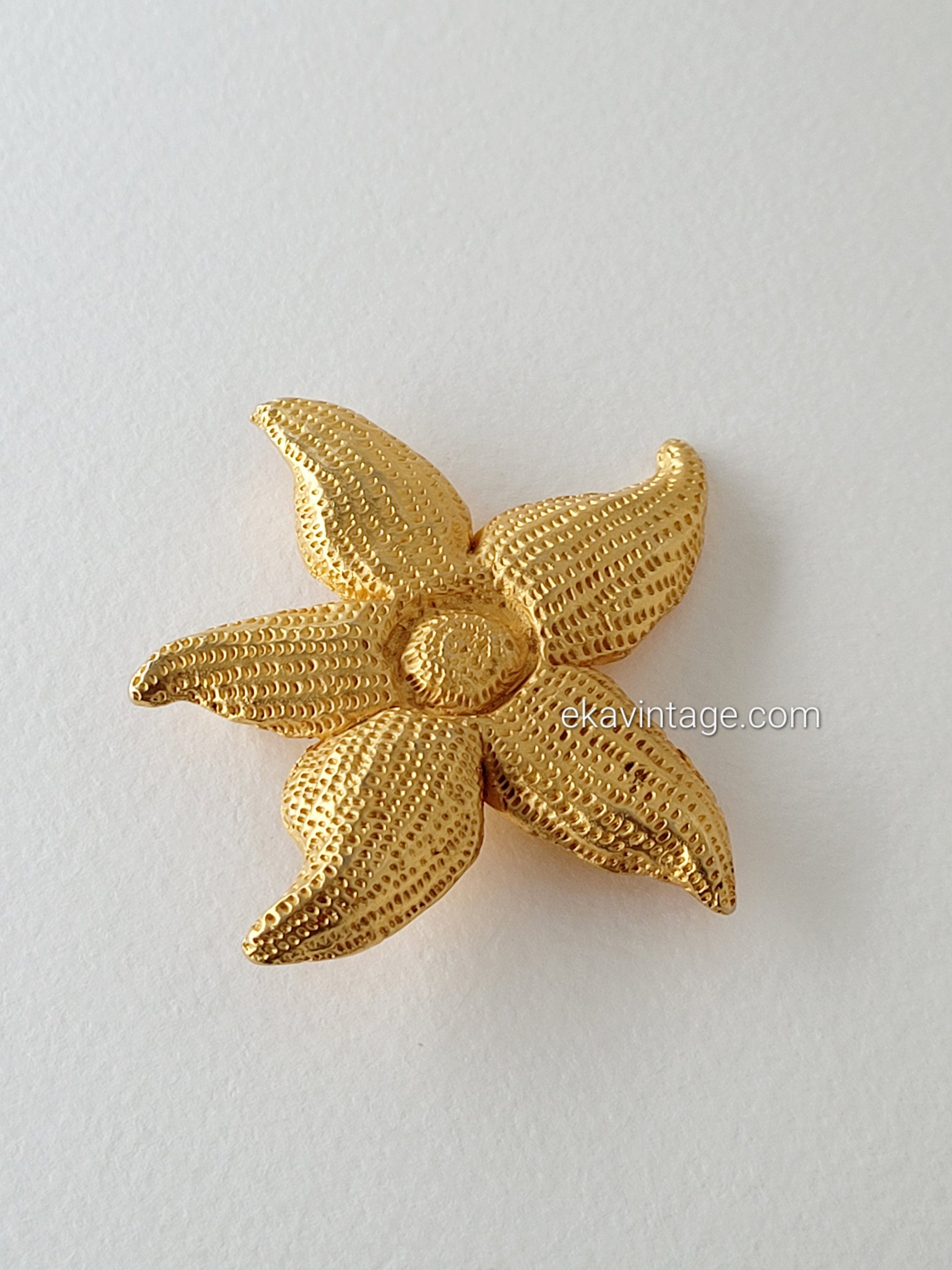 Très belle broche vintage en plaqué or martelé en forme de fleur.