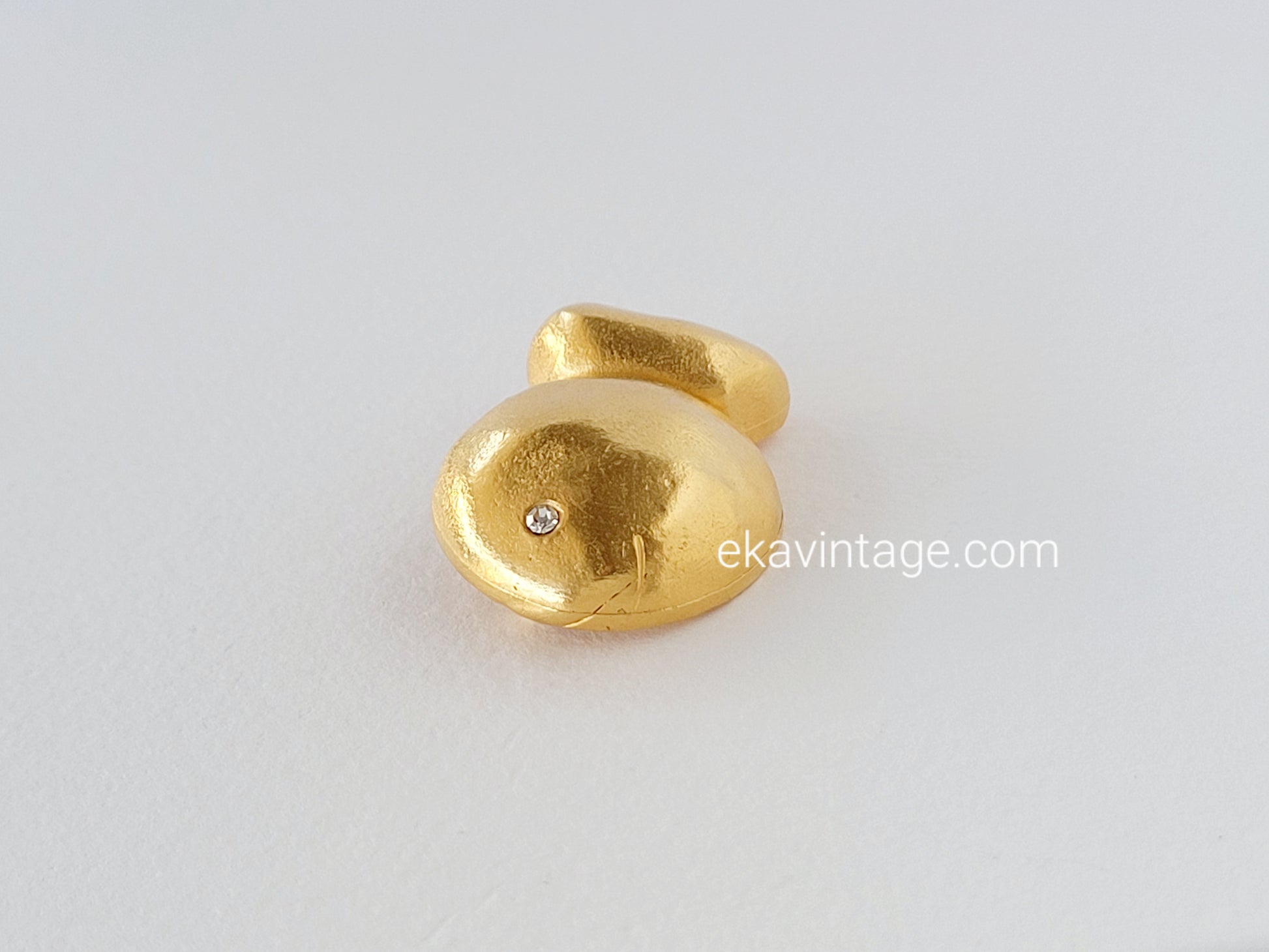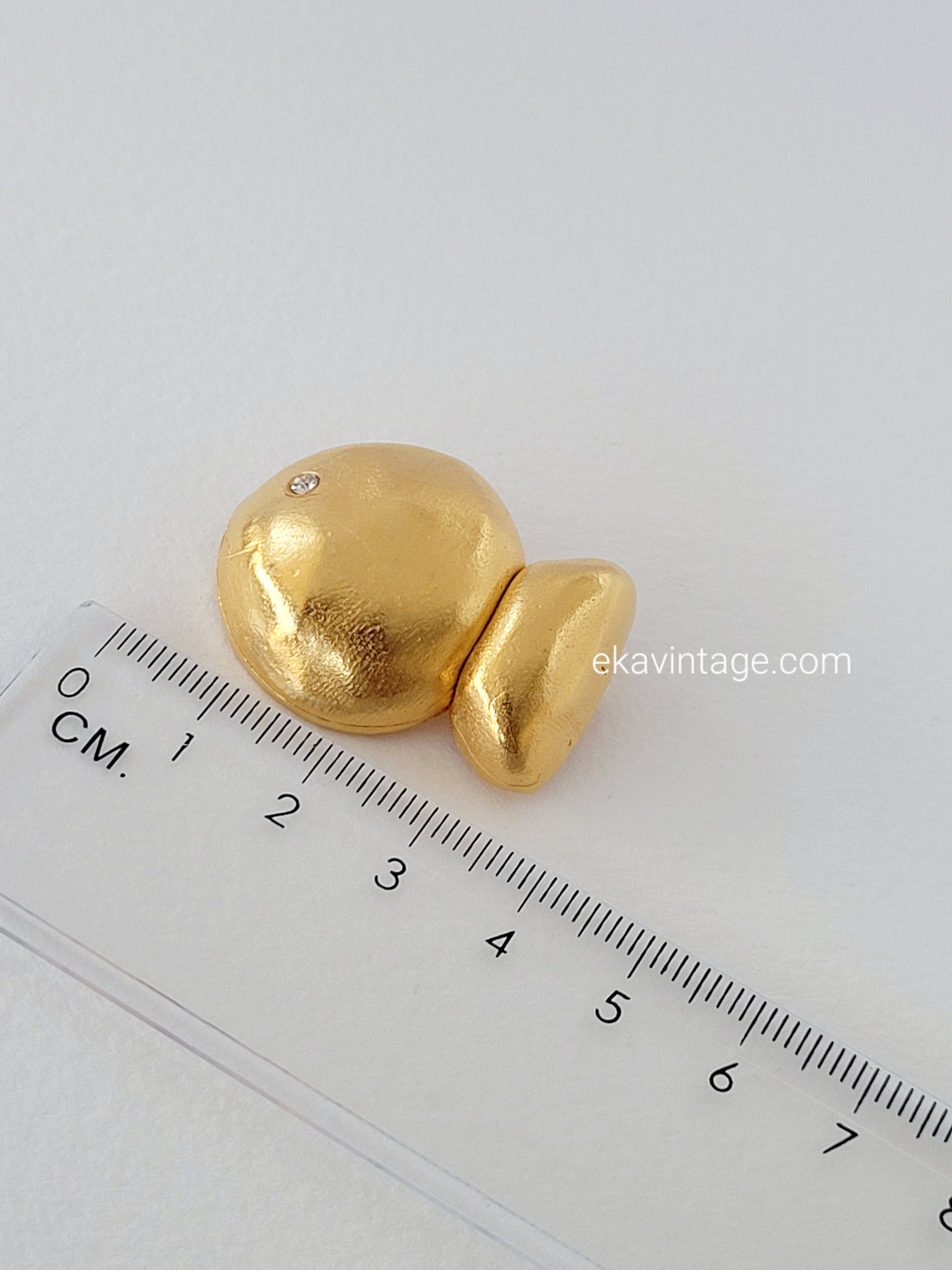 Très belle broche vintage en plaqué or martelé en forme de poisson.