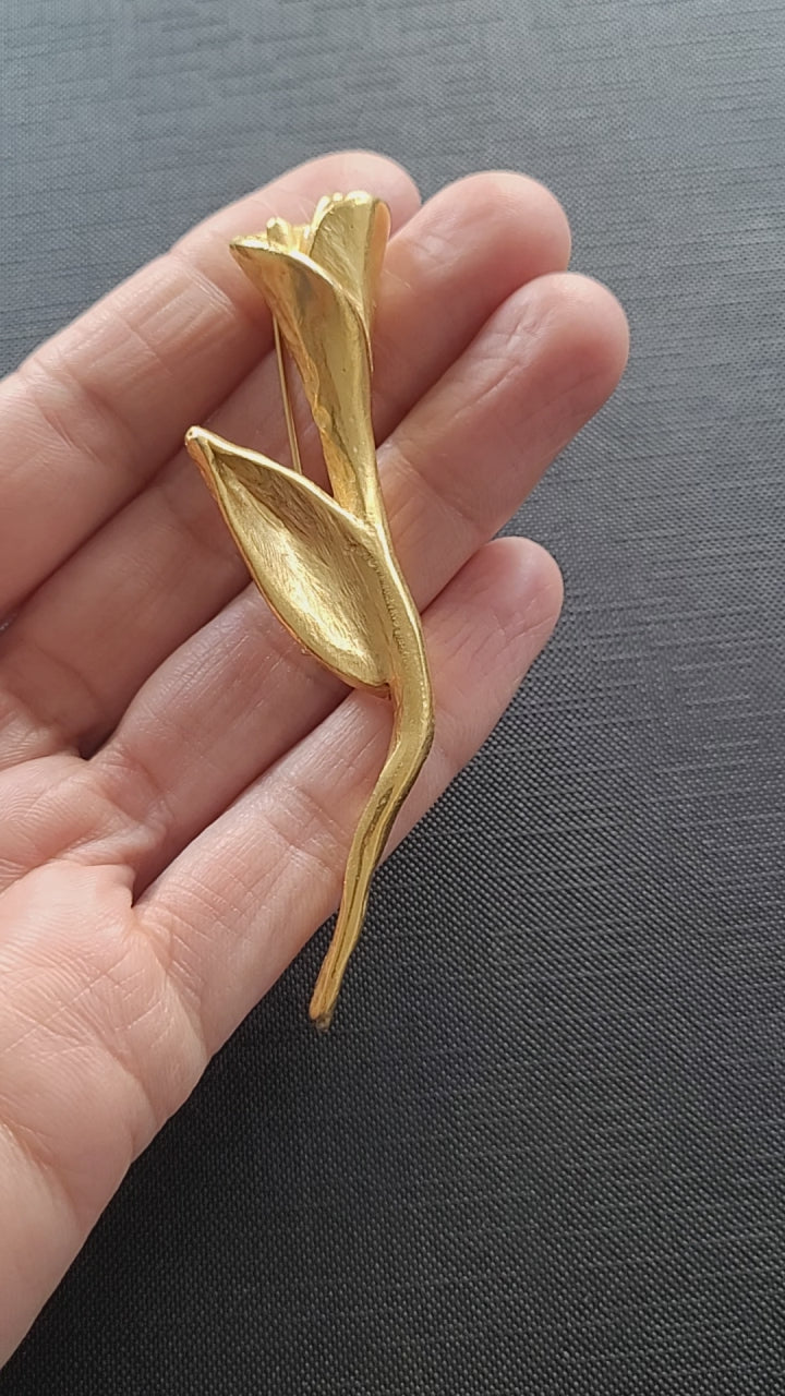 Très belle grande broche vintage en plaqué or martelé.