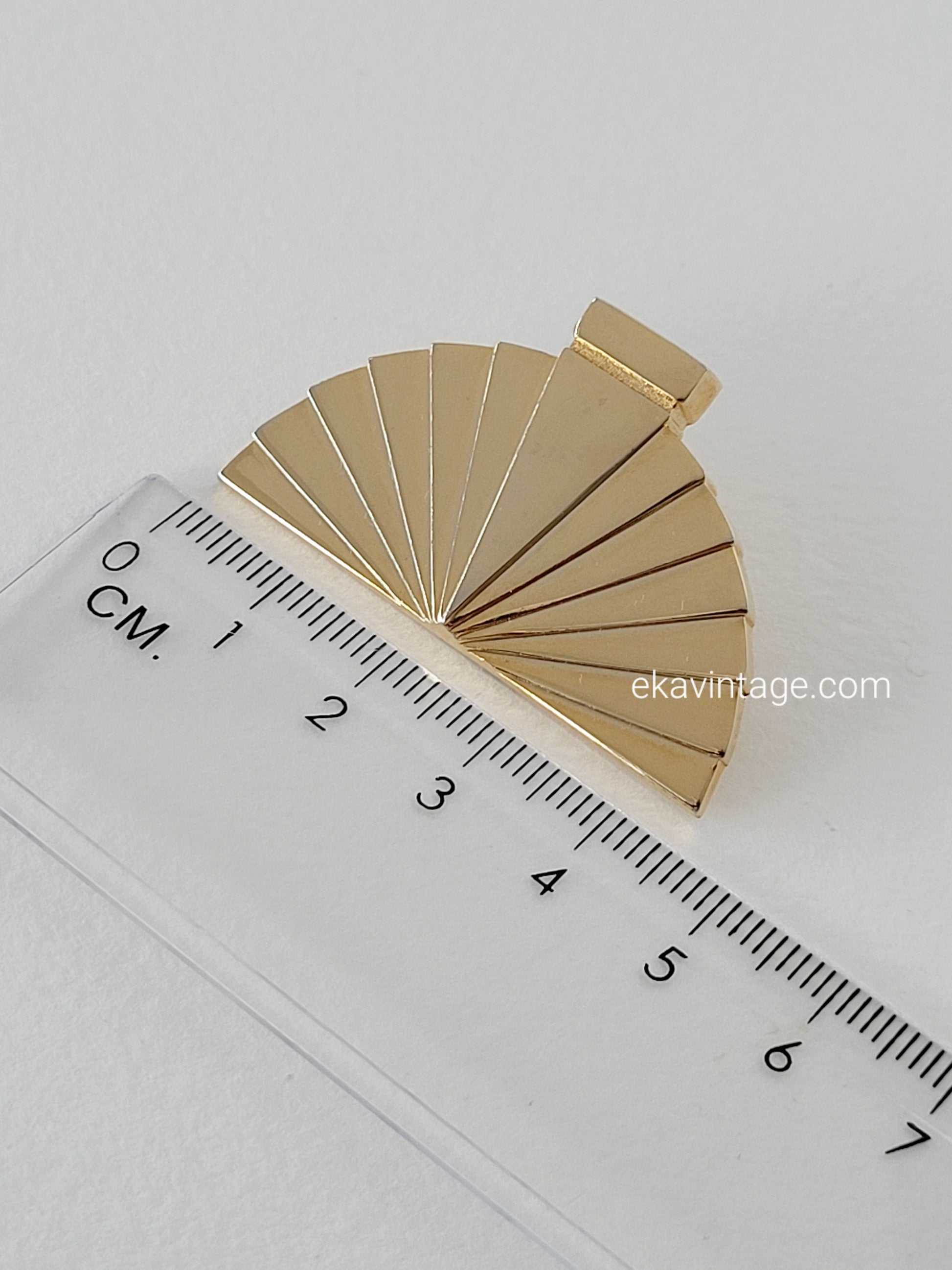 Très belle et authentique broche éventail Karl Lagerfeld parfums en plaqué or.