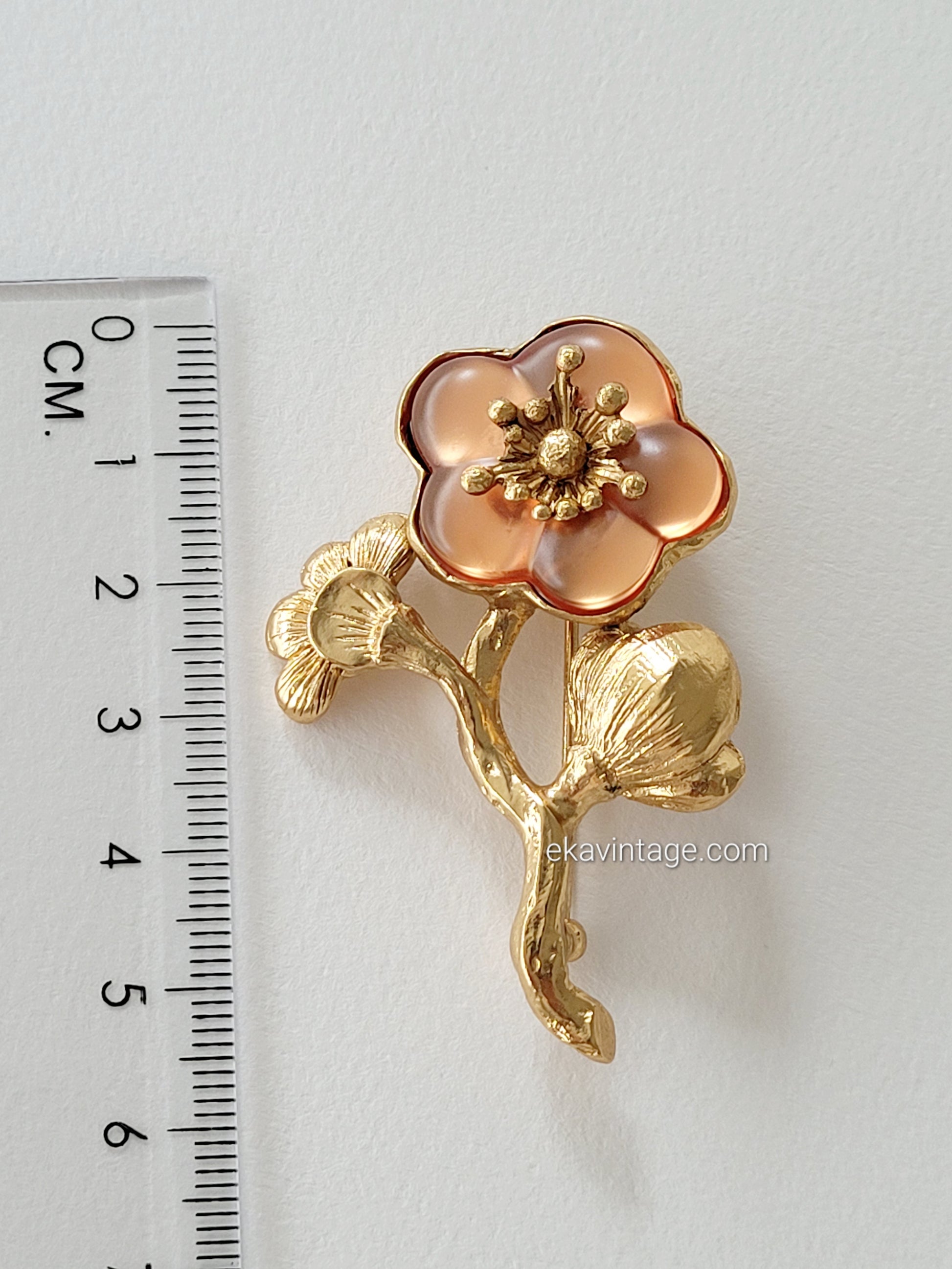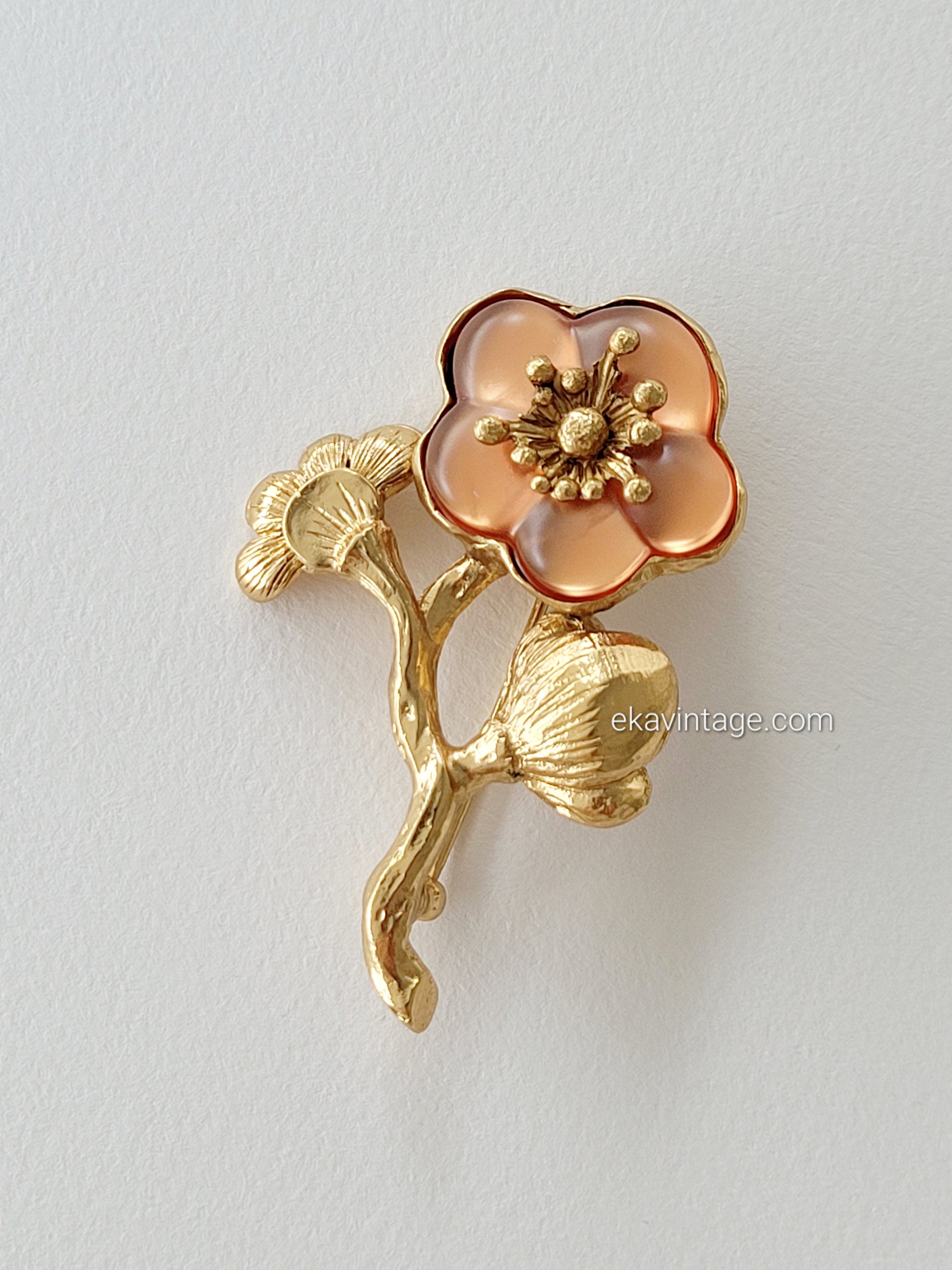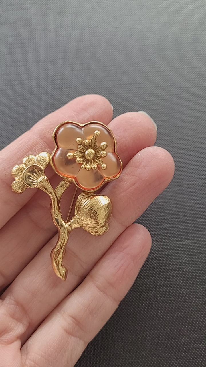 Magnifique et authentique broche vintage Kenzo Paris en plaqué or avec une fleur en lucite.