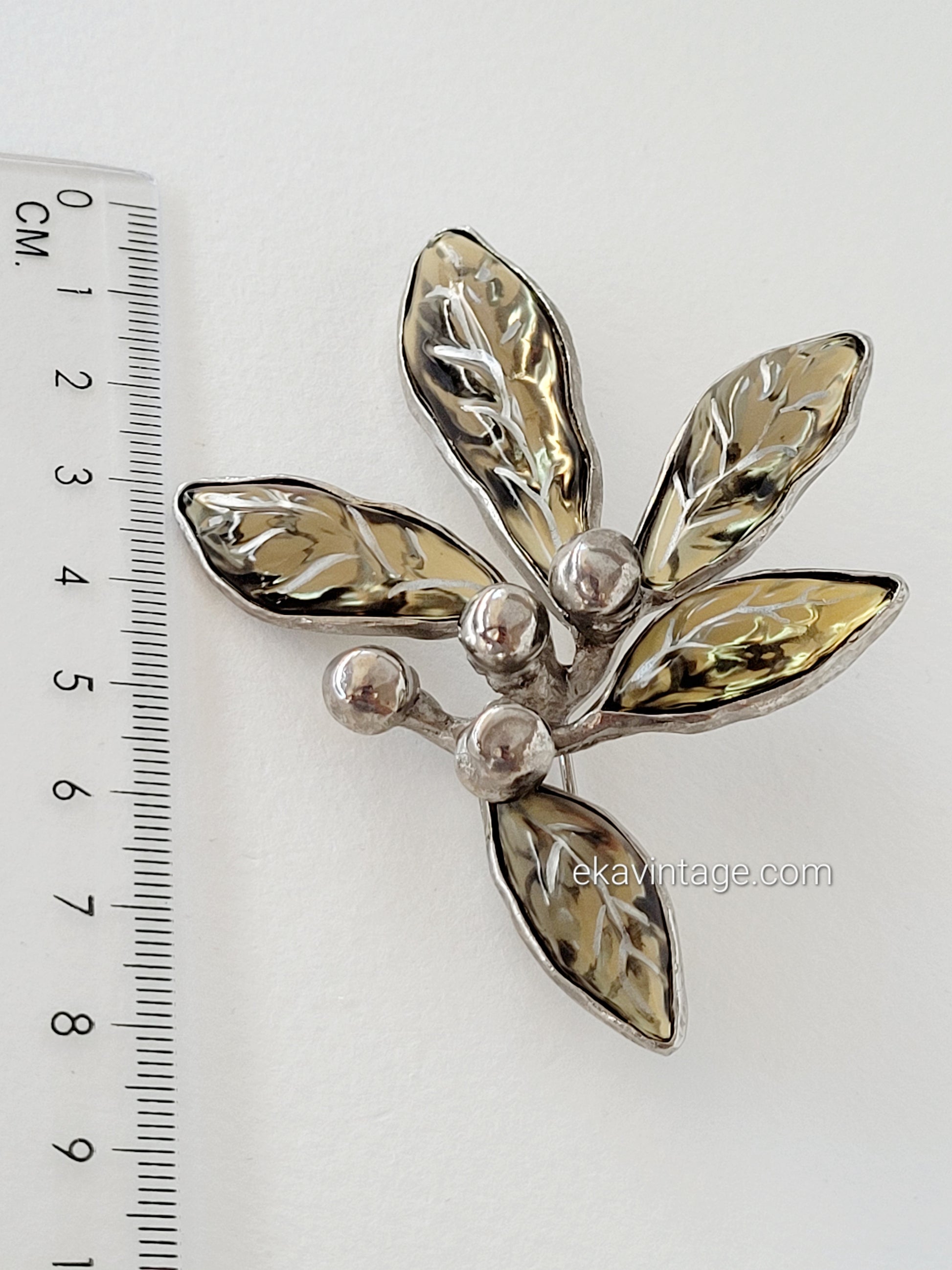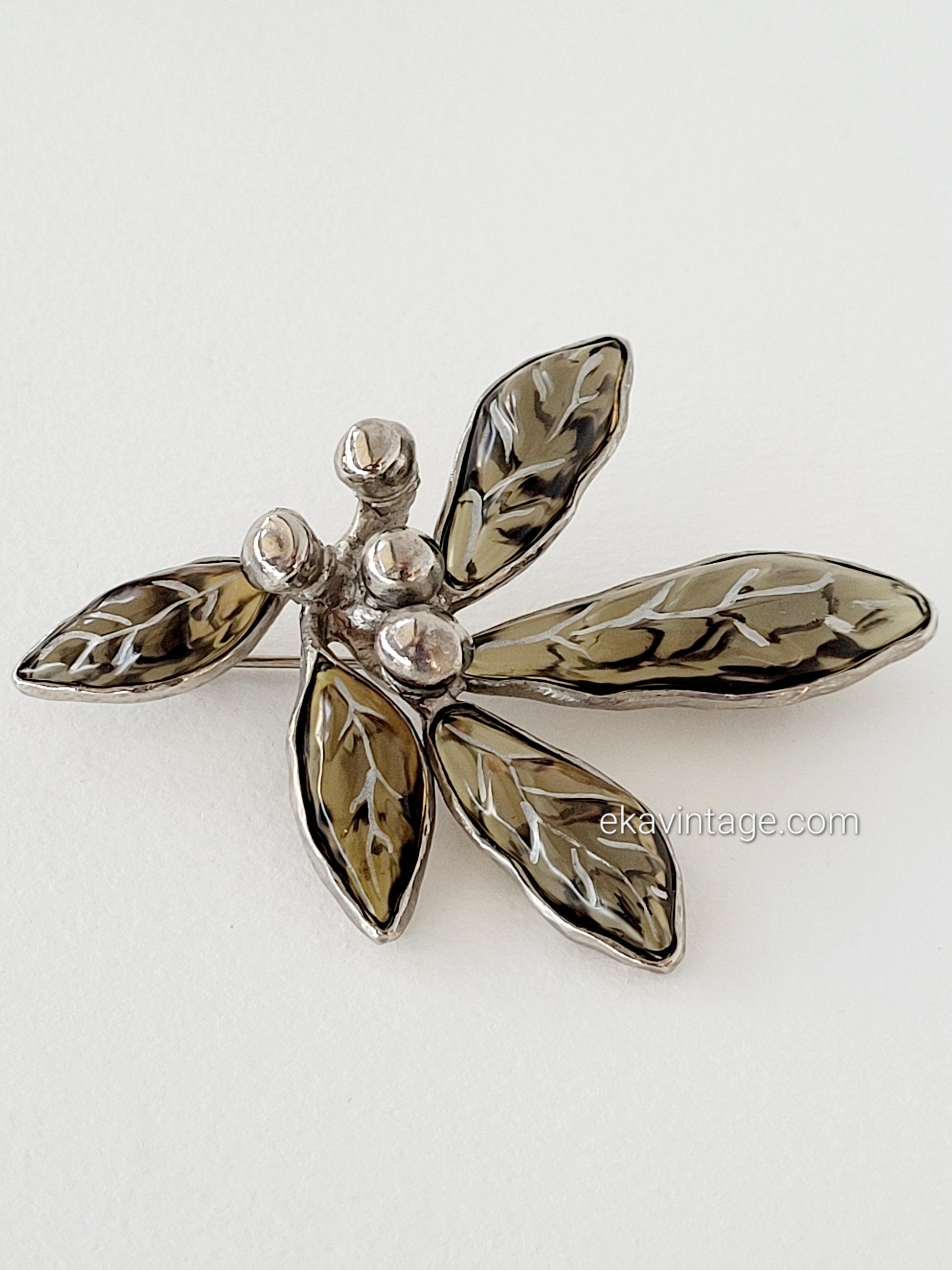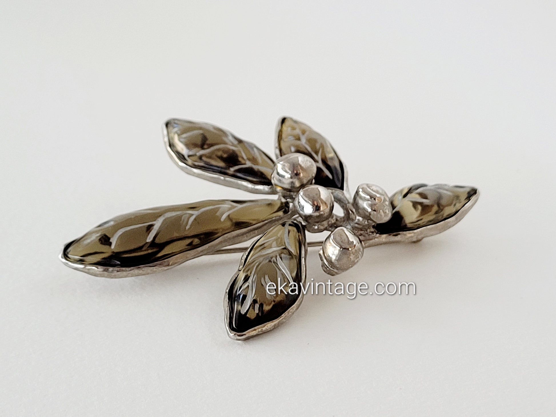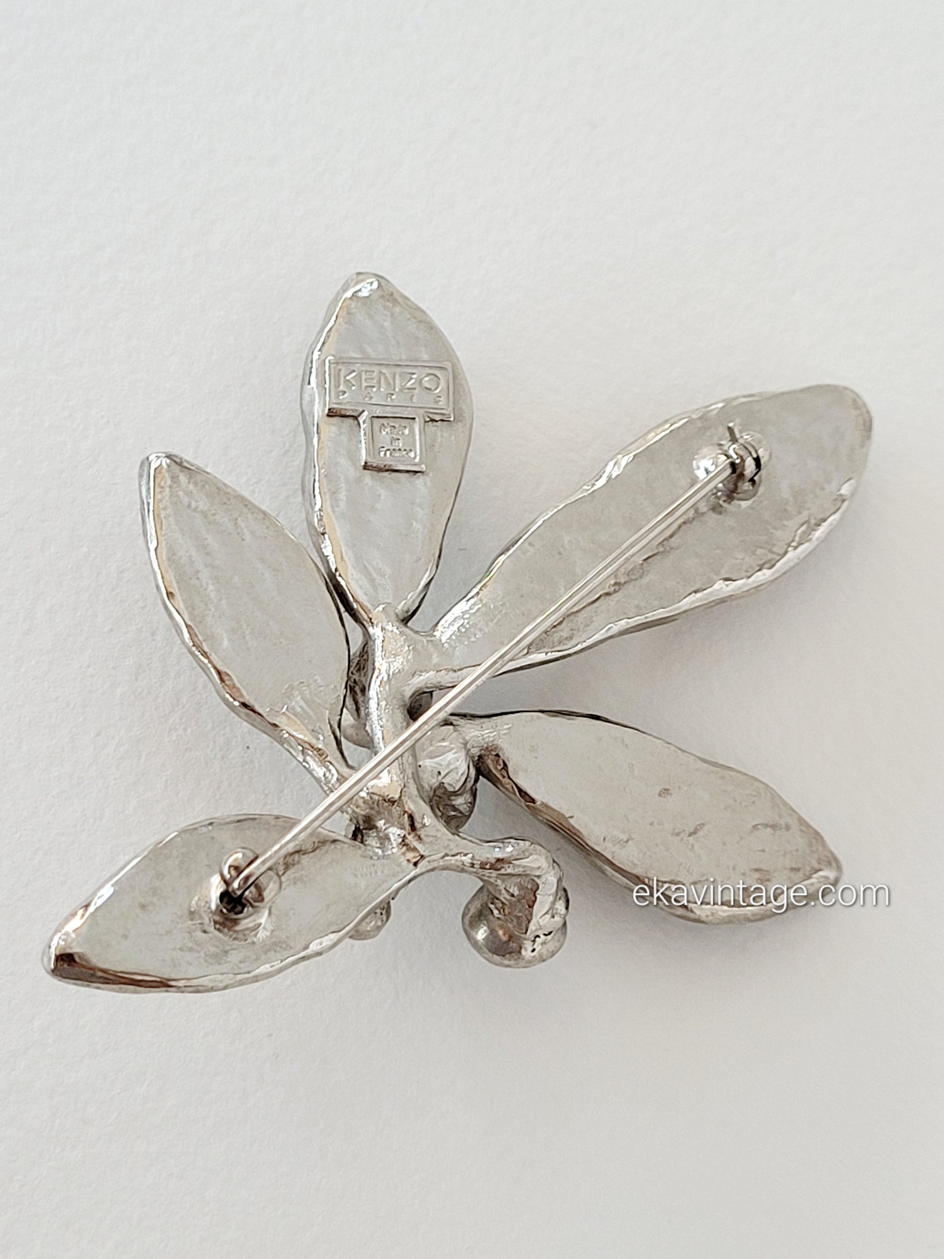 Magnifique et authentique broche vintage Kenzo Paris en plaqué argent avec une fleur en lucite vert.