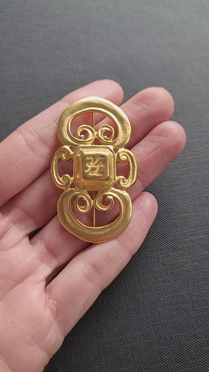 Authentique et magnifique broche vintage Karl Lagerfeld en plaqué or mat.