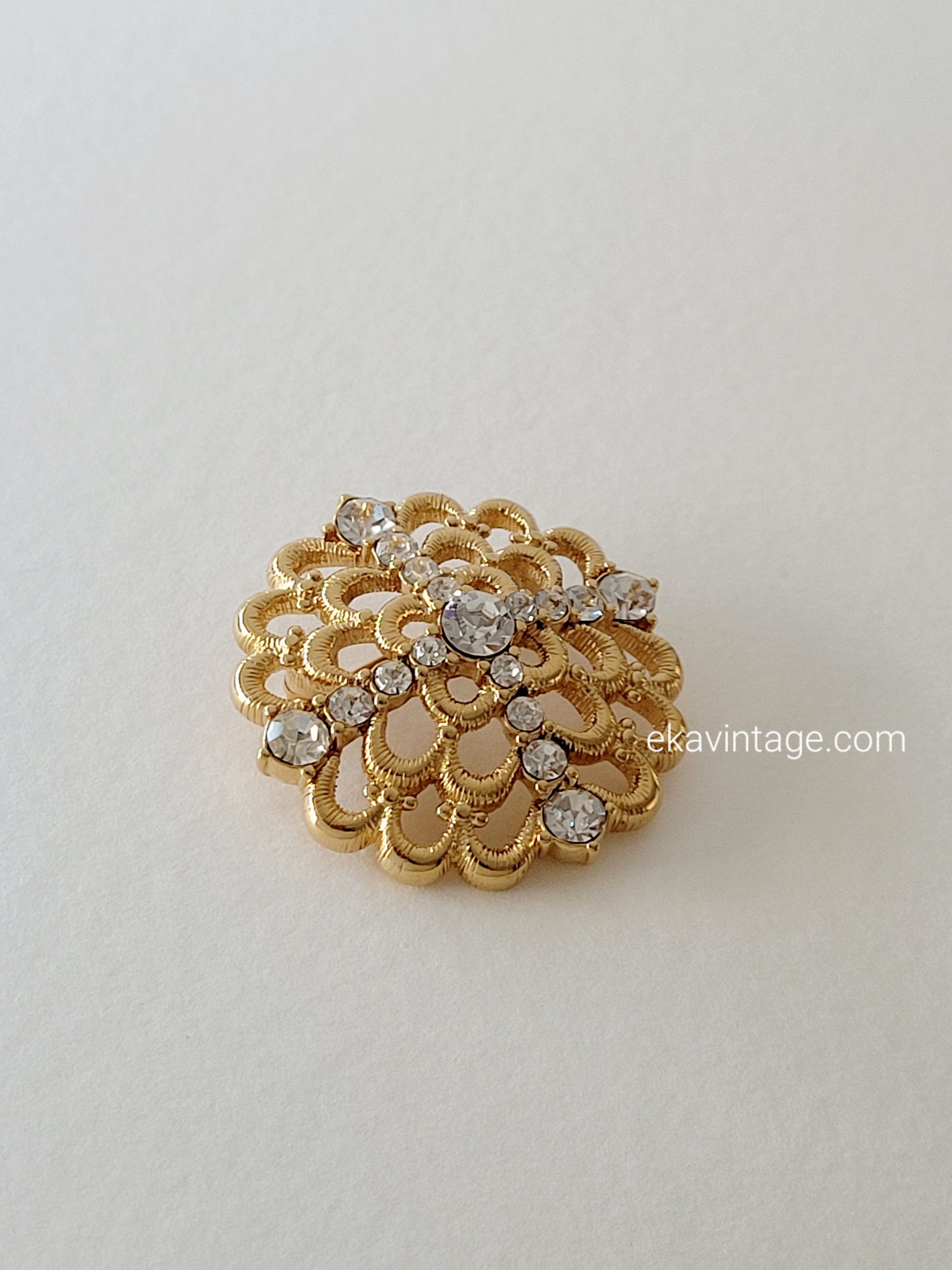 Magnifique et authentique broche Monet en plaqué or et cristaux.