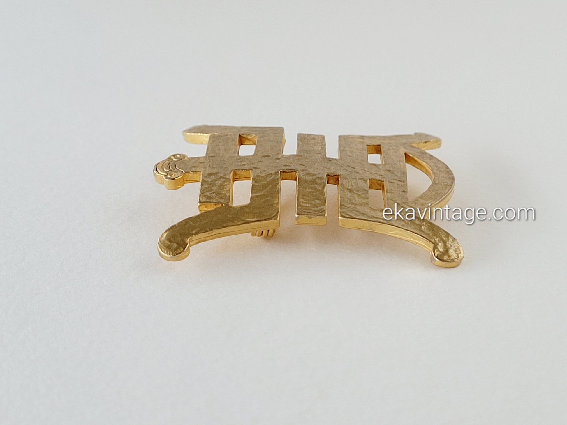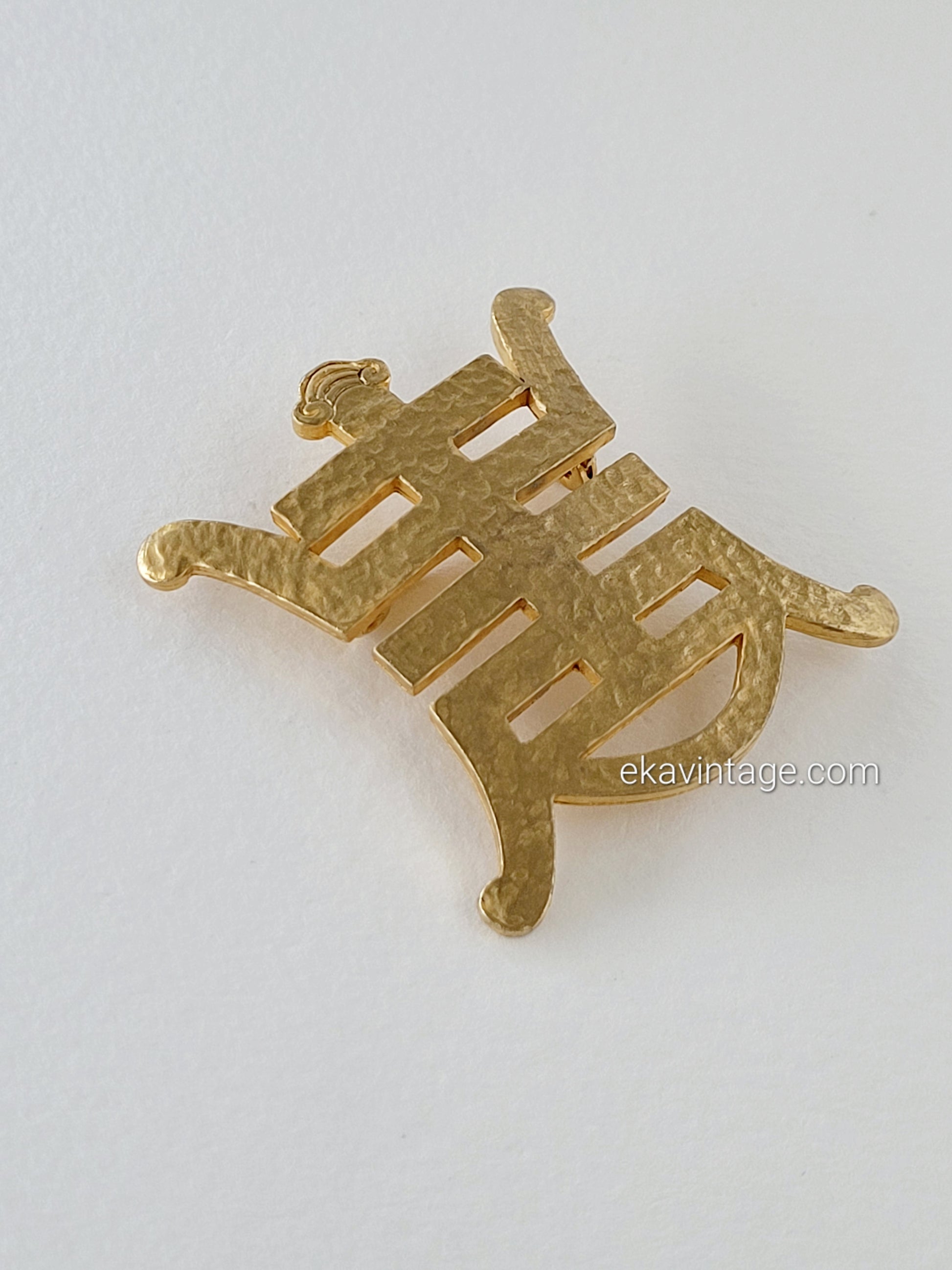 Broche vintage en plaqué or martelé.