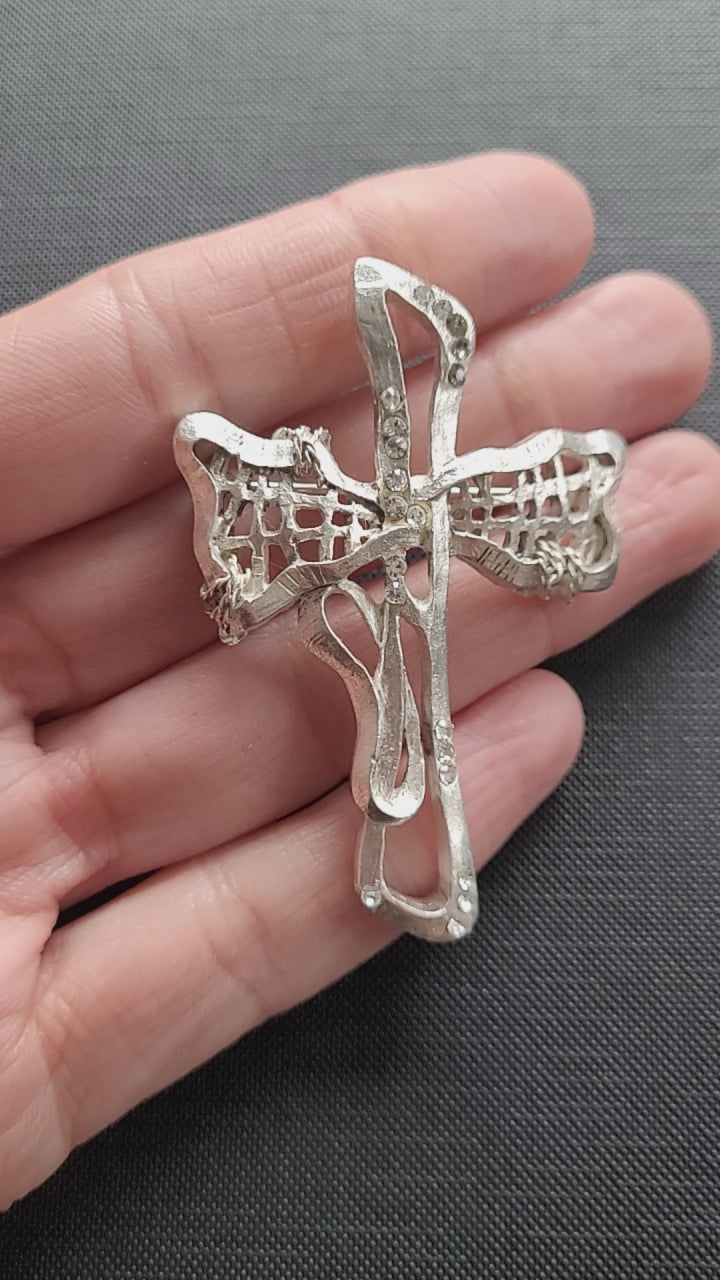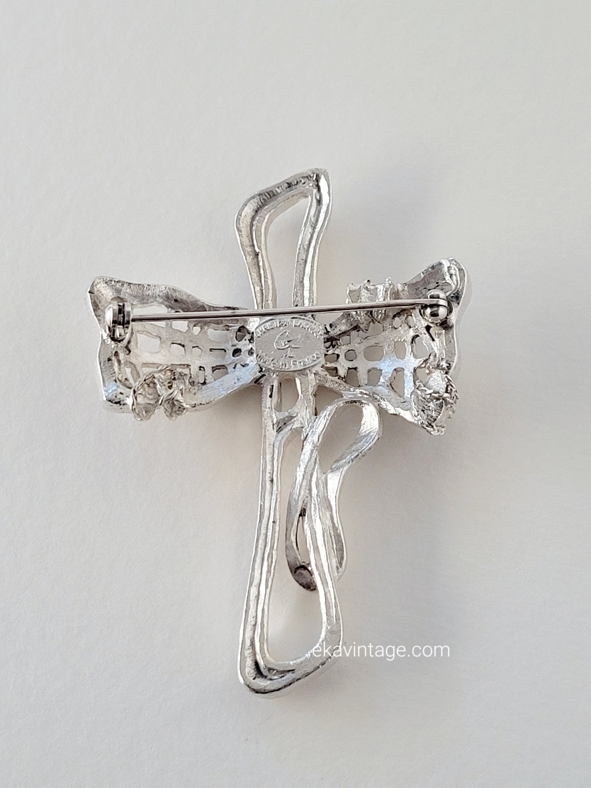 Authentique et magnifique broche vintage Christian Lacroix en forme de croix.