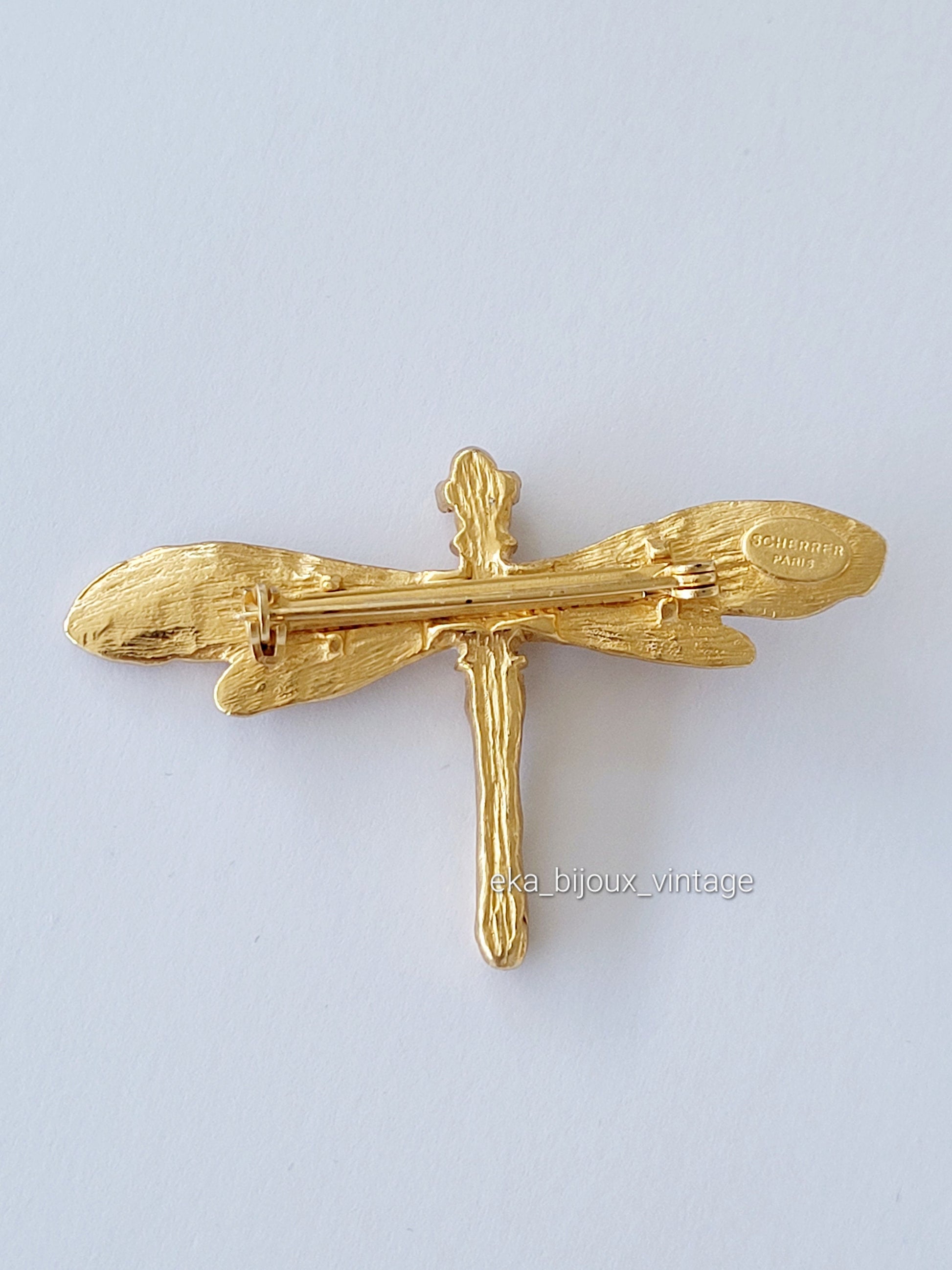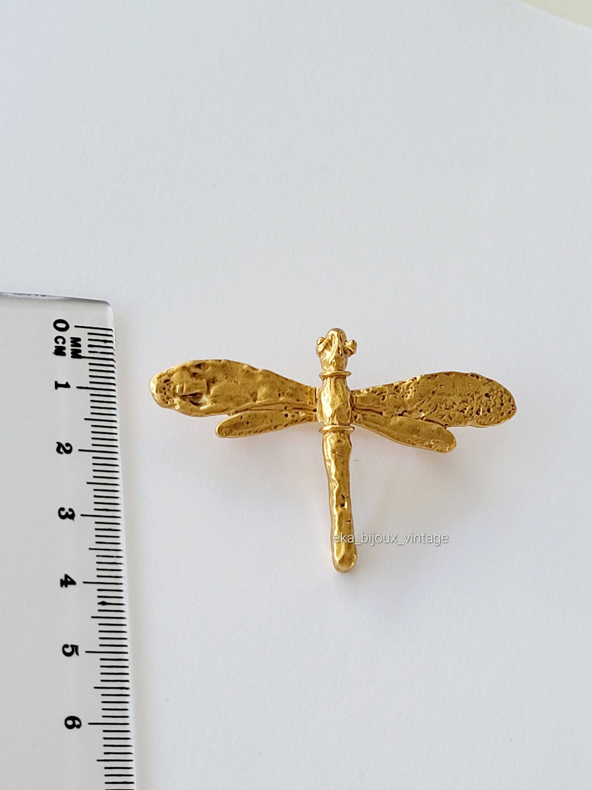 Authentic and magnificent vintage Jean-Louis Scherrer brooch, in hammered gold plated in the shape of a dragonfly.