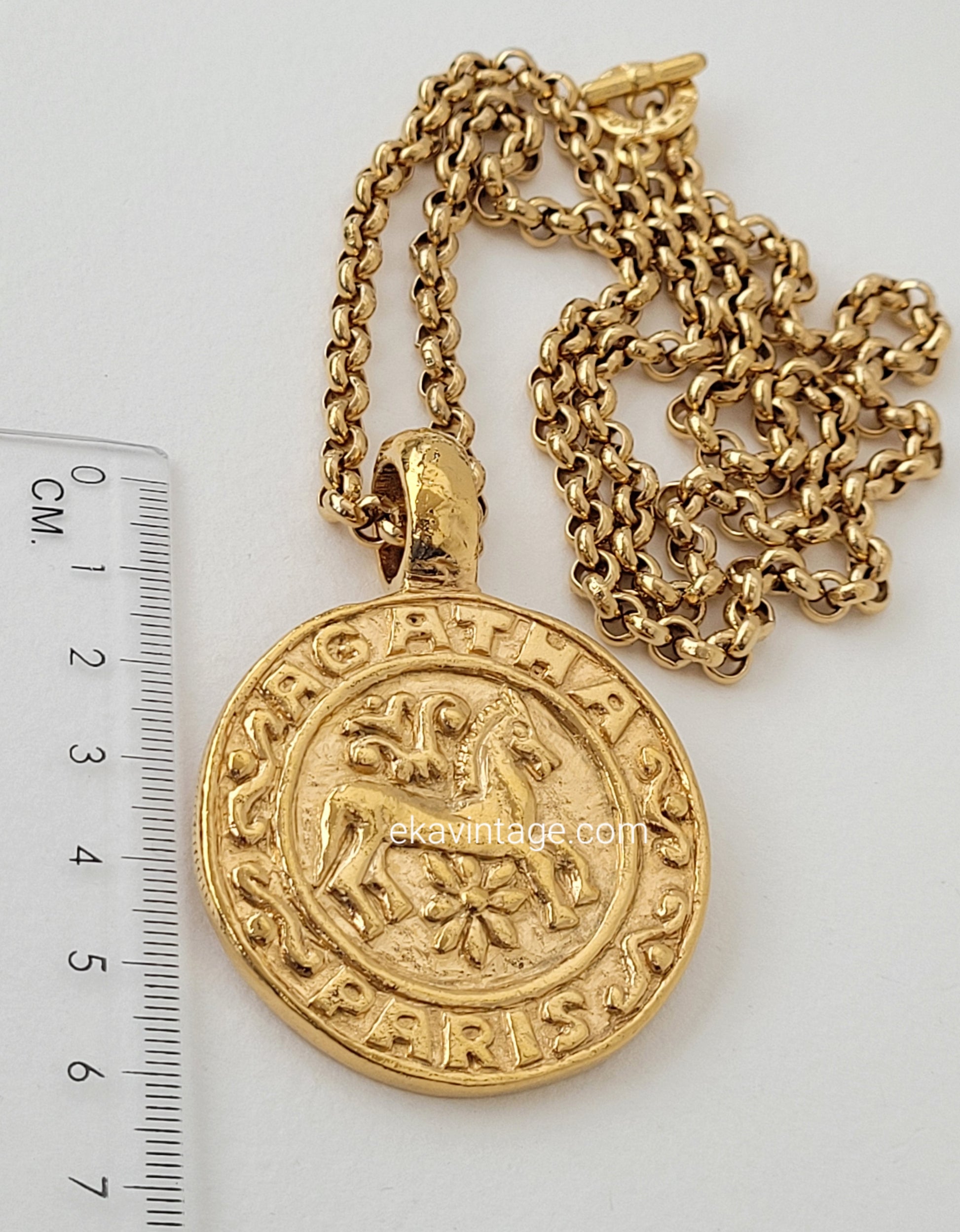 Authentique collier vintage Agatha Paris avec un médaillon comportant des motifs différents sur chaque face.