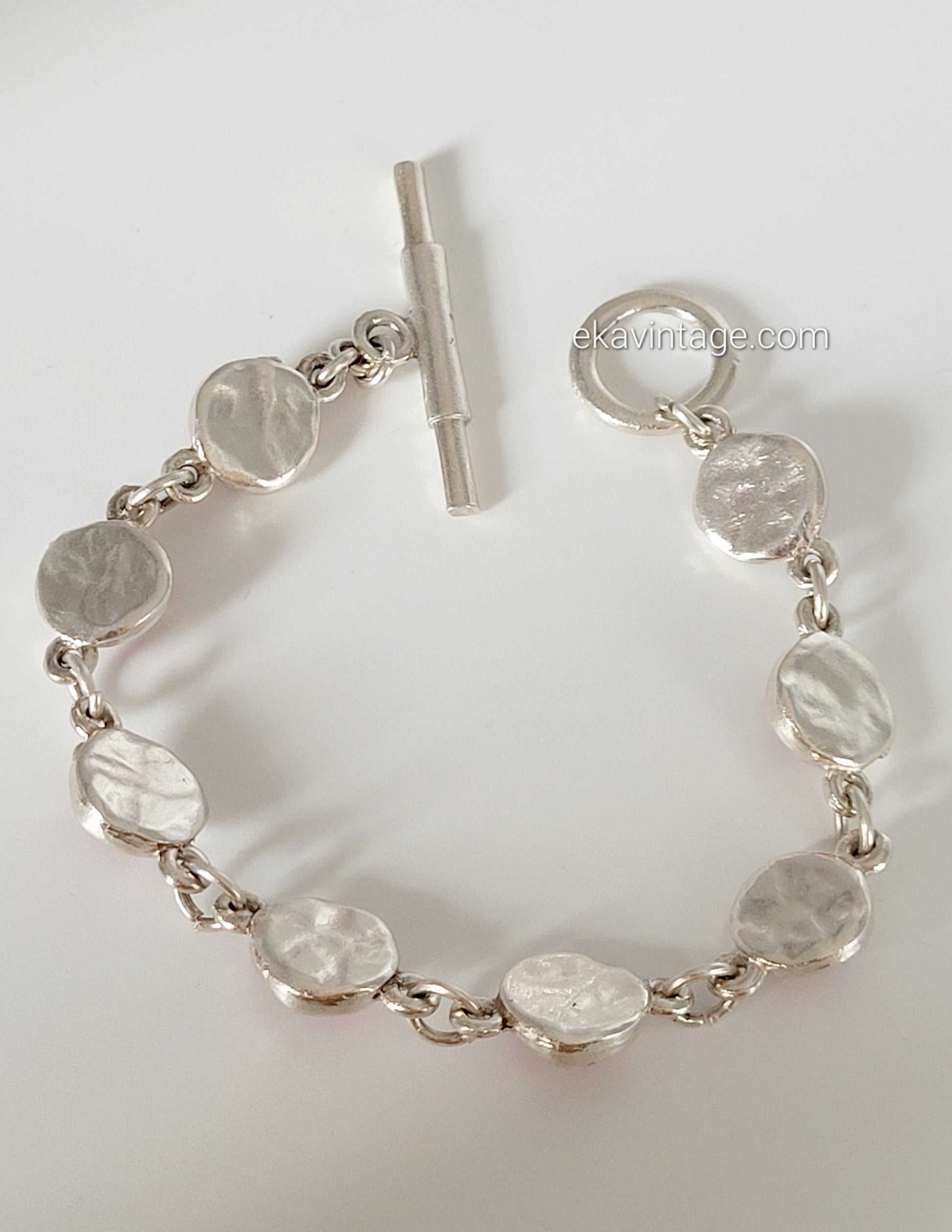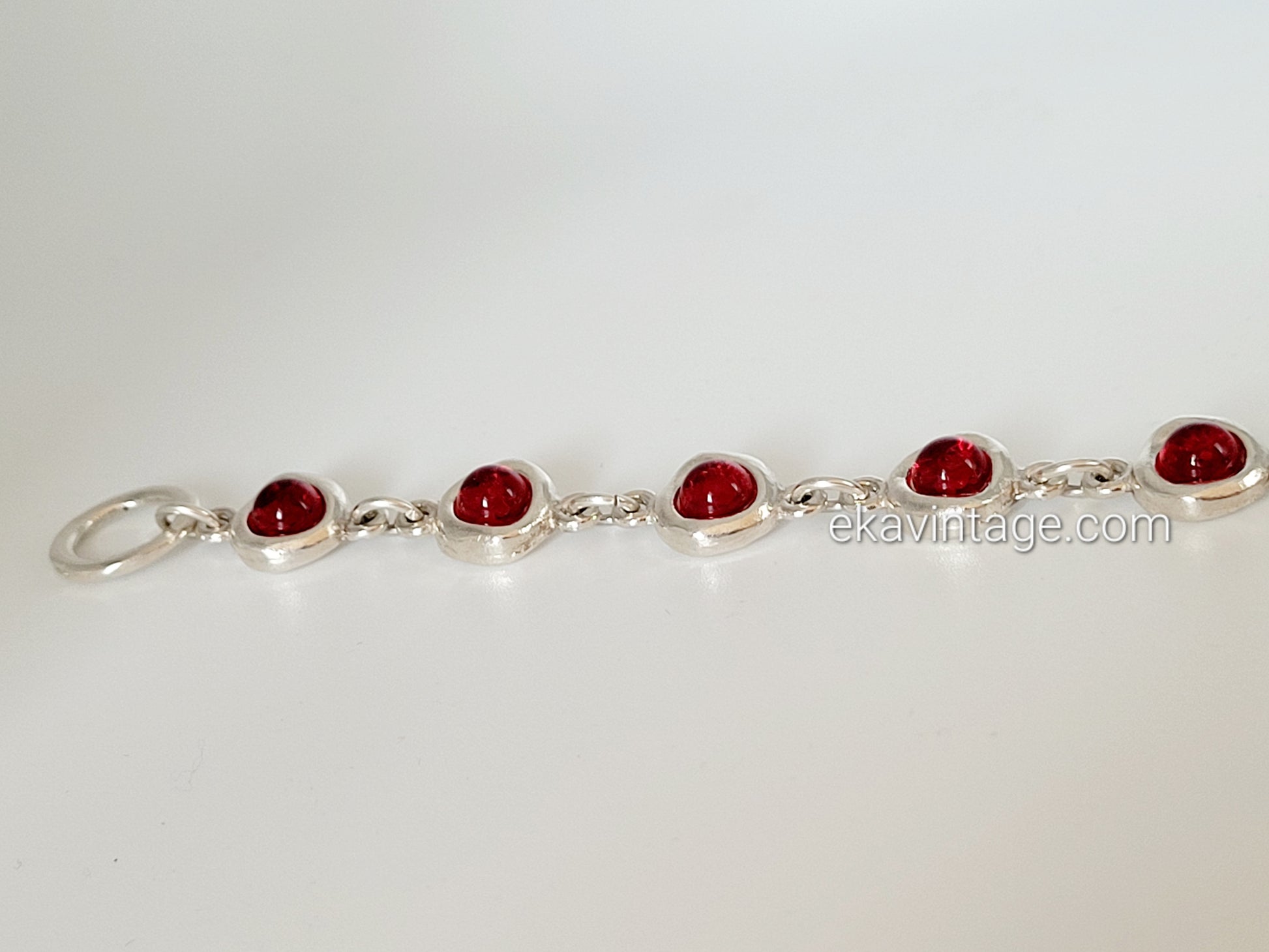 Magnifique bracelet Biche de Bere vintage, composé de huit petits maillons avec des cabochons en verre de couleur rouge.
