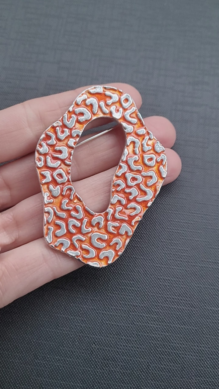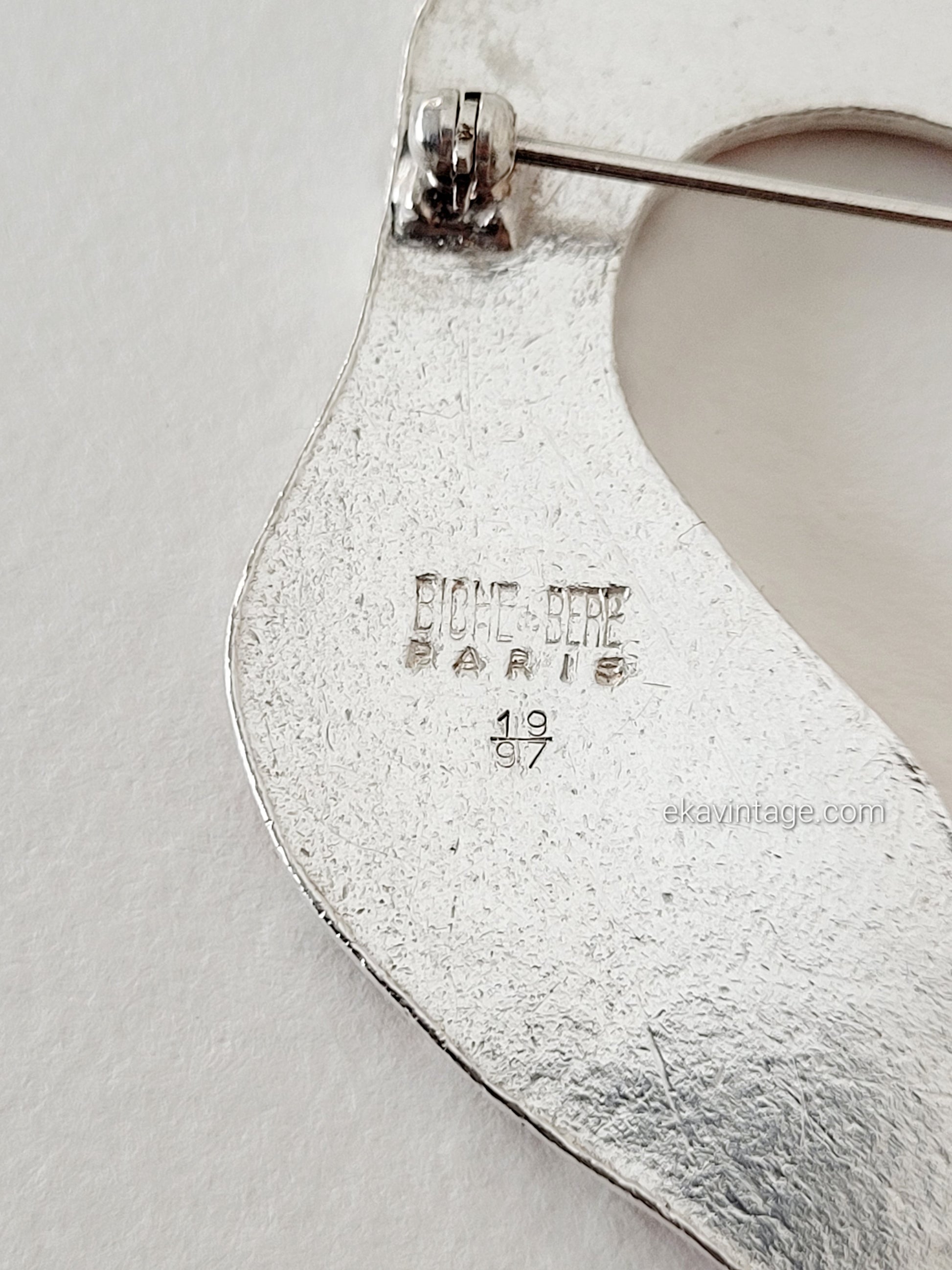 Grande broche vintage Biche de Bere, en plaqué argent et émail.