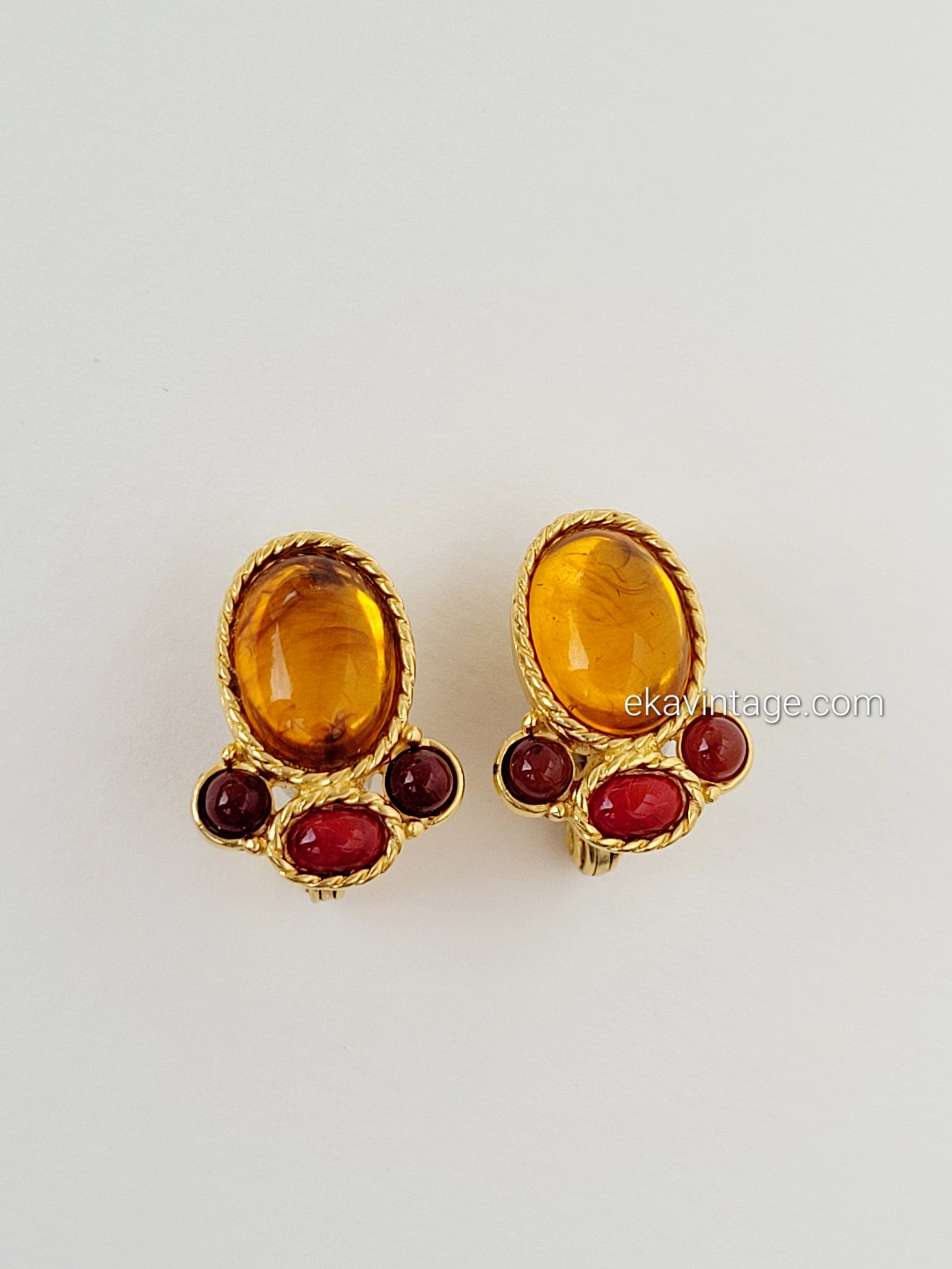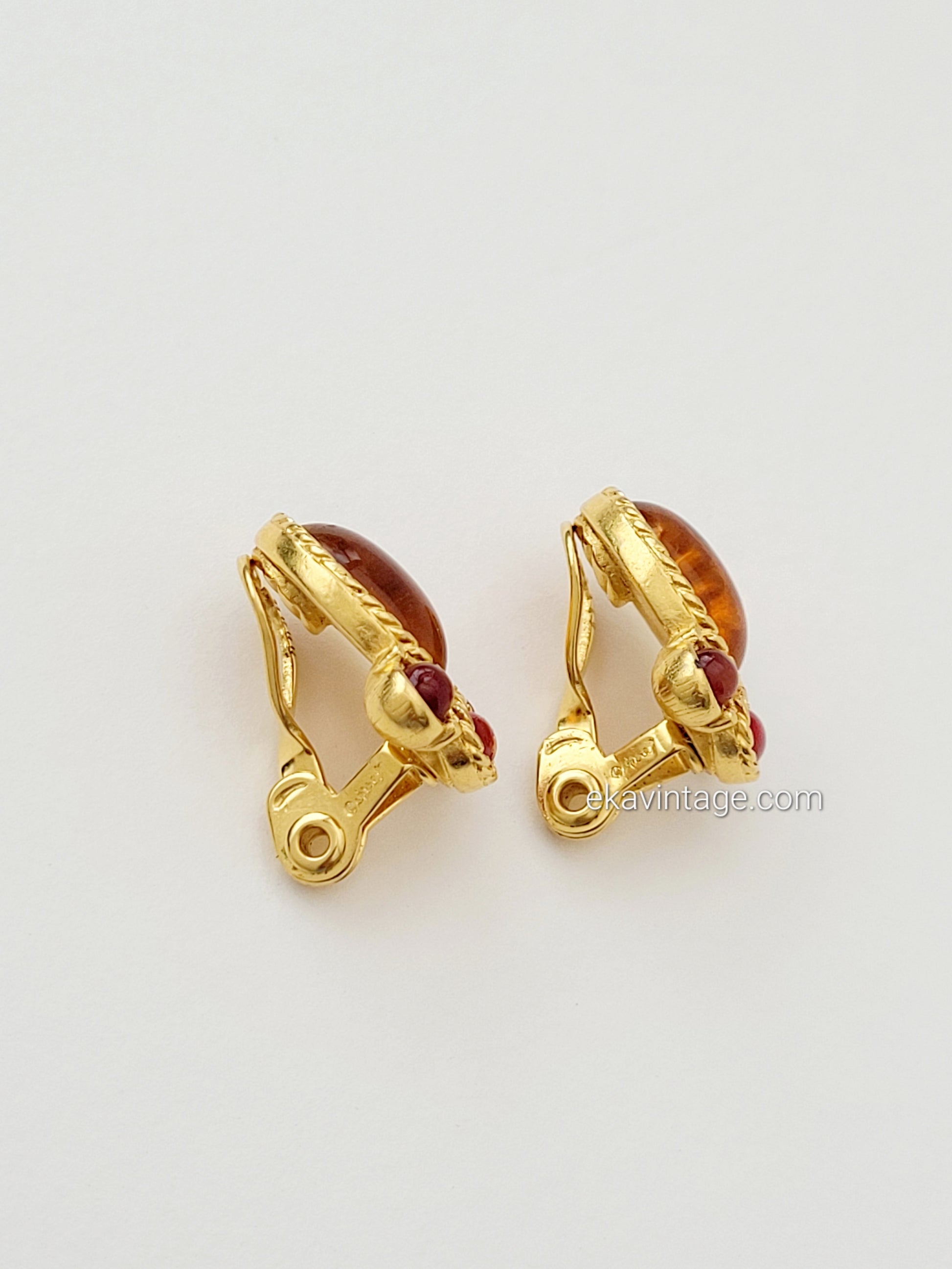 Boucles d'oreilles vintage Monet, en plaqué or avec des cabochons en lucite.