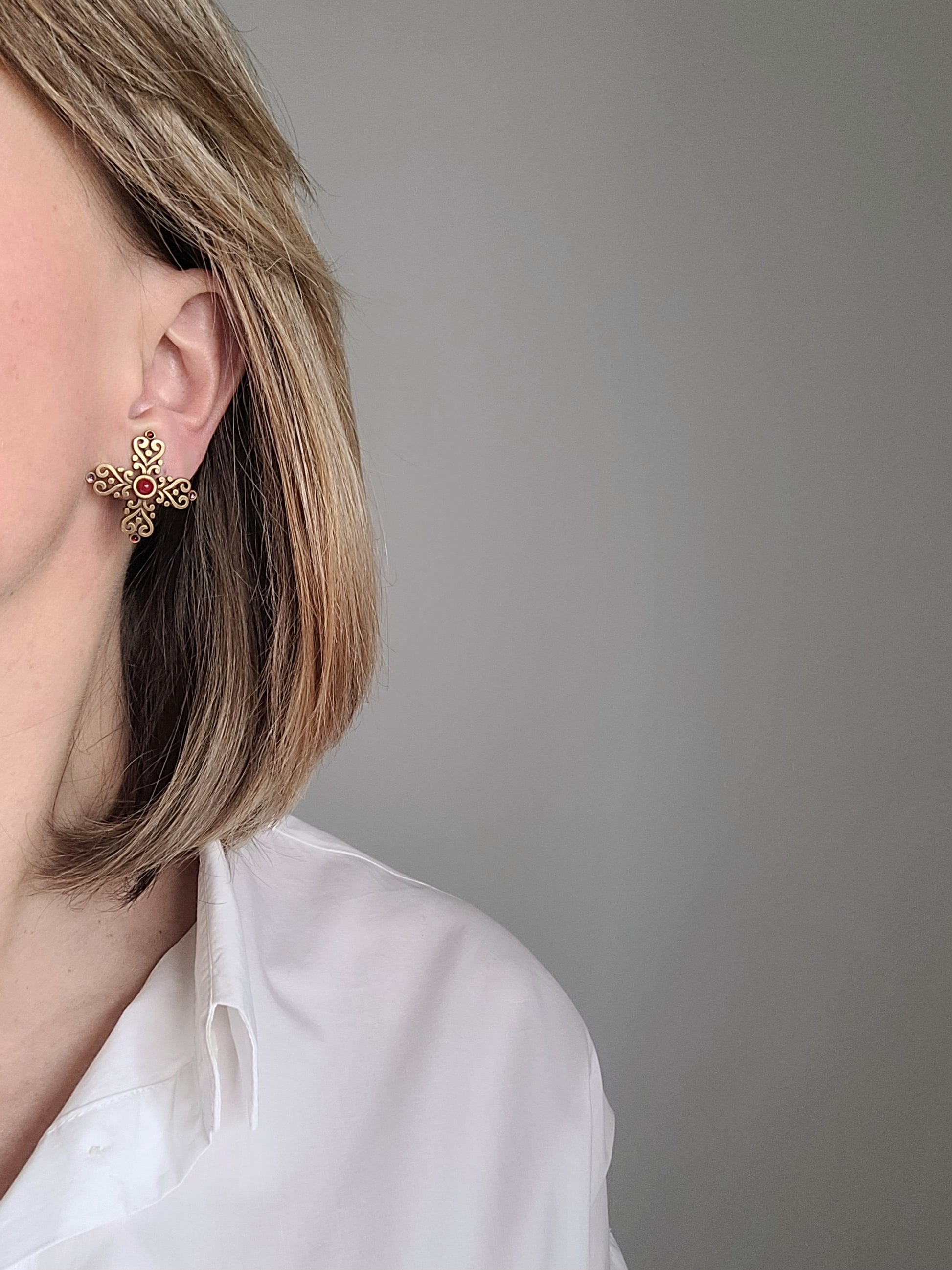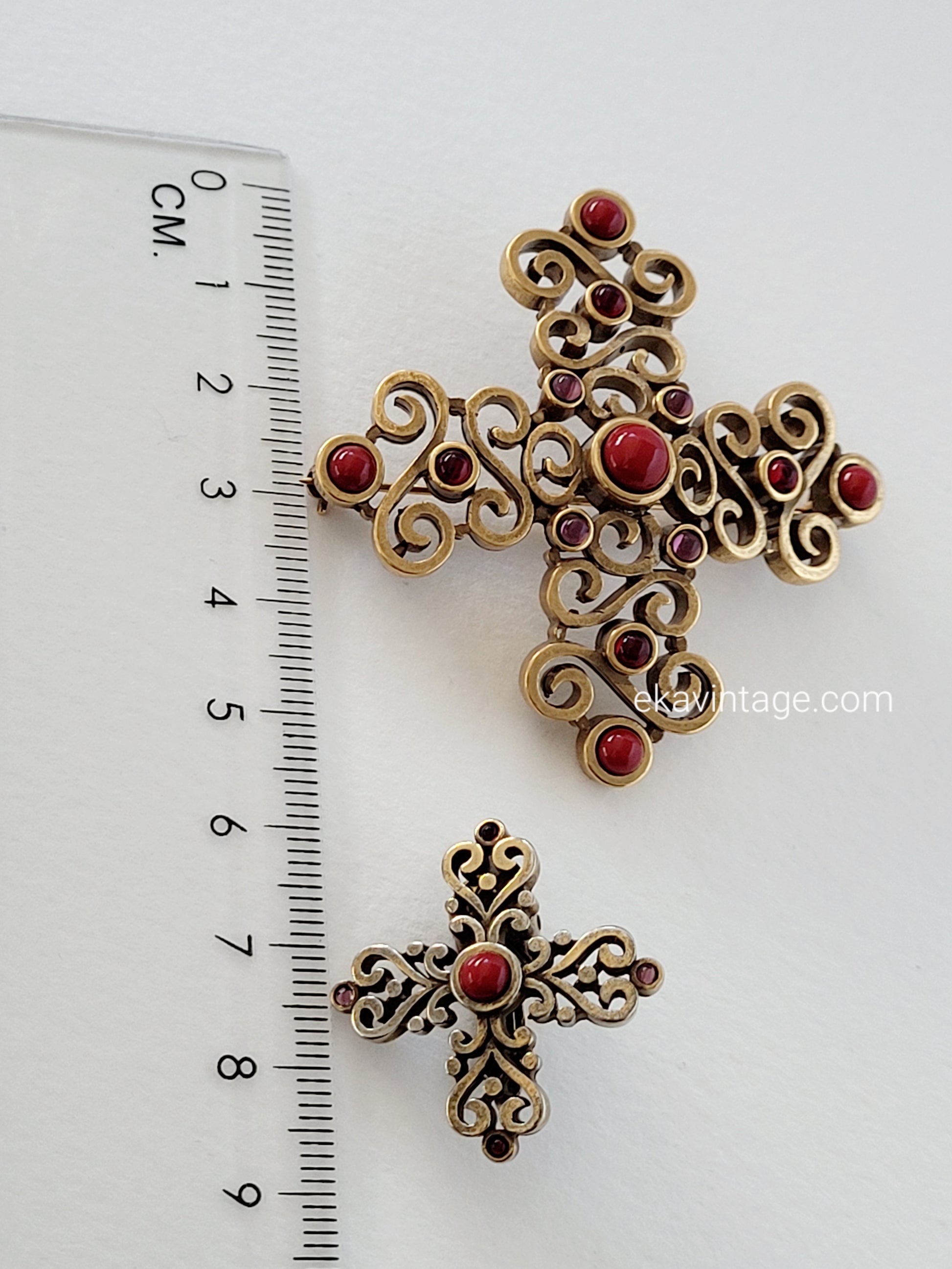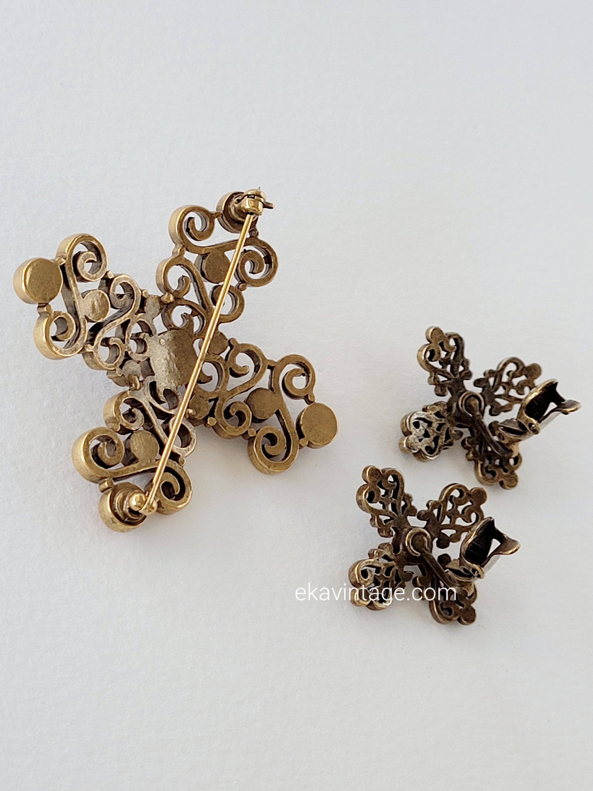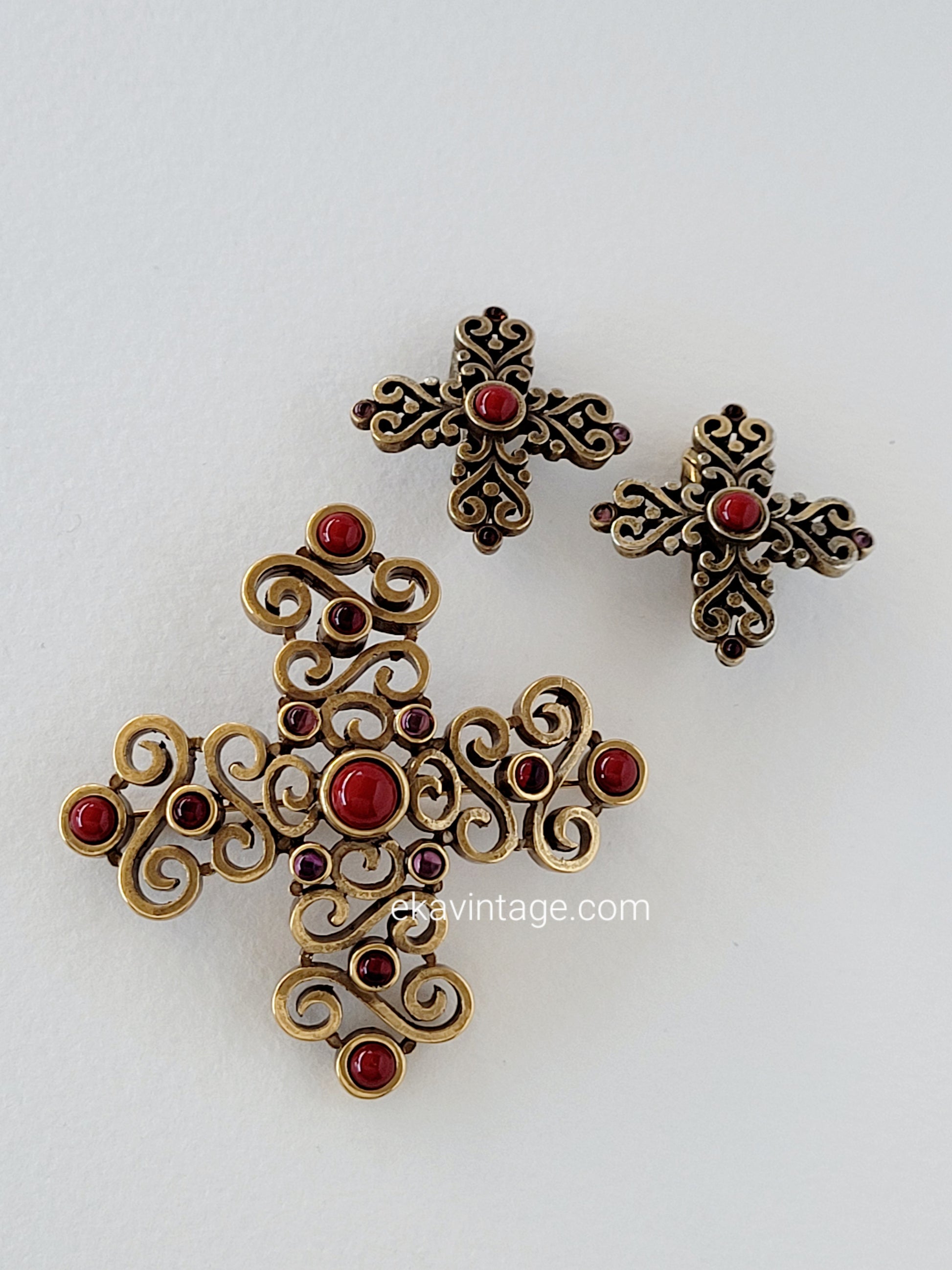 Set vintage Monet - Broche et boucles d'oreilles vintage en forme de croix.