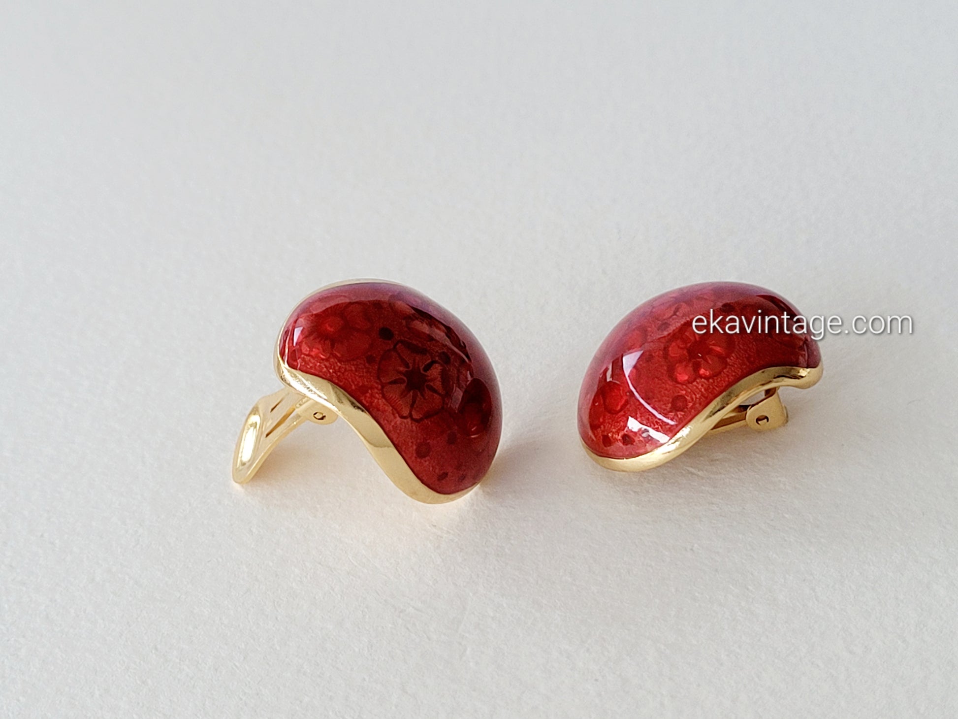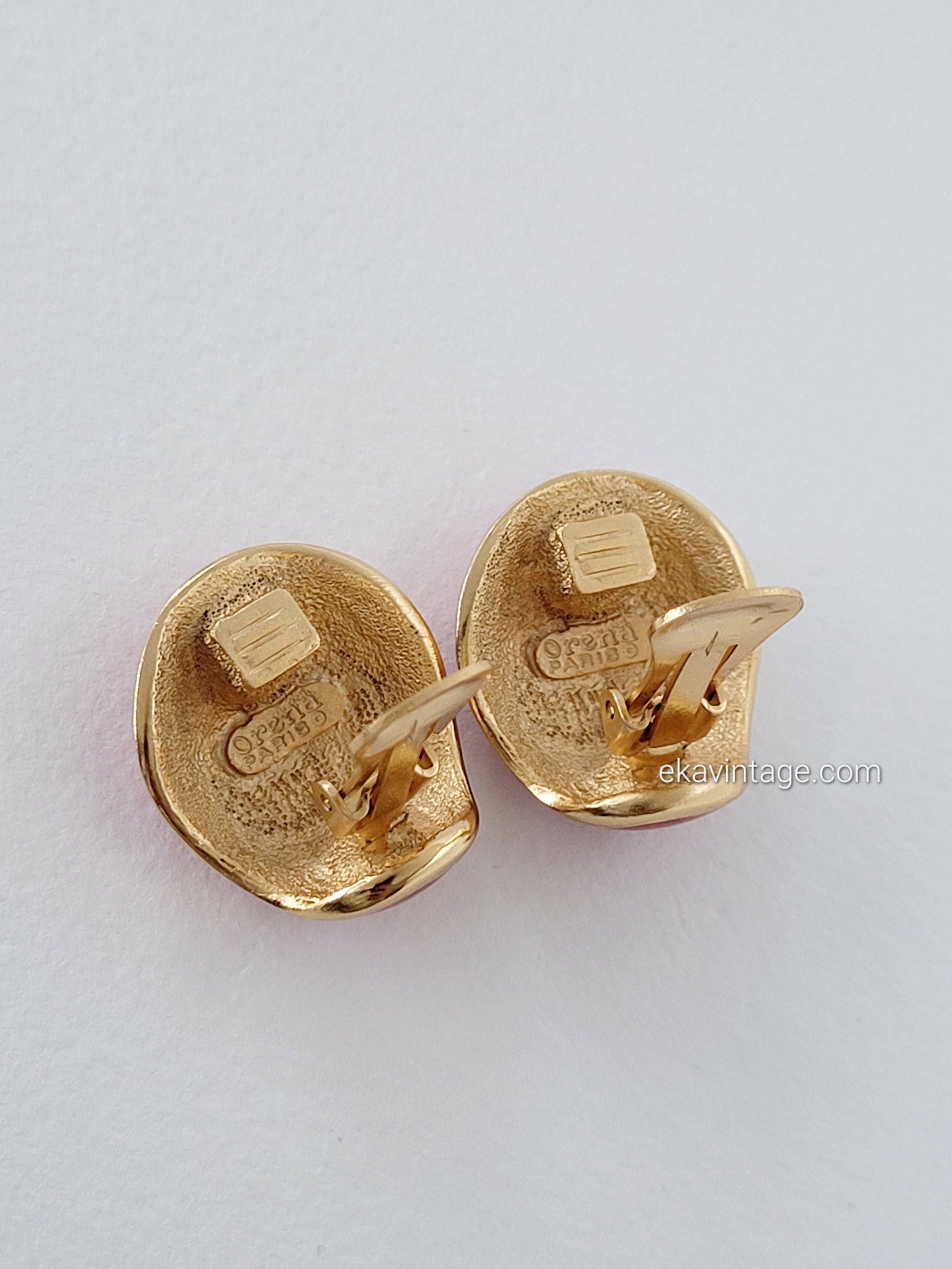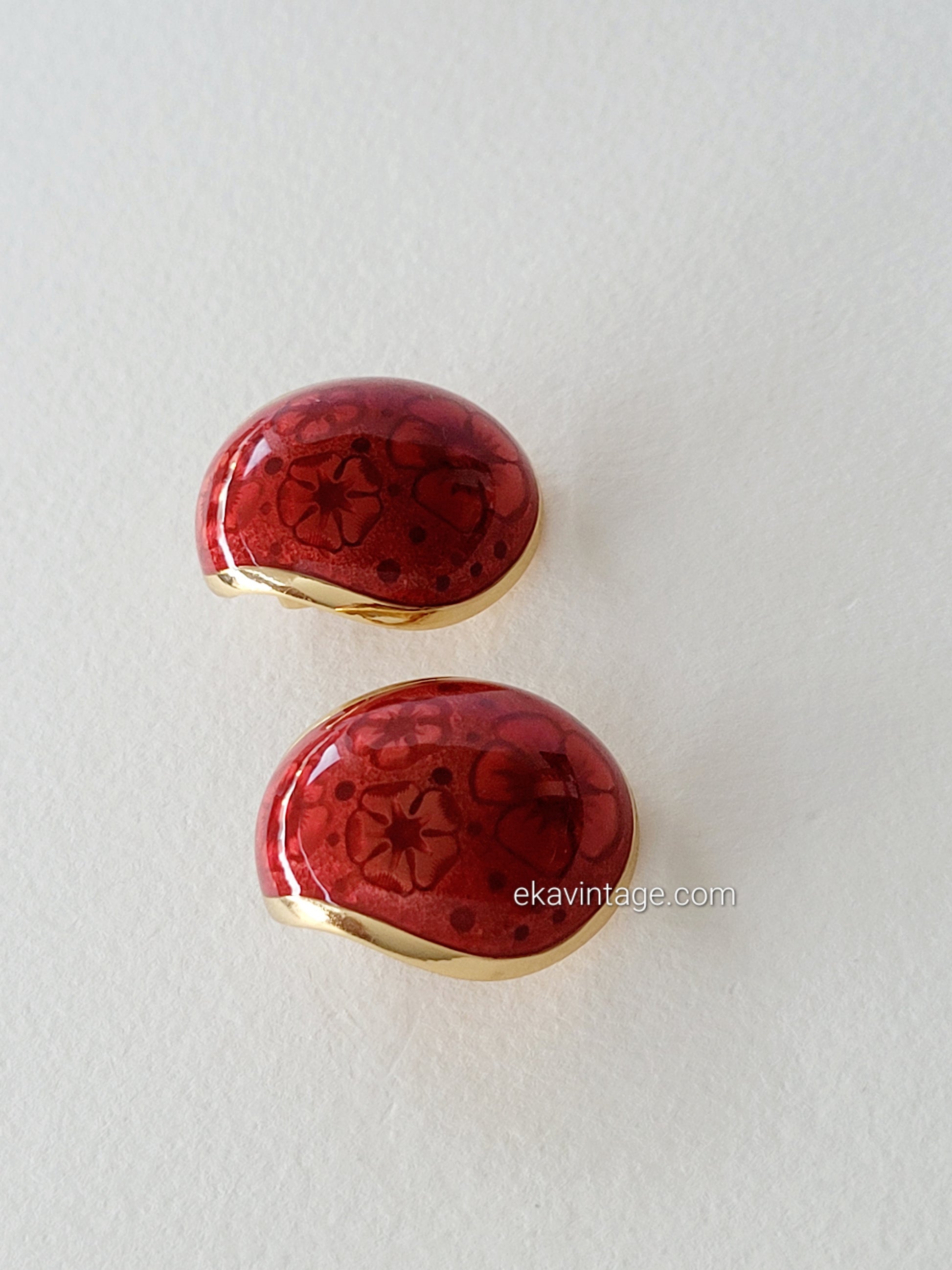 Authentiques boucles d'oreilles Orena Paris en plaqué or et émail rouge.