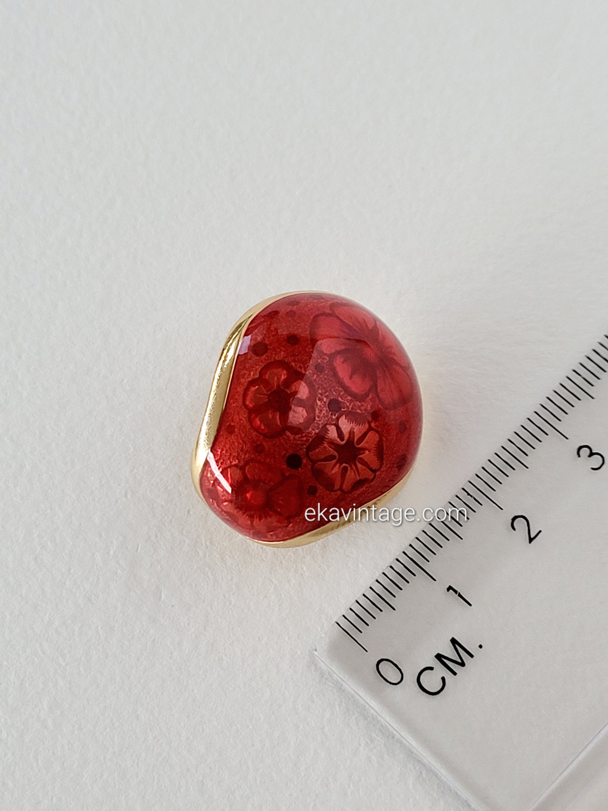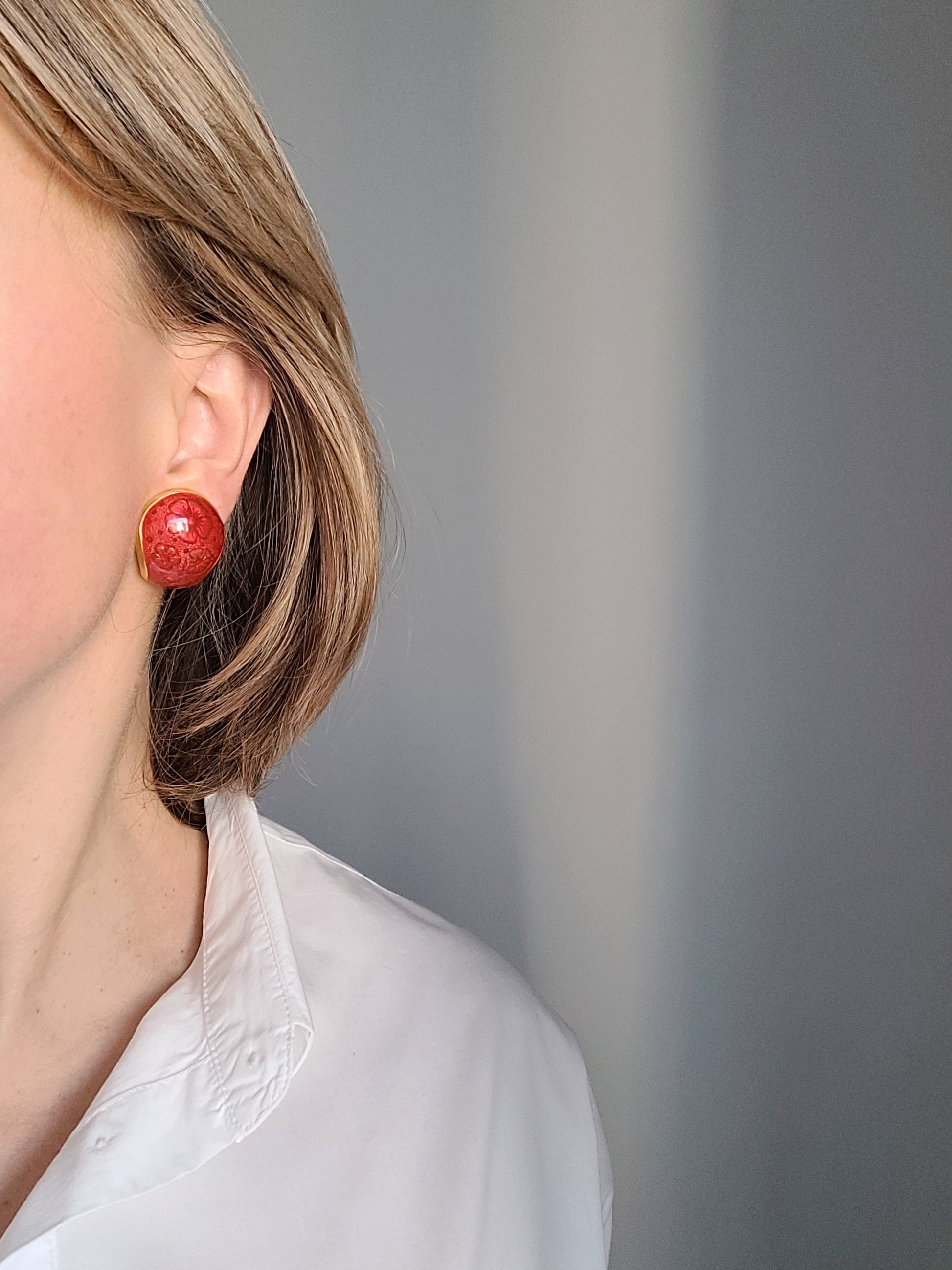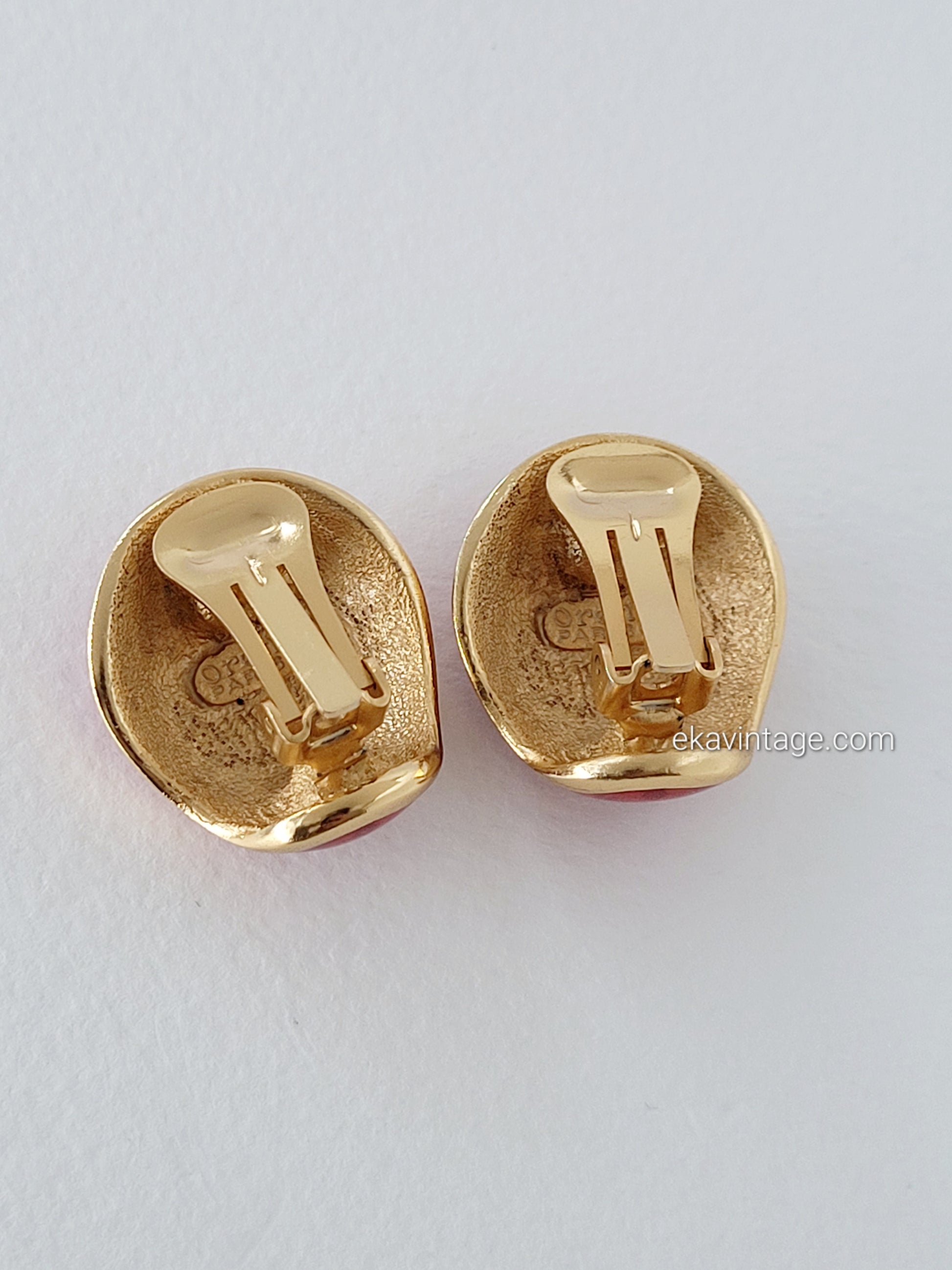 Authentiques boucles d'oreilles Orena Paris en plaqué or et émail rouge.