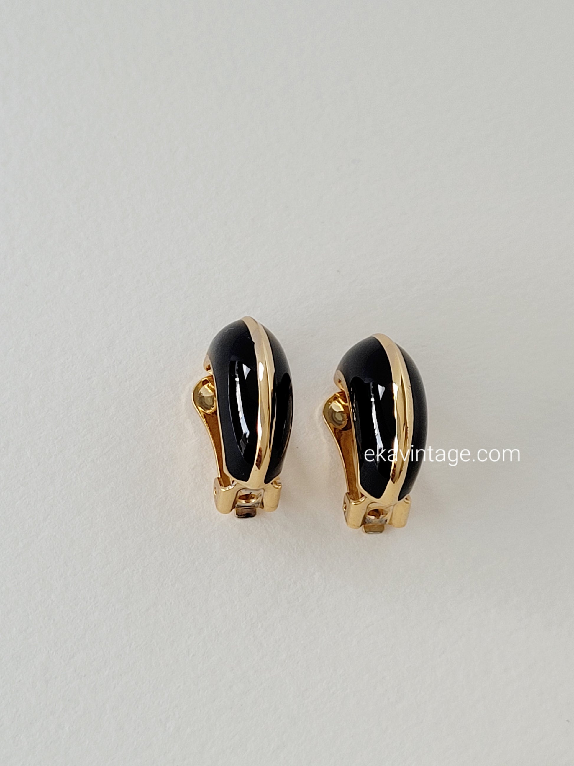 Authentiques boucles d'oreilles Orena Paris en plaqué or et émail.