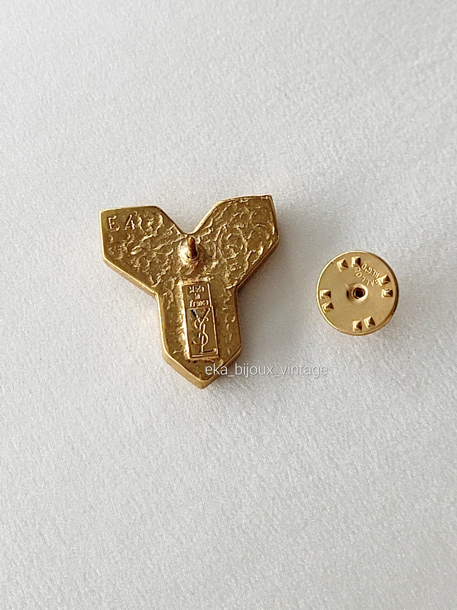 Authentique pin's Yves Saint Laurent en plaqué or, en forme Y.
