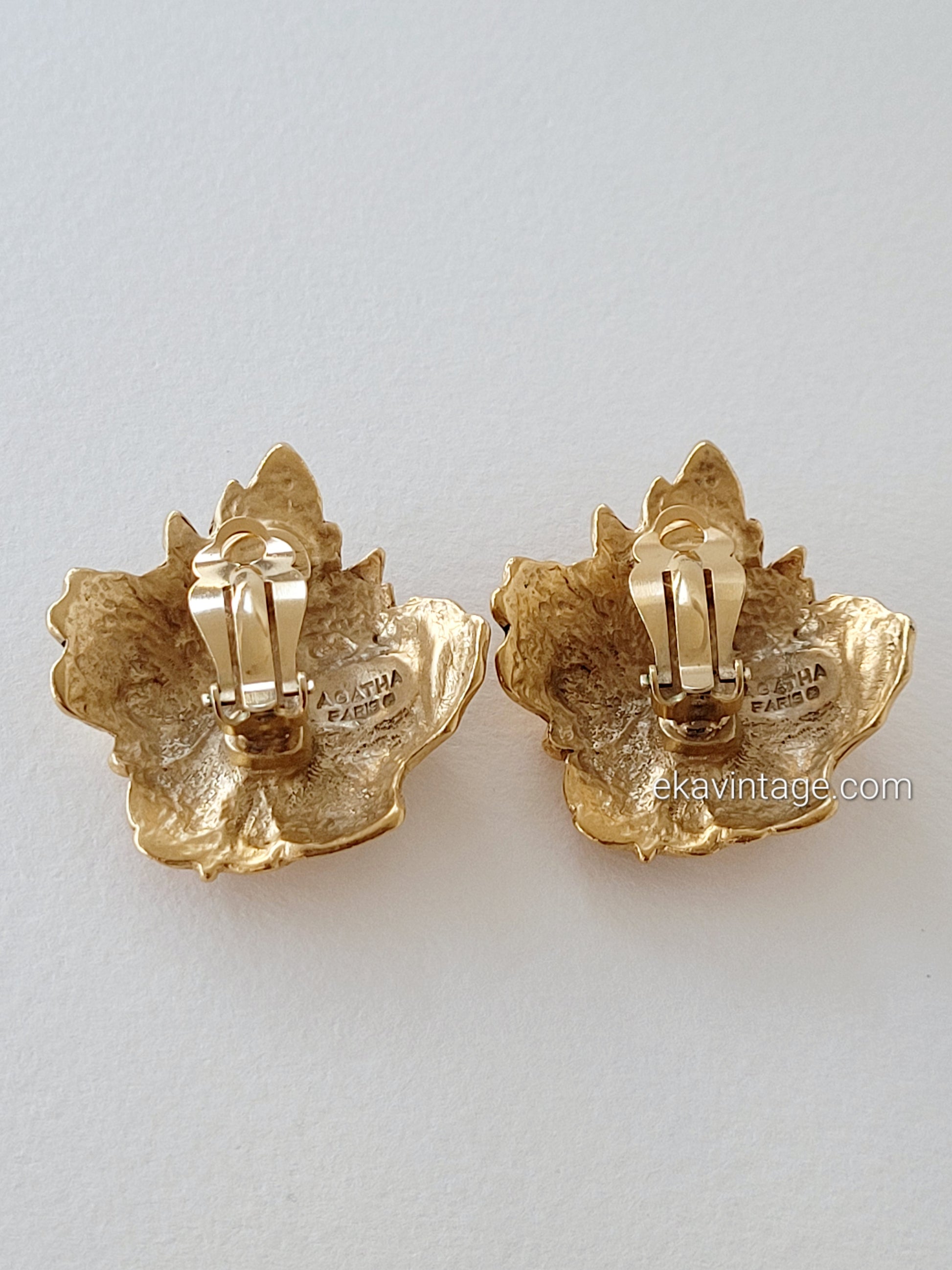 Très belles boucles d'oreilles vintage Agatha Paris, en plaqué or.