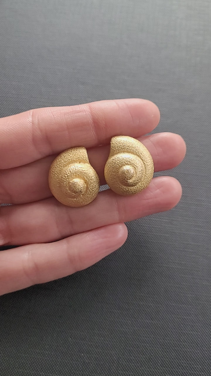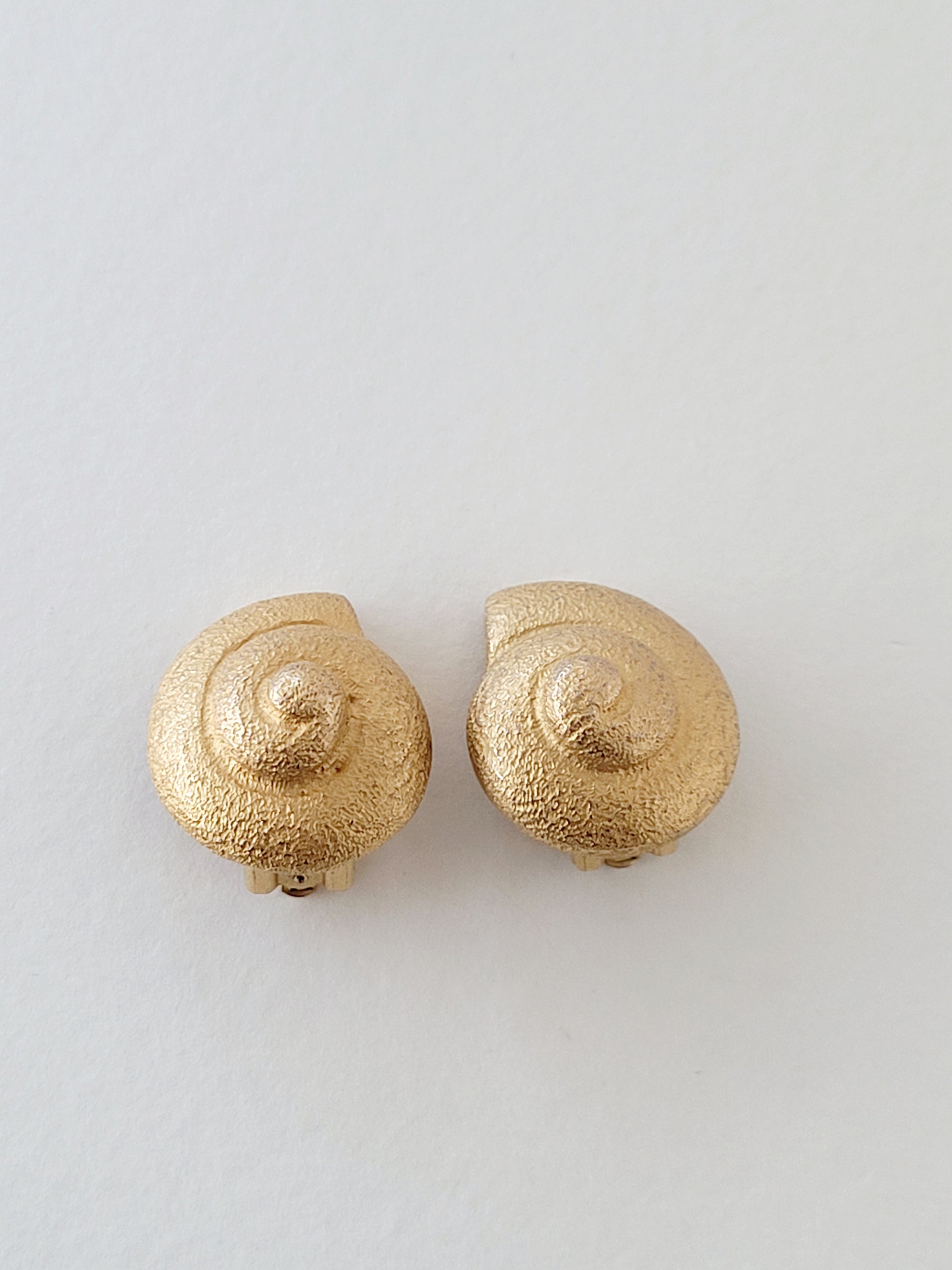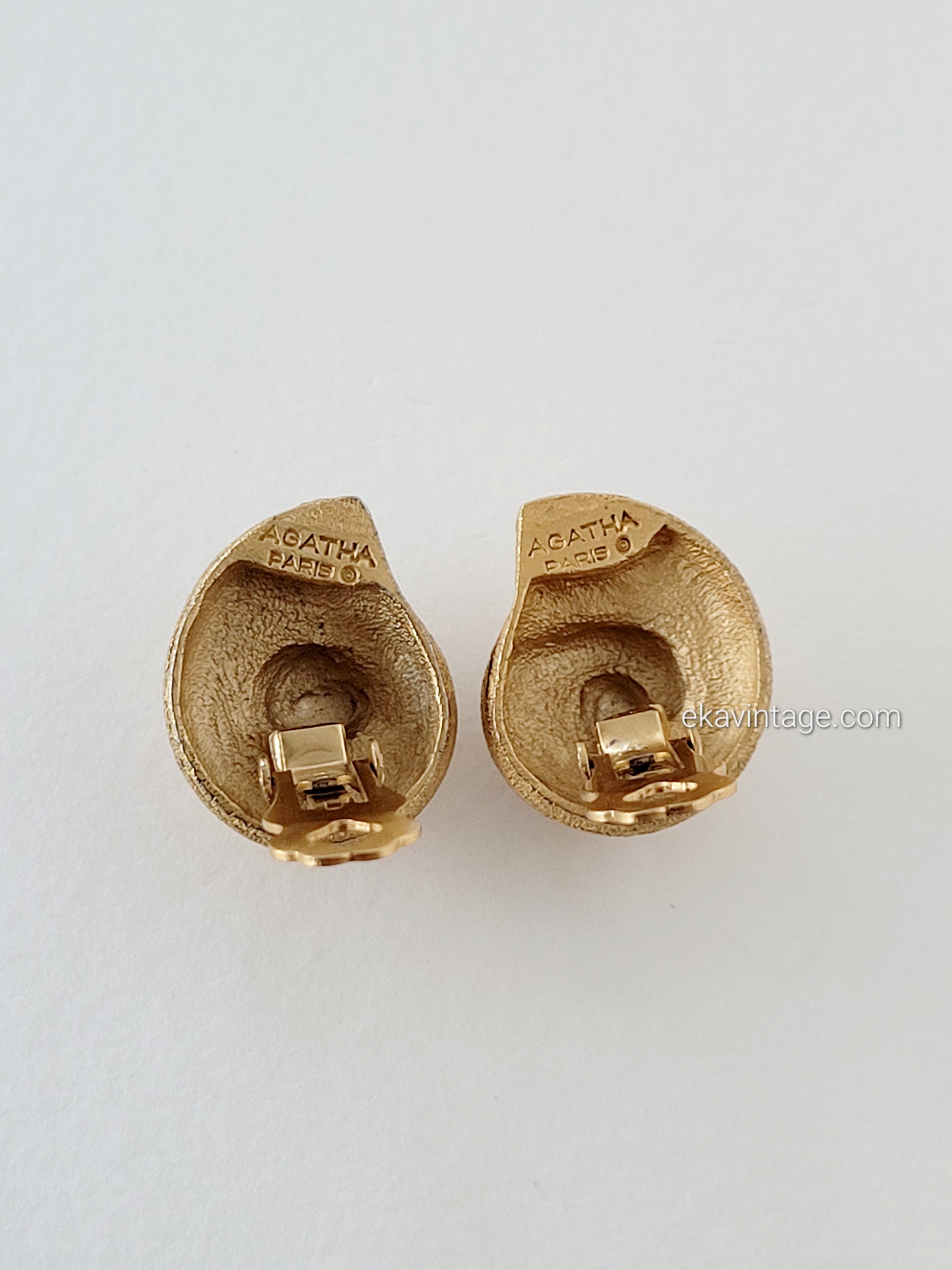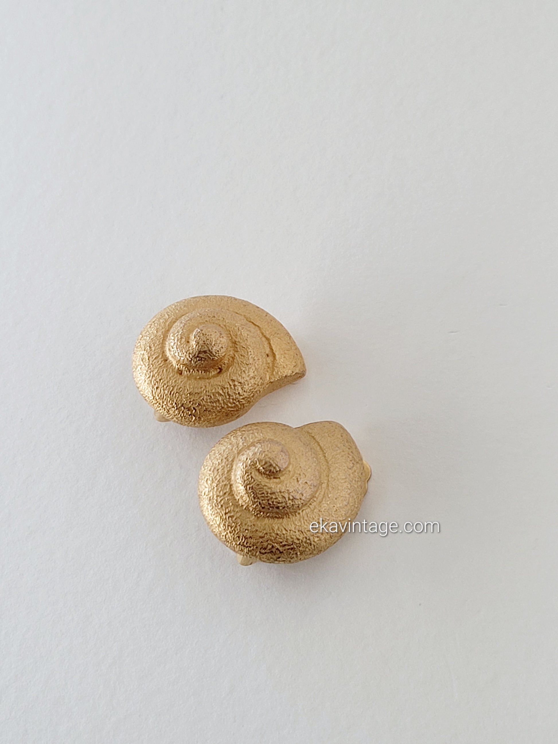 Très belles boucles d'oreilles vintage Agatha Paris, en plaqué or, en forme de coquillages.