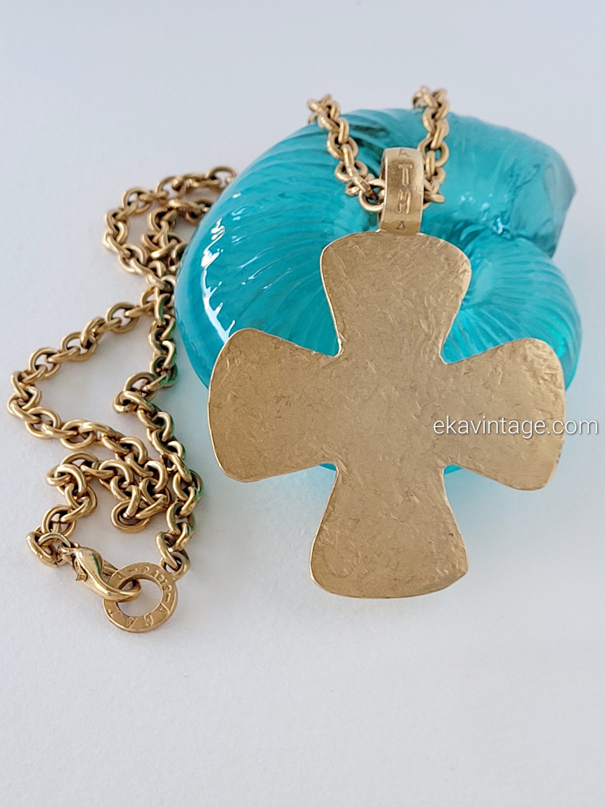 Authentique collier vintage Agatha Paris avec un médaillon en forme de croix.