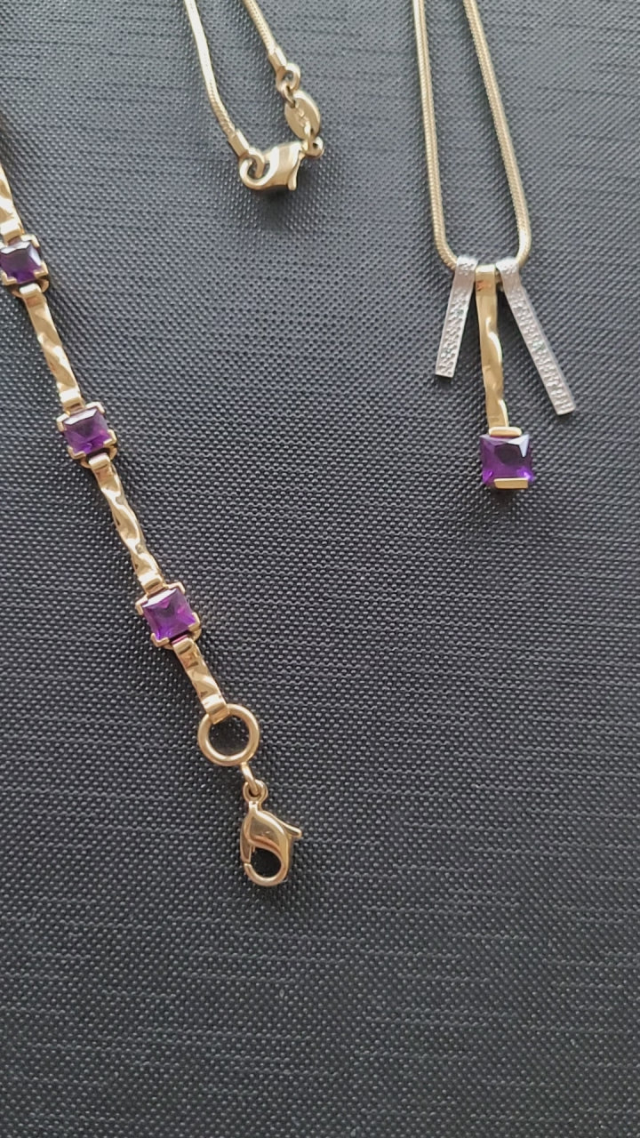 Longueur de chaîne 43 cm, bracelet 18 cm.