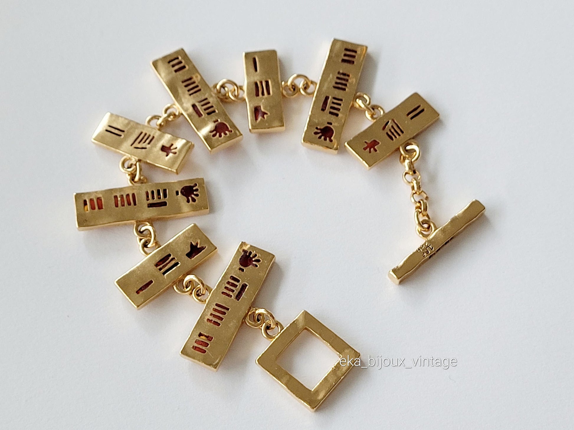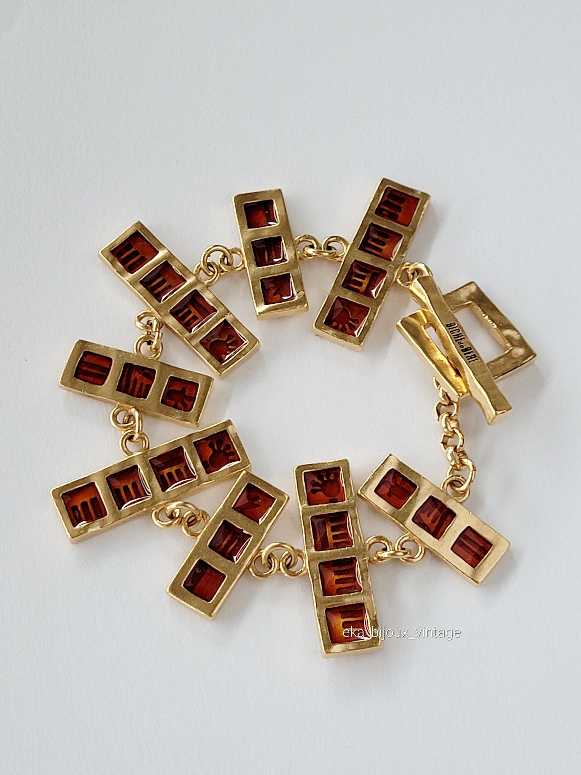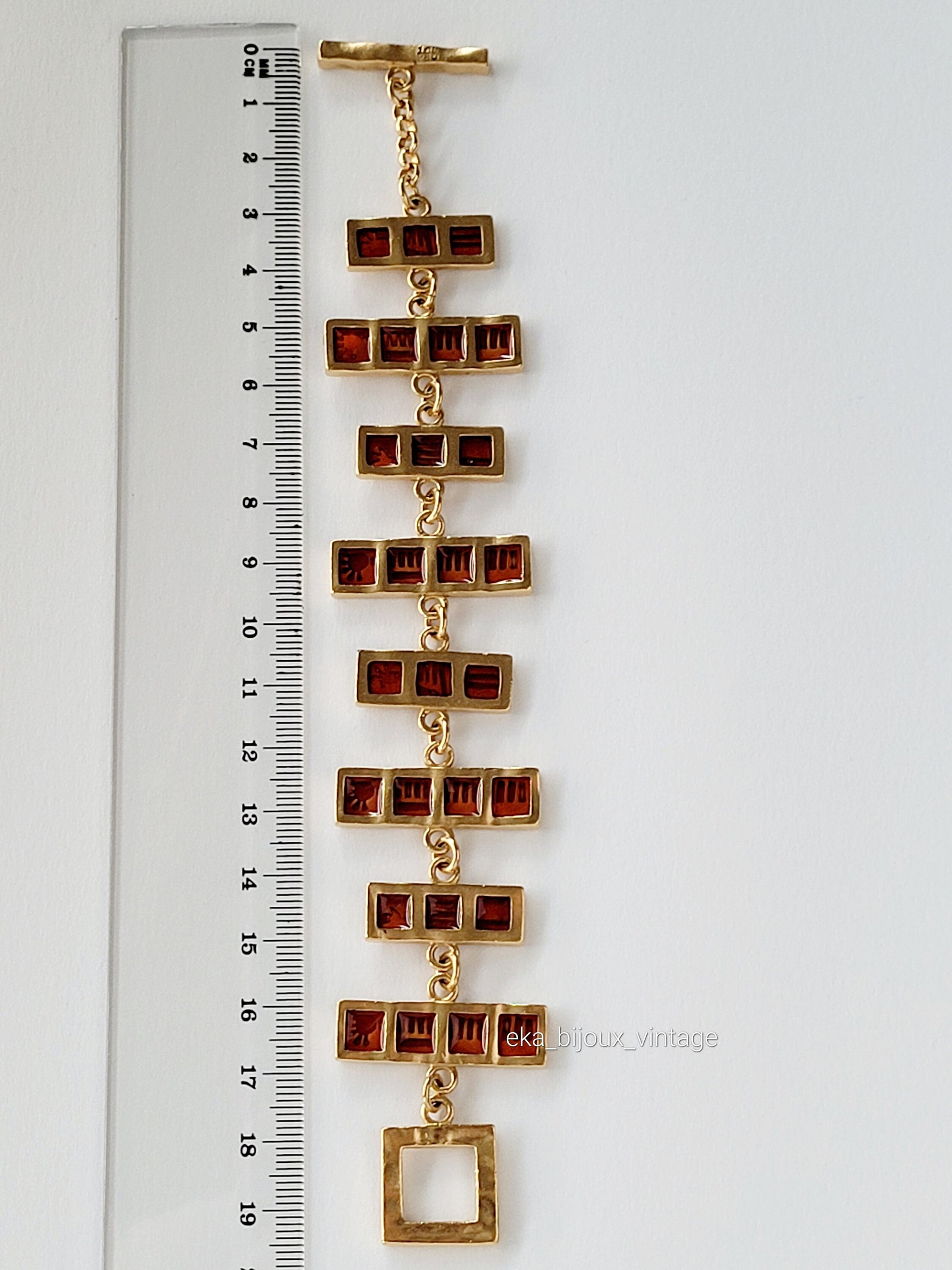 Magnifique bracelet vintage Biche de Bere en plaqué or martelé et émaux.