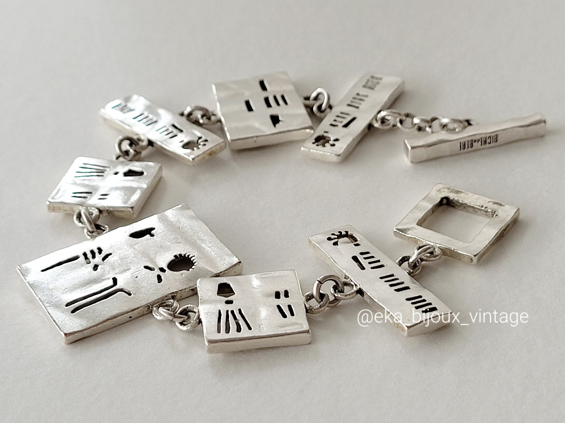 Magnifique bracelet Biche de Bere vintage en métal argenté.