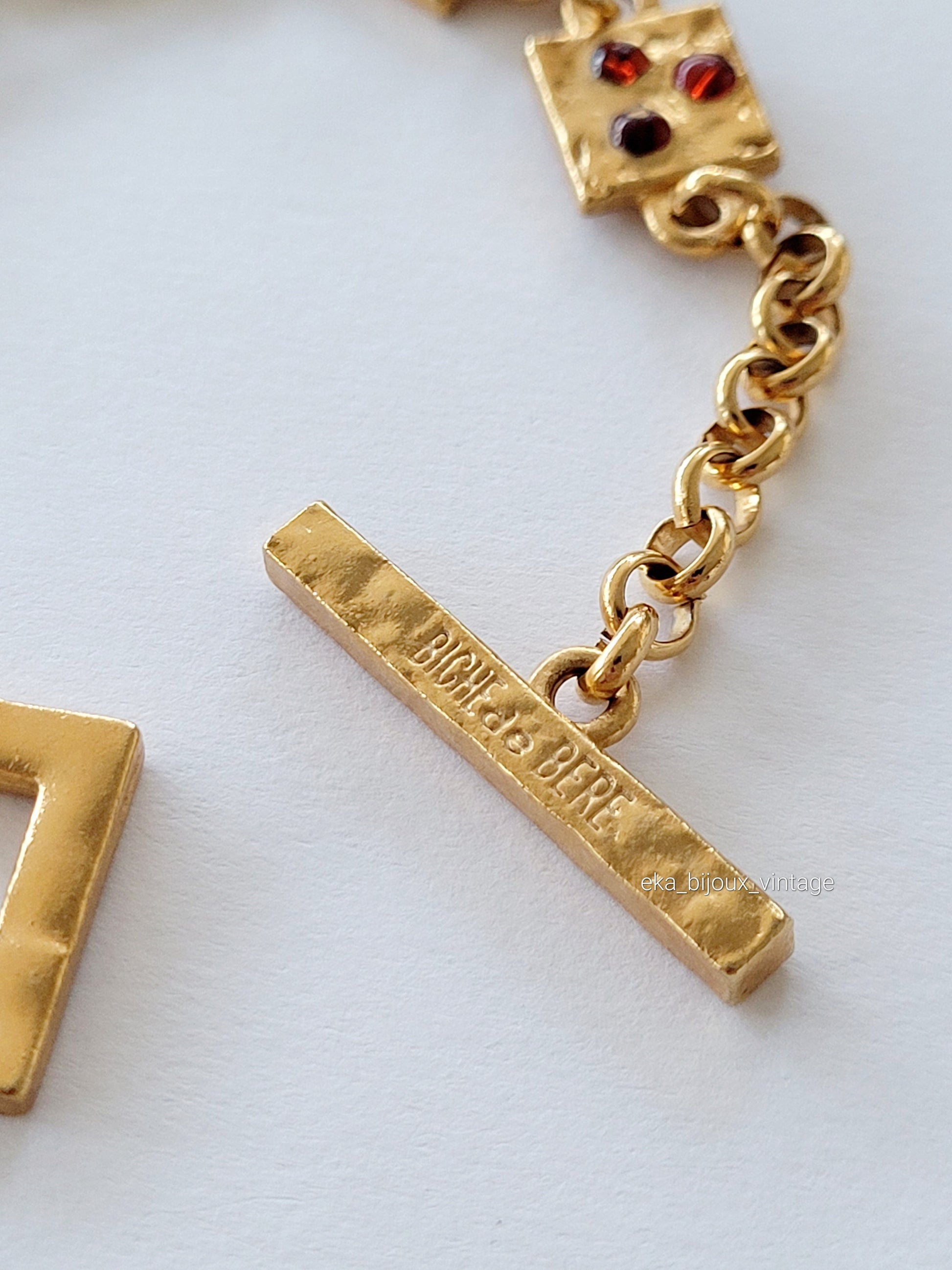 Magnifique bracelet vintage Biche de Bere en plaqué or martelé.