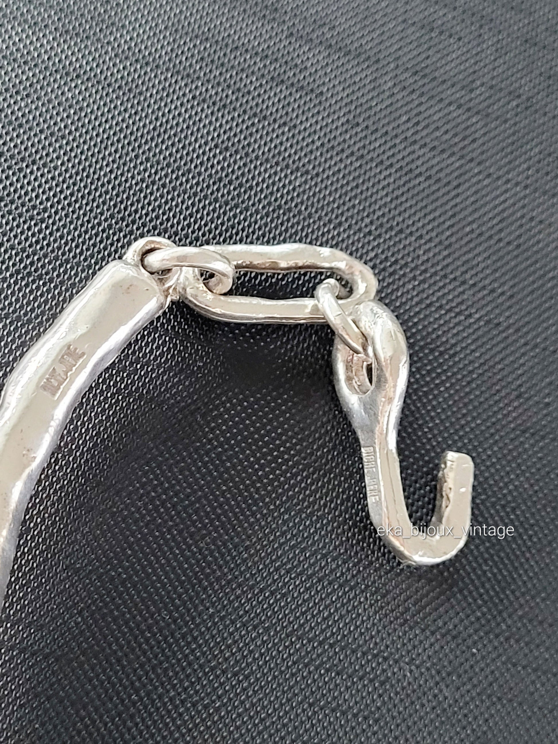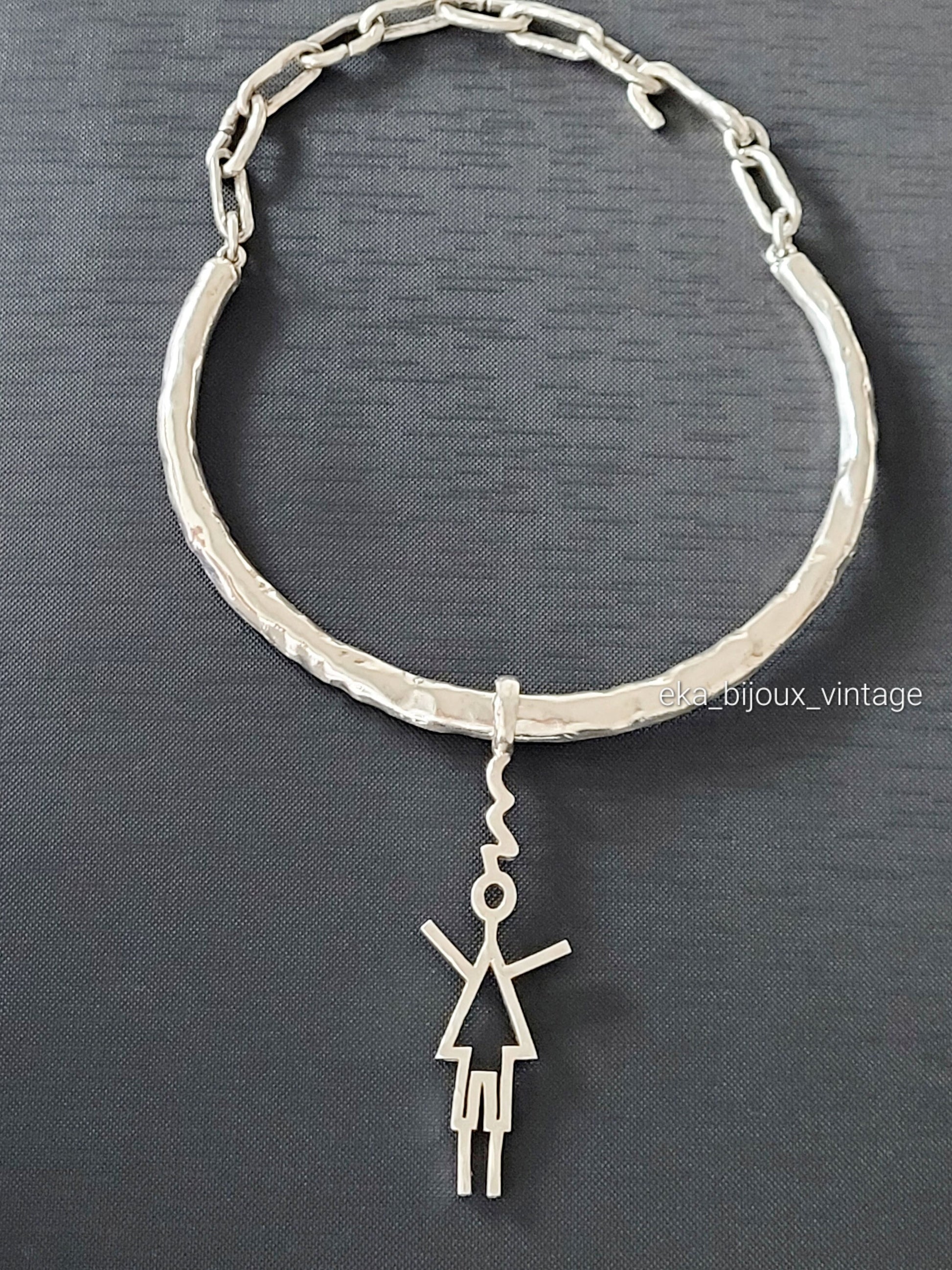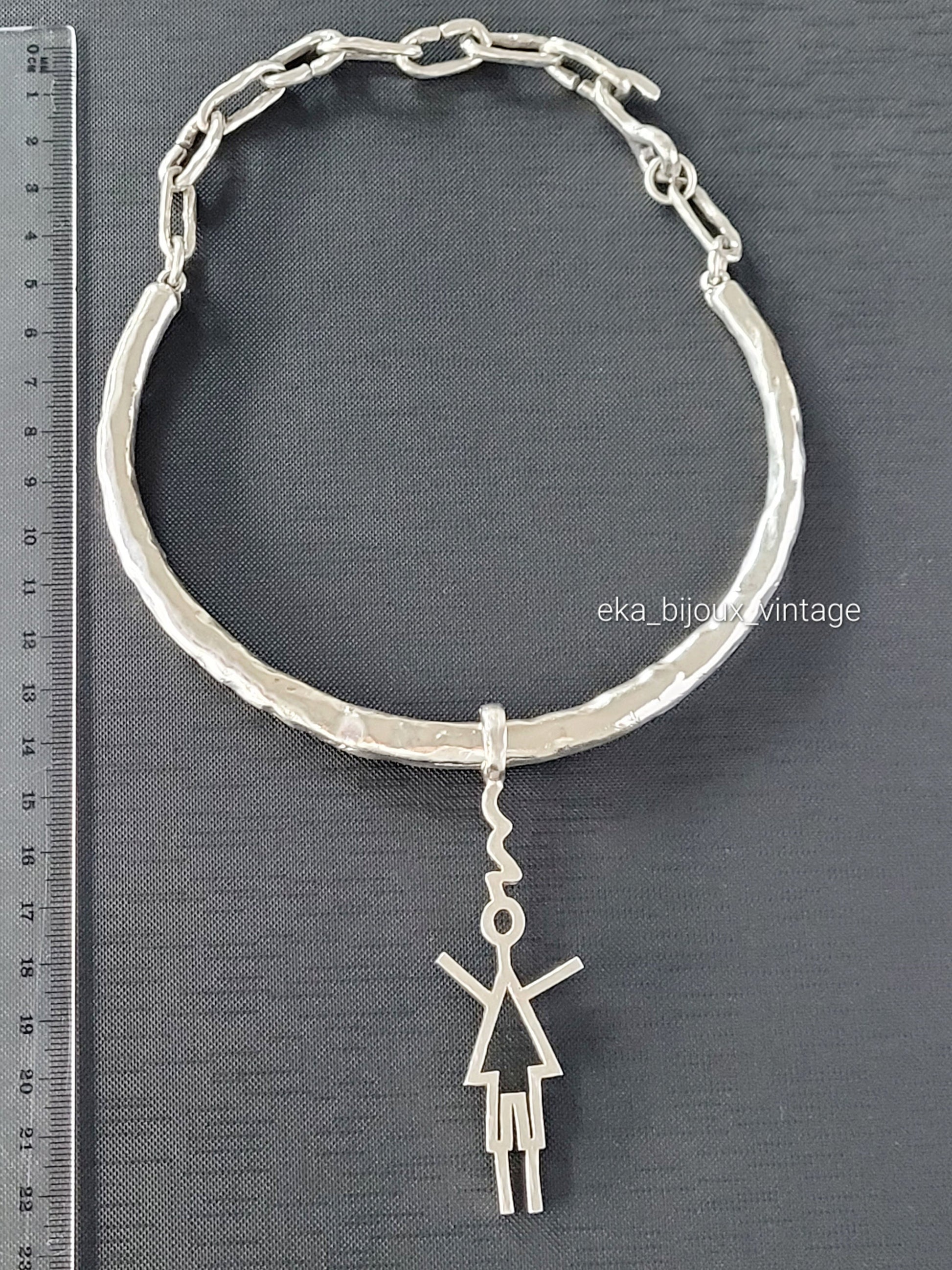 Magnifique collier/ras du cou vintage Biche de Bère en plaqué argent martelé avec un pendentif.