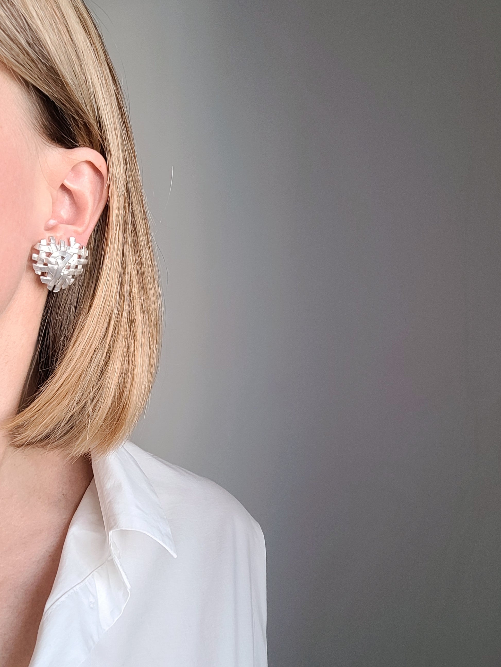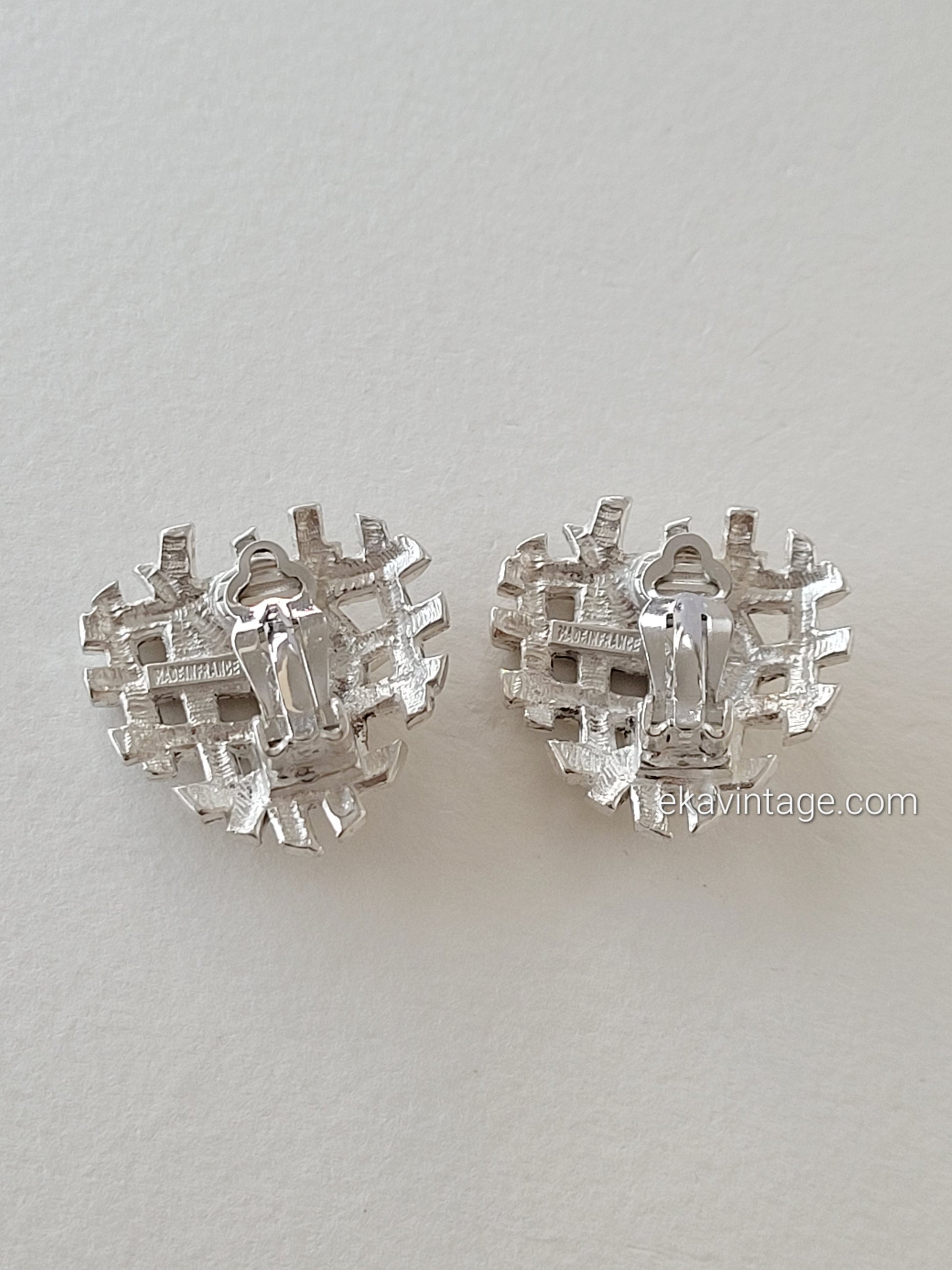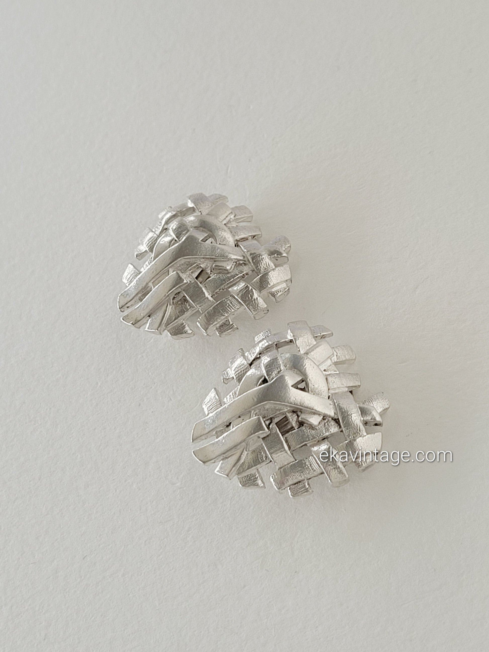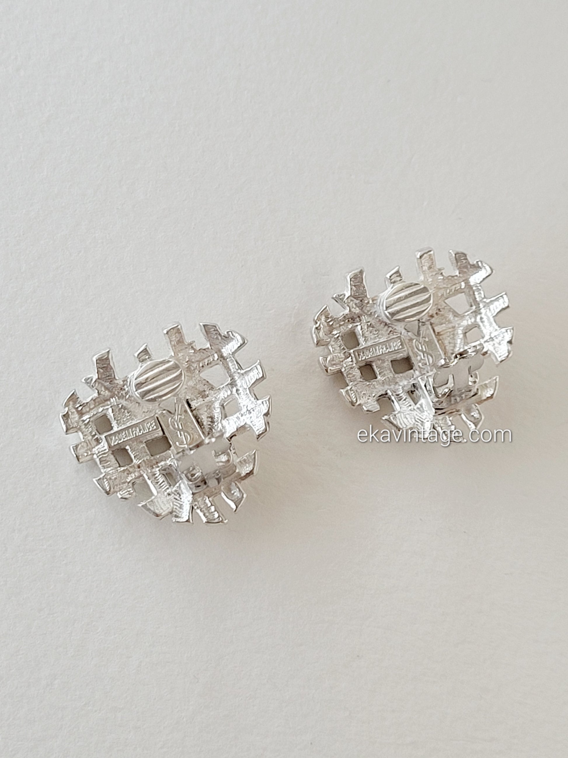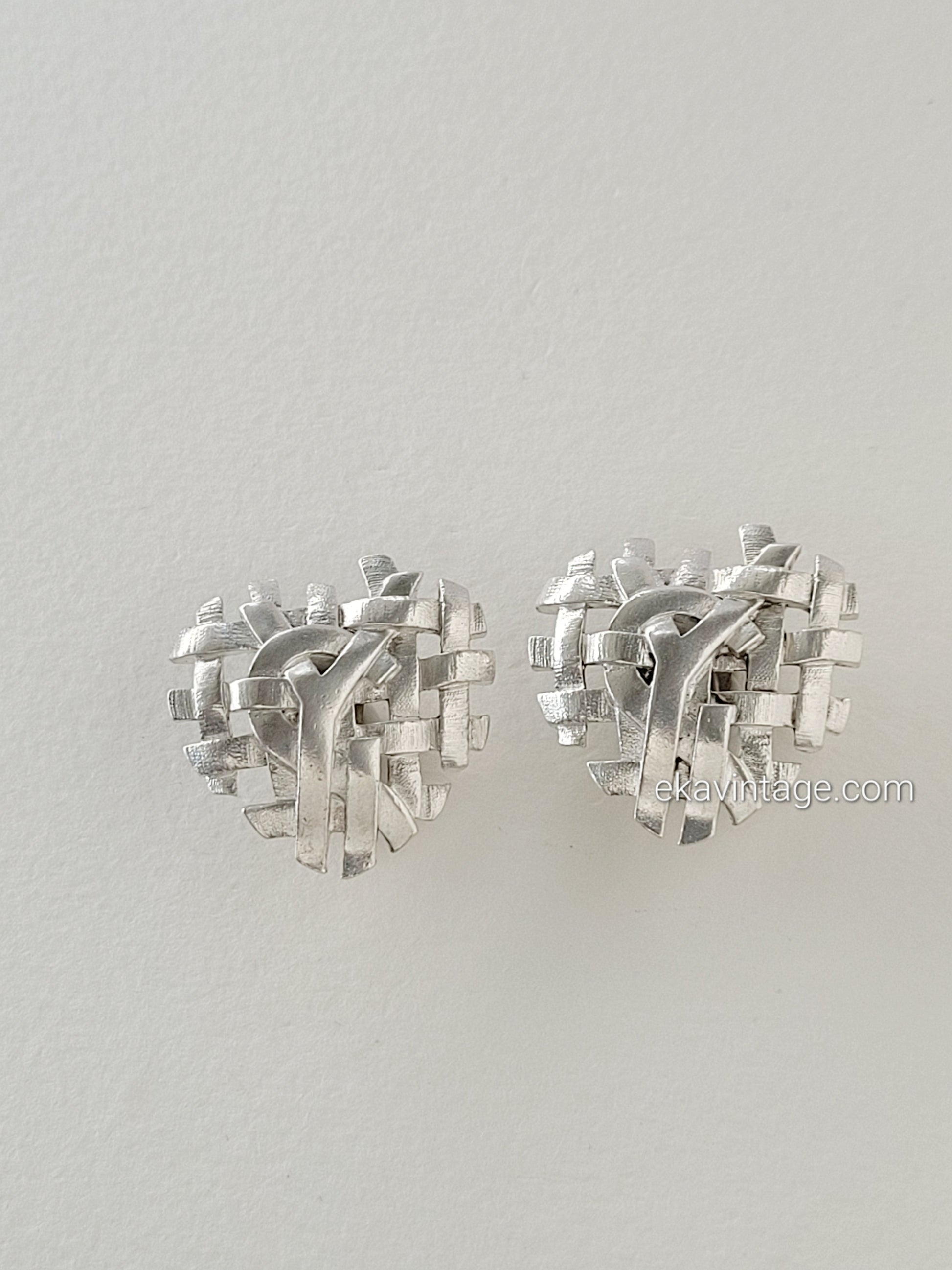 Authentiques boucles d'oreilles vintage Yves Saint Lauren en plaqué argent.