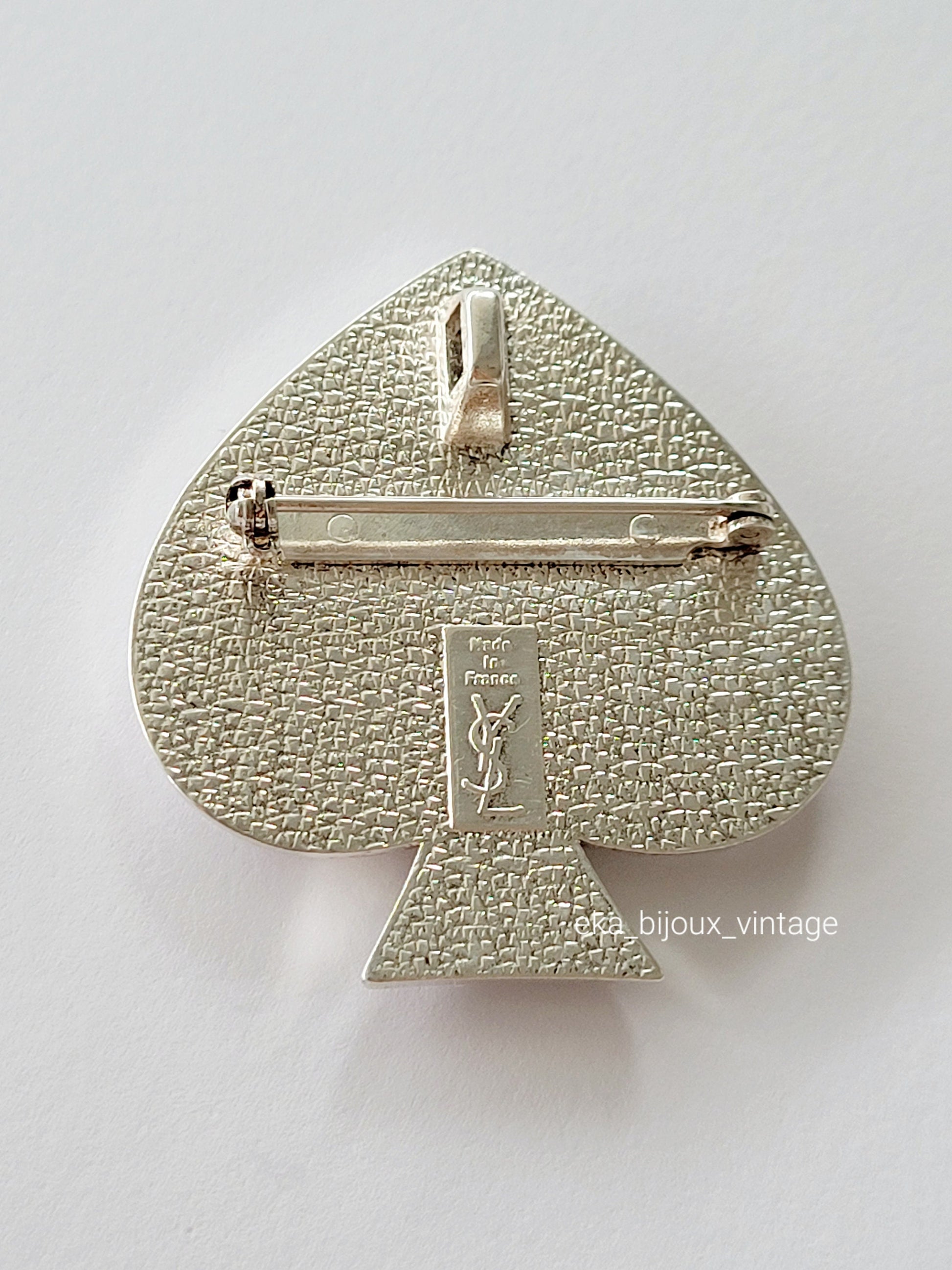 Authentique broche/pendentif Yves Saint Laurent en plaqué argent, en forme de pique.