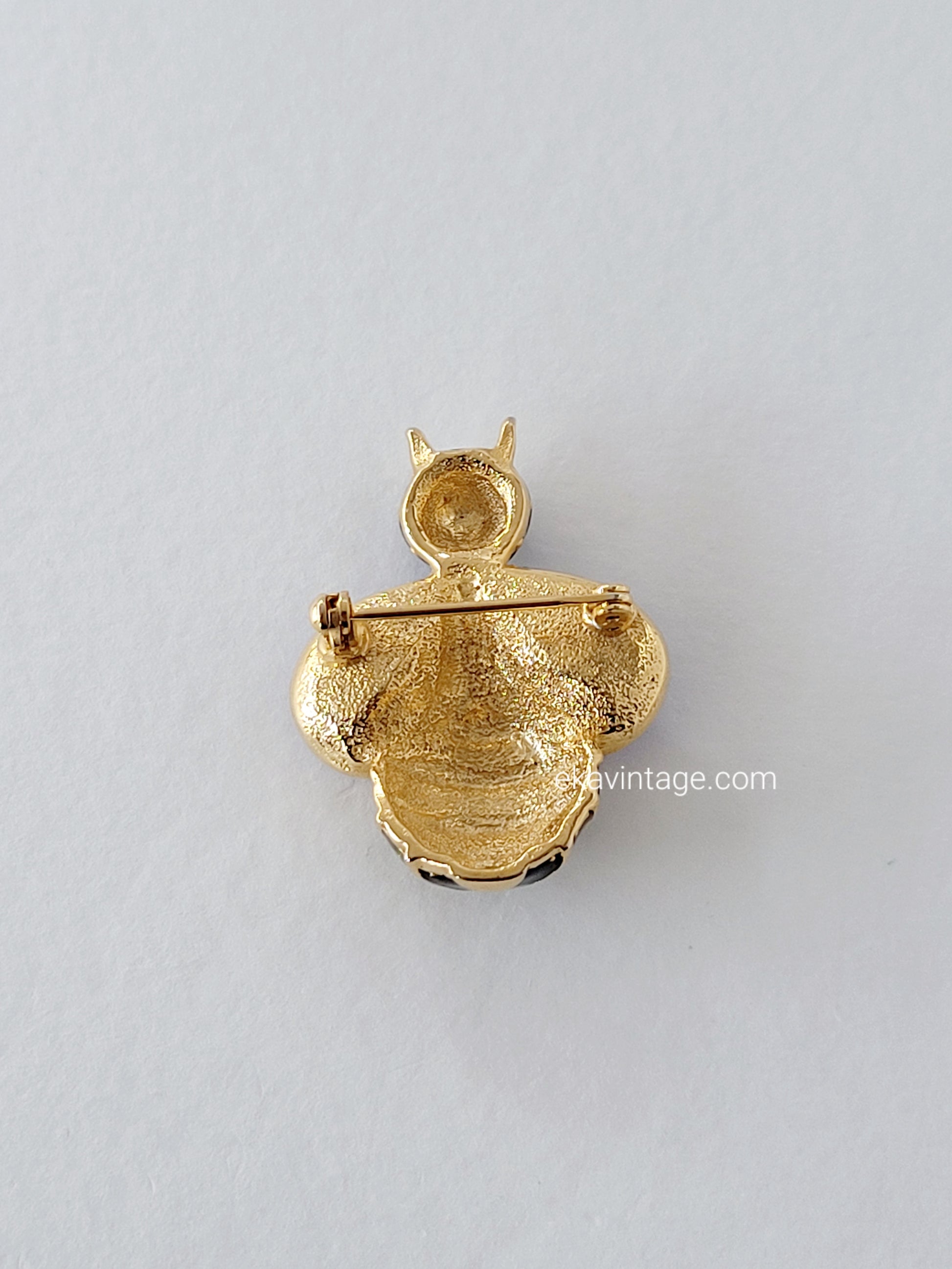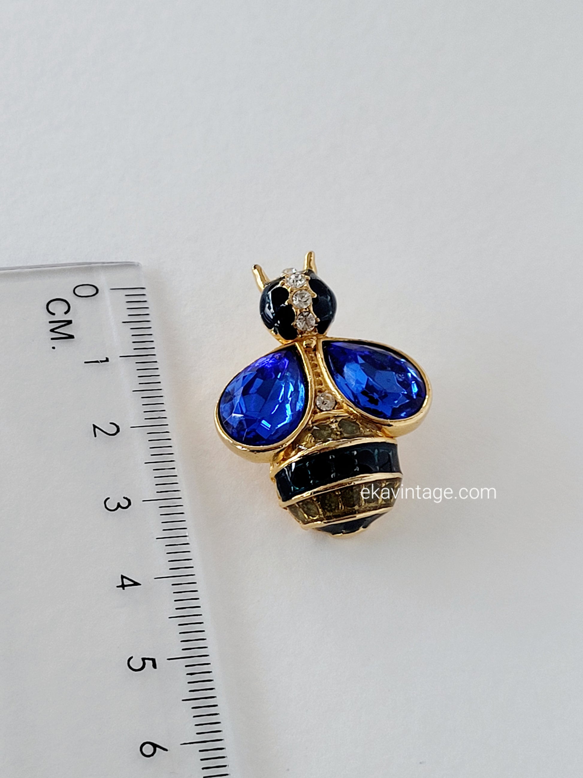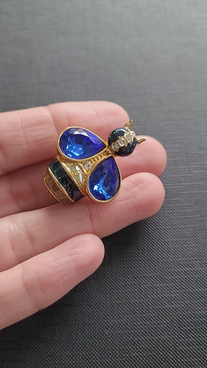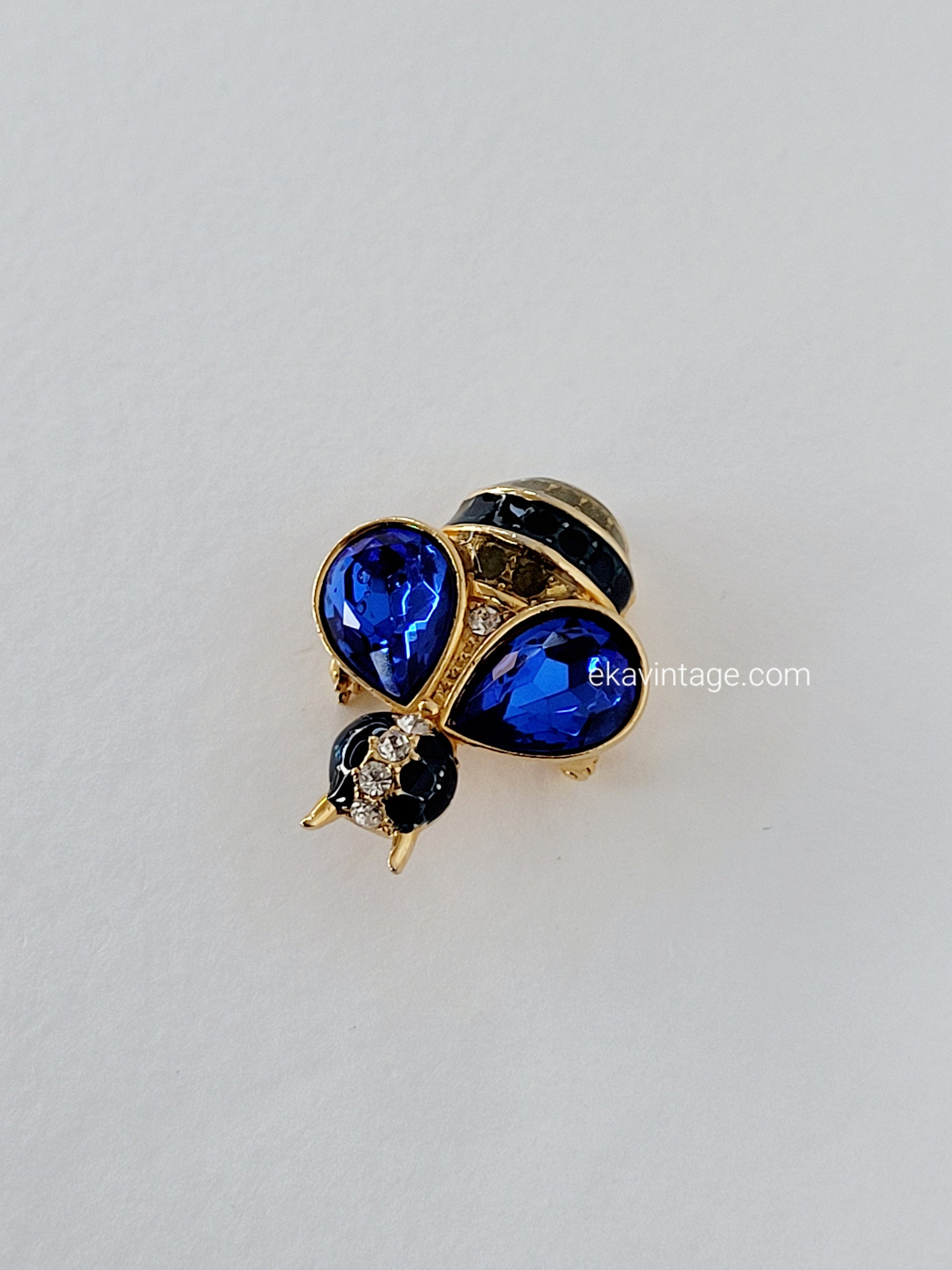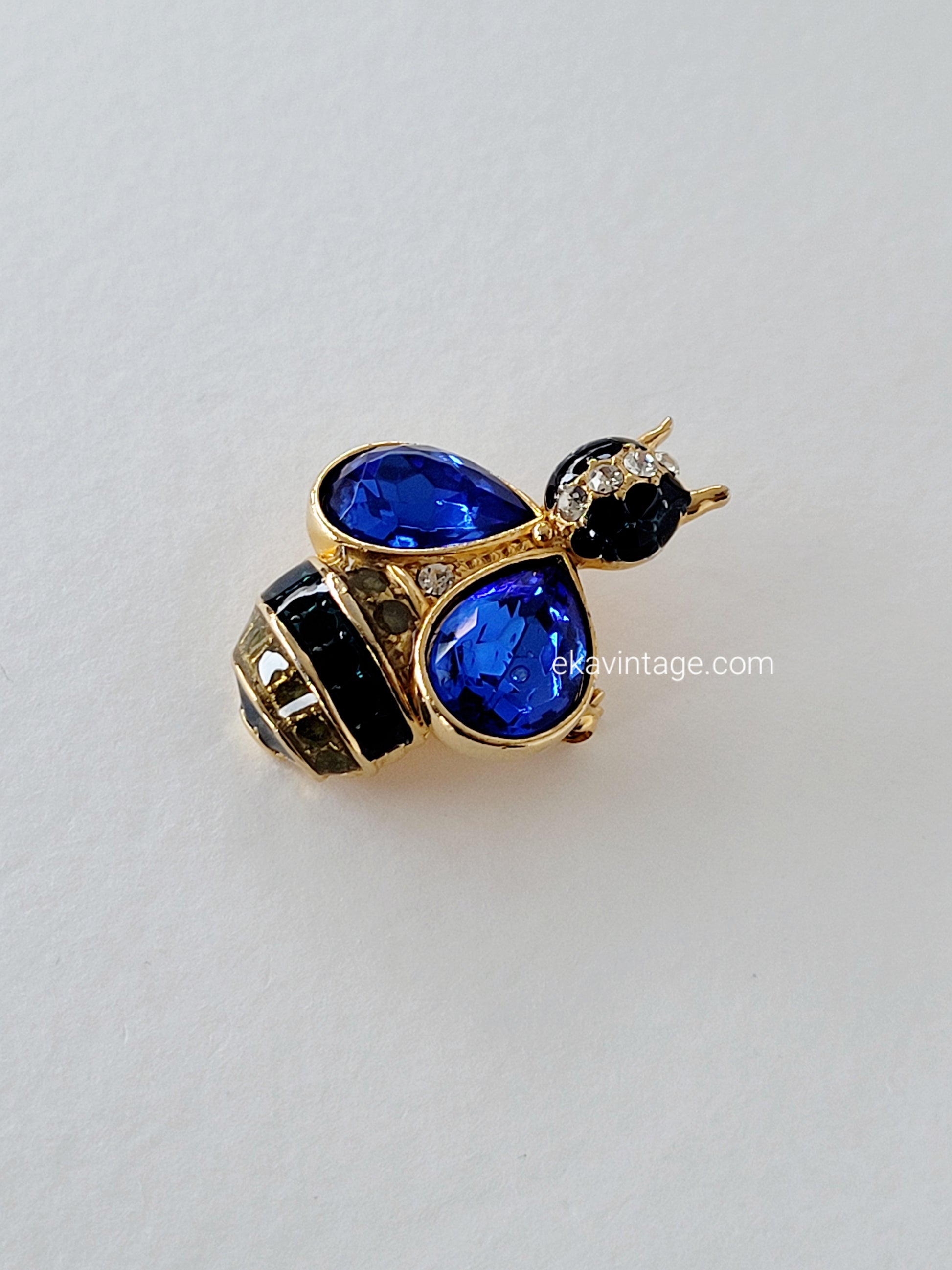 Magnifique broche vintage en forme d'insecte en plaqué or, émail et cristaux.
