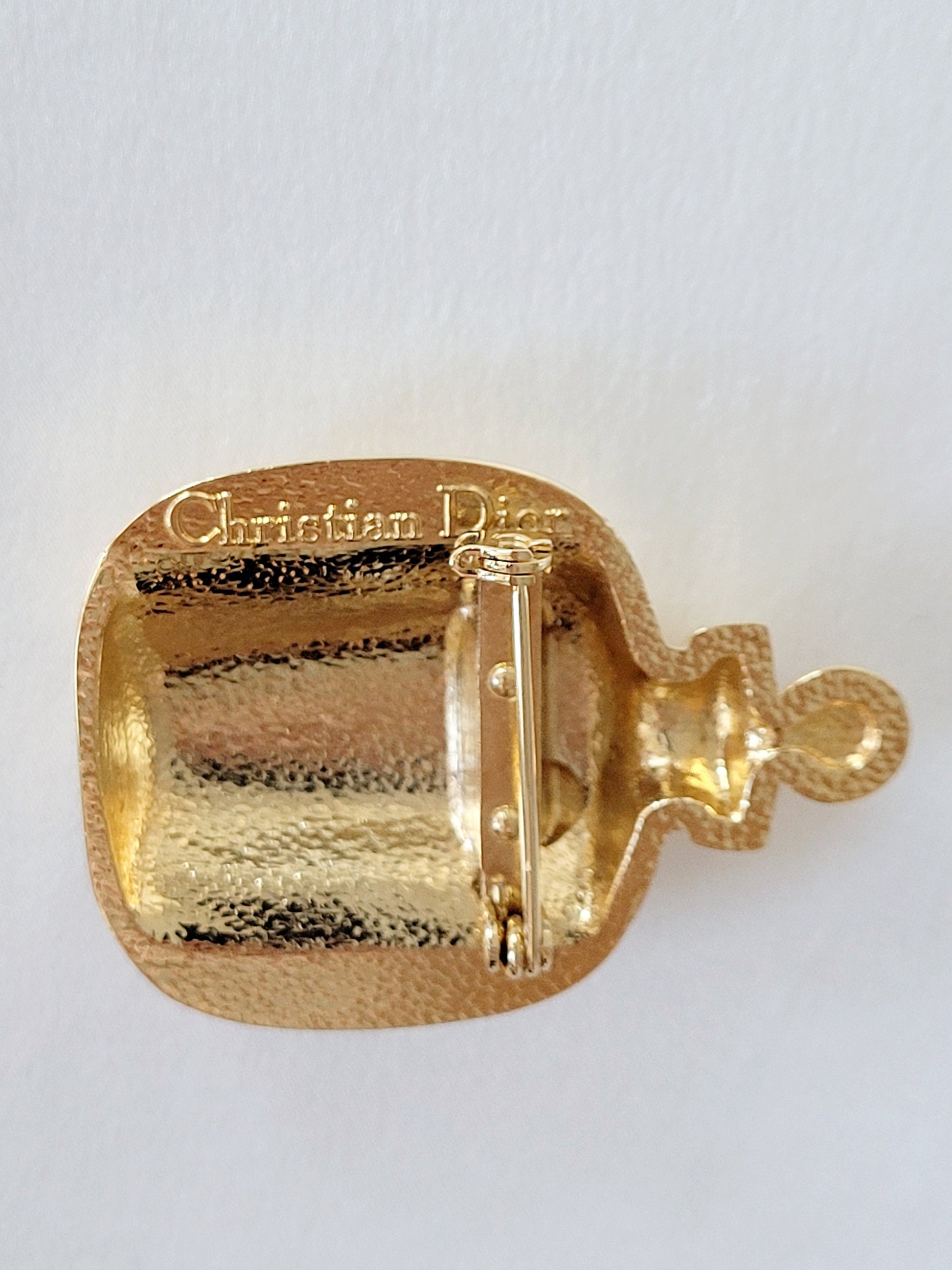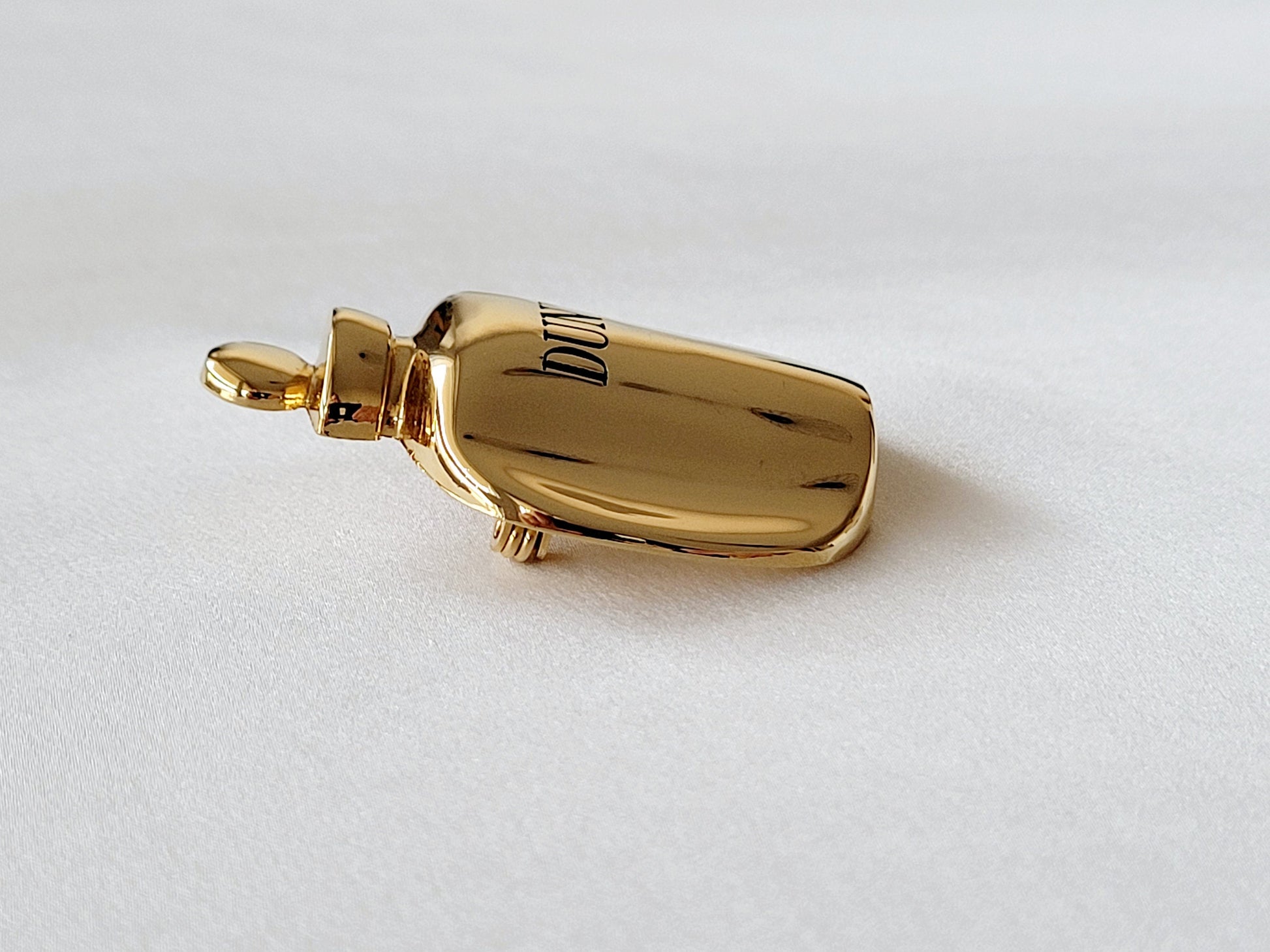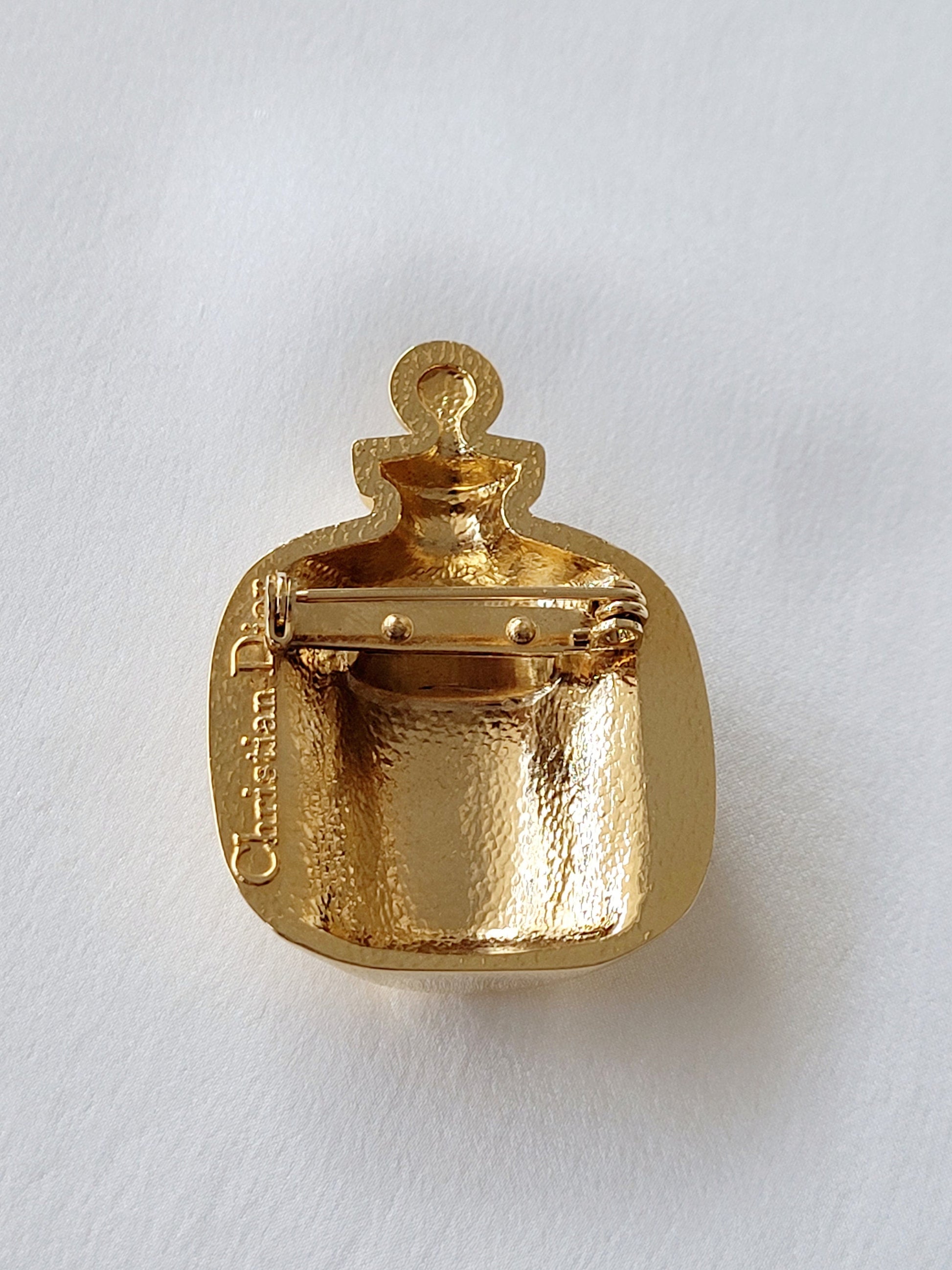 Très belle et authentique broche Christian Dior vintage en forme de flacon de parfum "DUNE" en plaqué or.