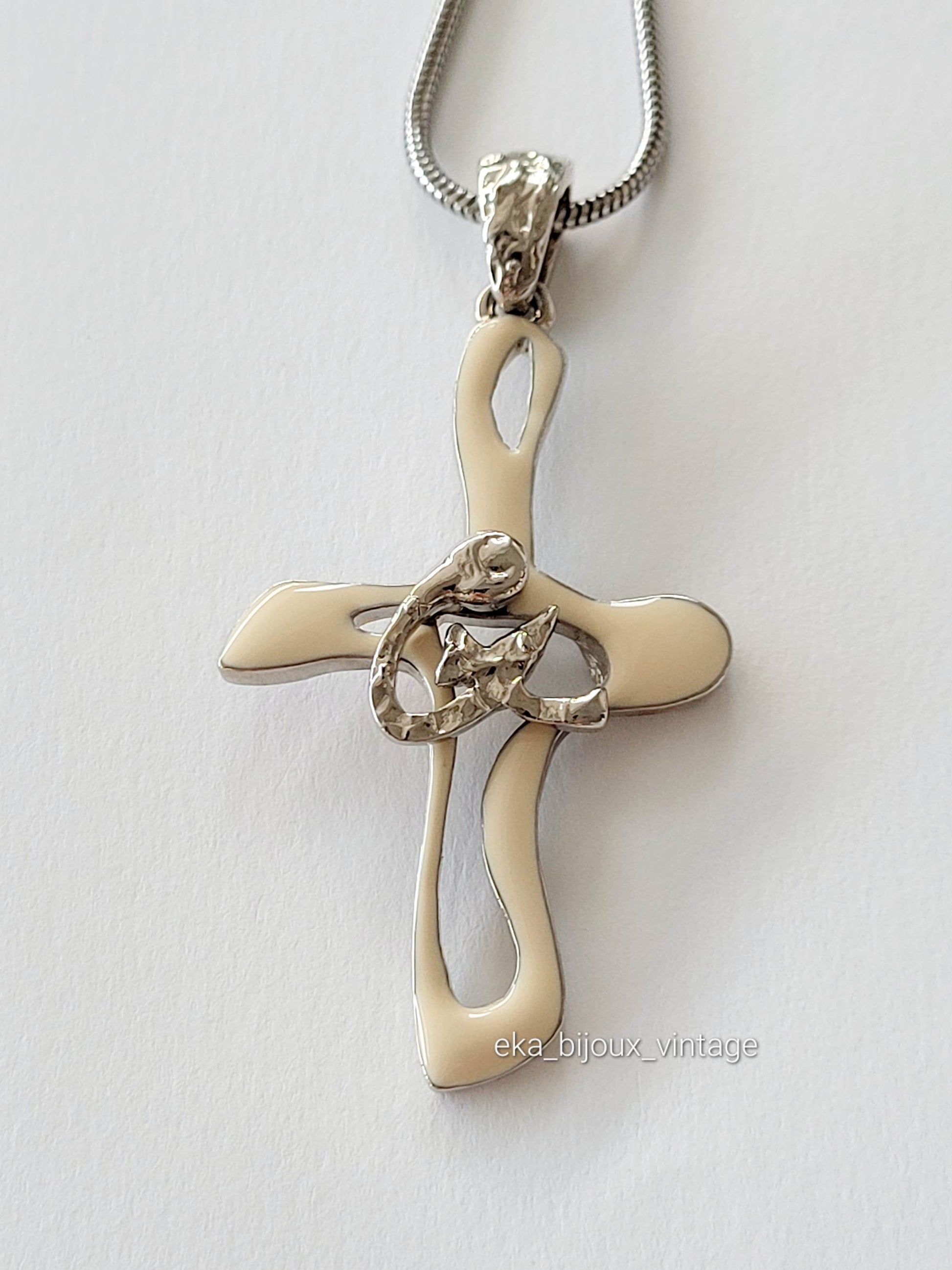 Dimensions : Longueur de chaîne 41 cm, pendentif H-6.5 cm, L-3.3 cm.