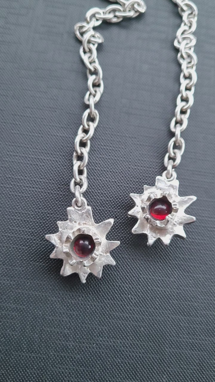 Magnifique collier vintage Biche de Bère en plaqué argent avec de perles en lucite rouge.