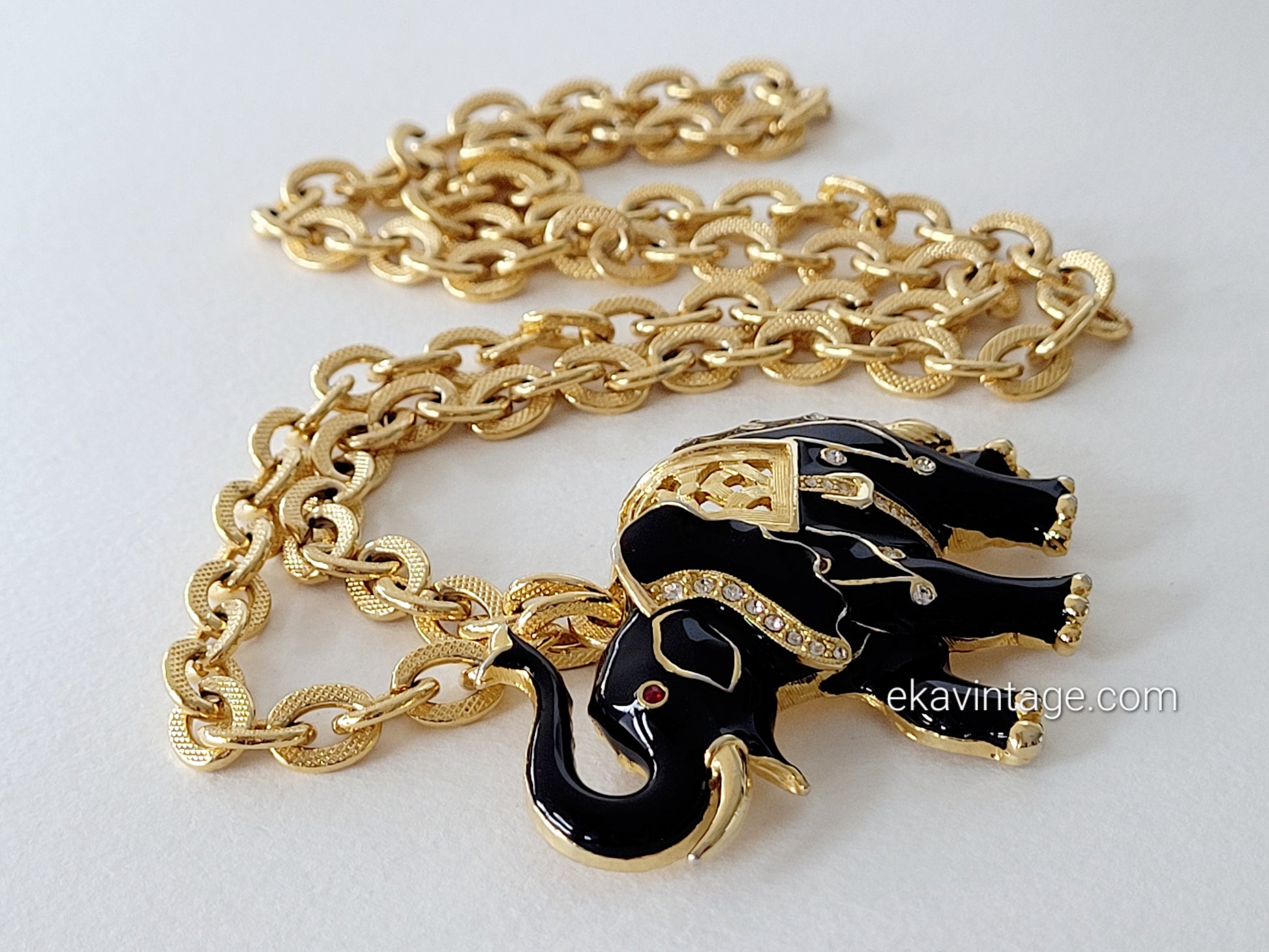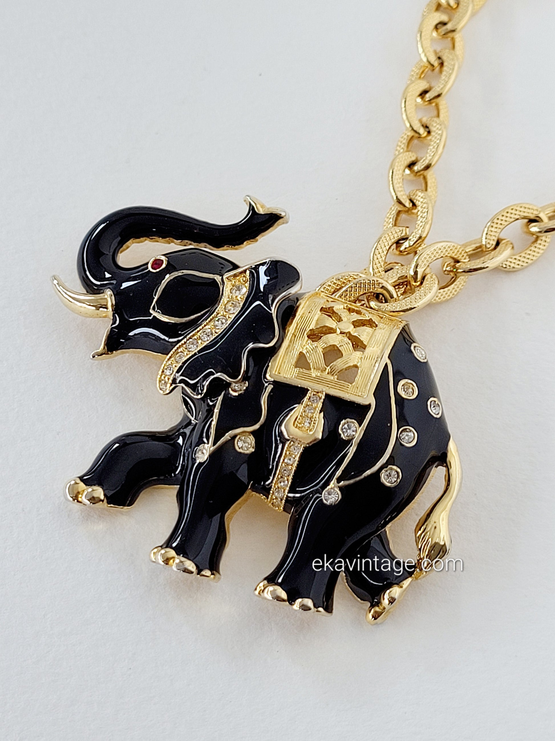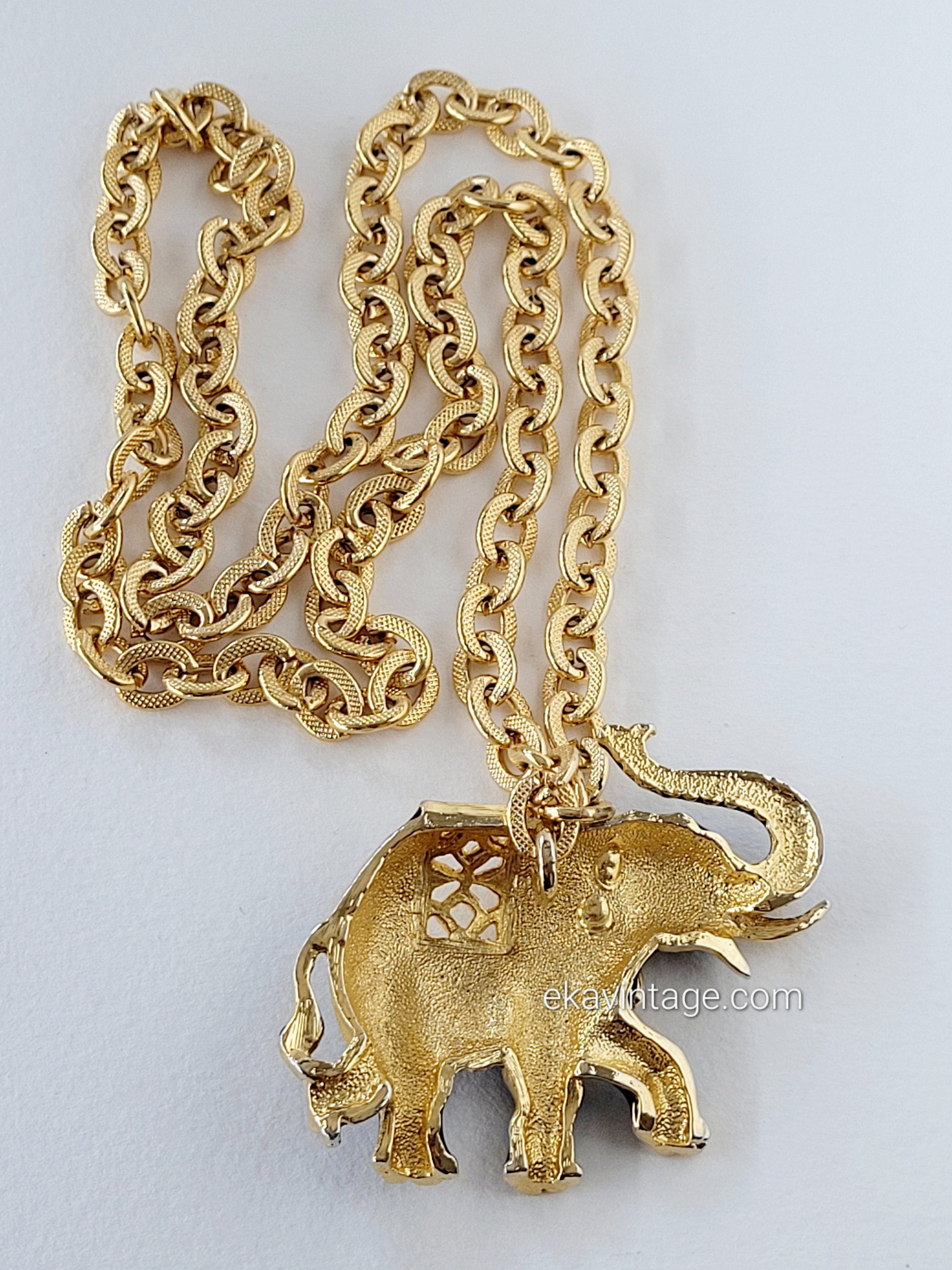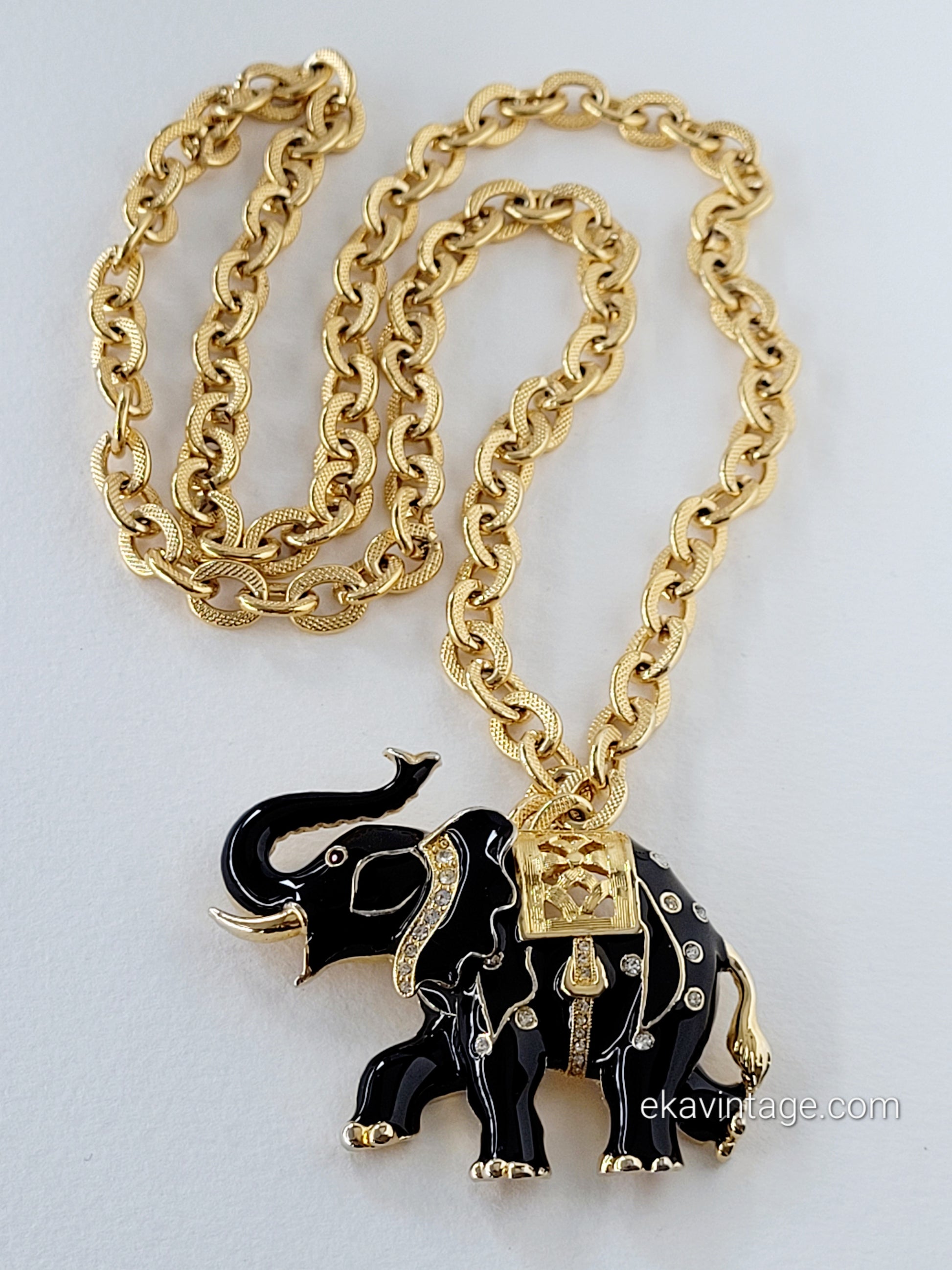 Magnifique collier vintage avec un gros pendentif en forme d'éléphant.