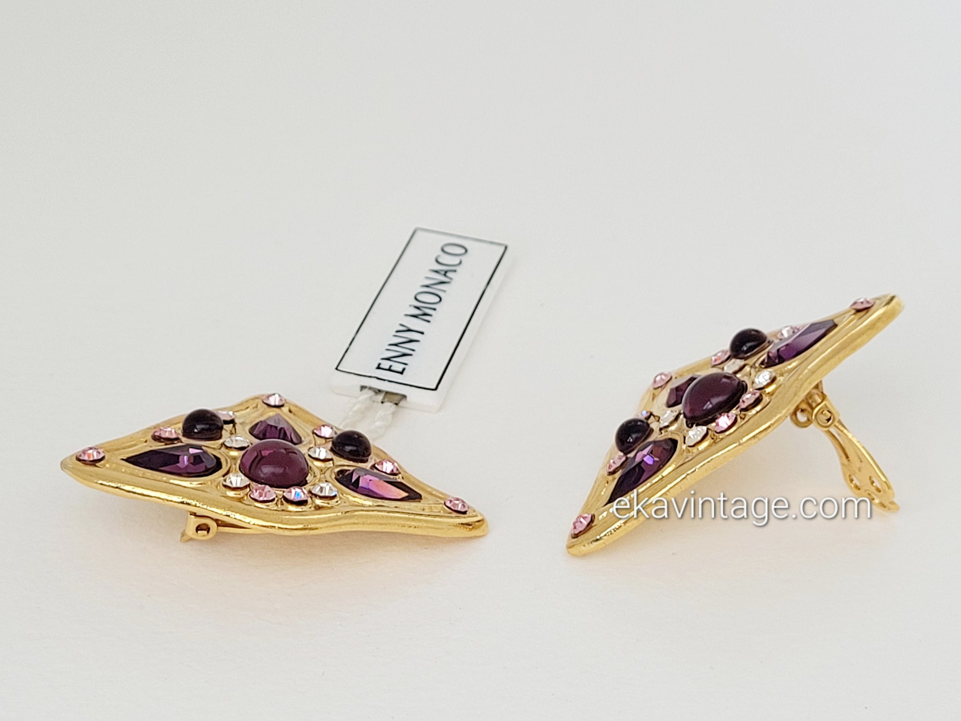 Très belles et authentiques boucles d'oreilles Enny Monaco, en plaqué or et cristaux Swarovski.