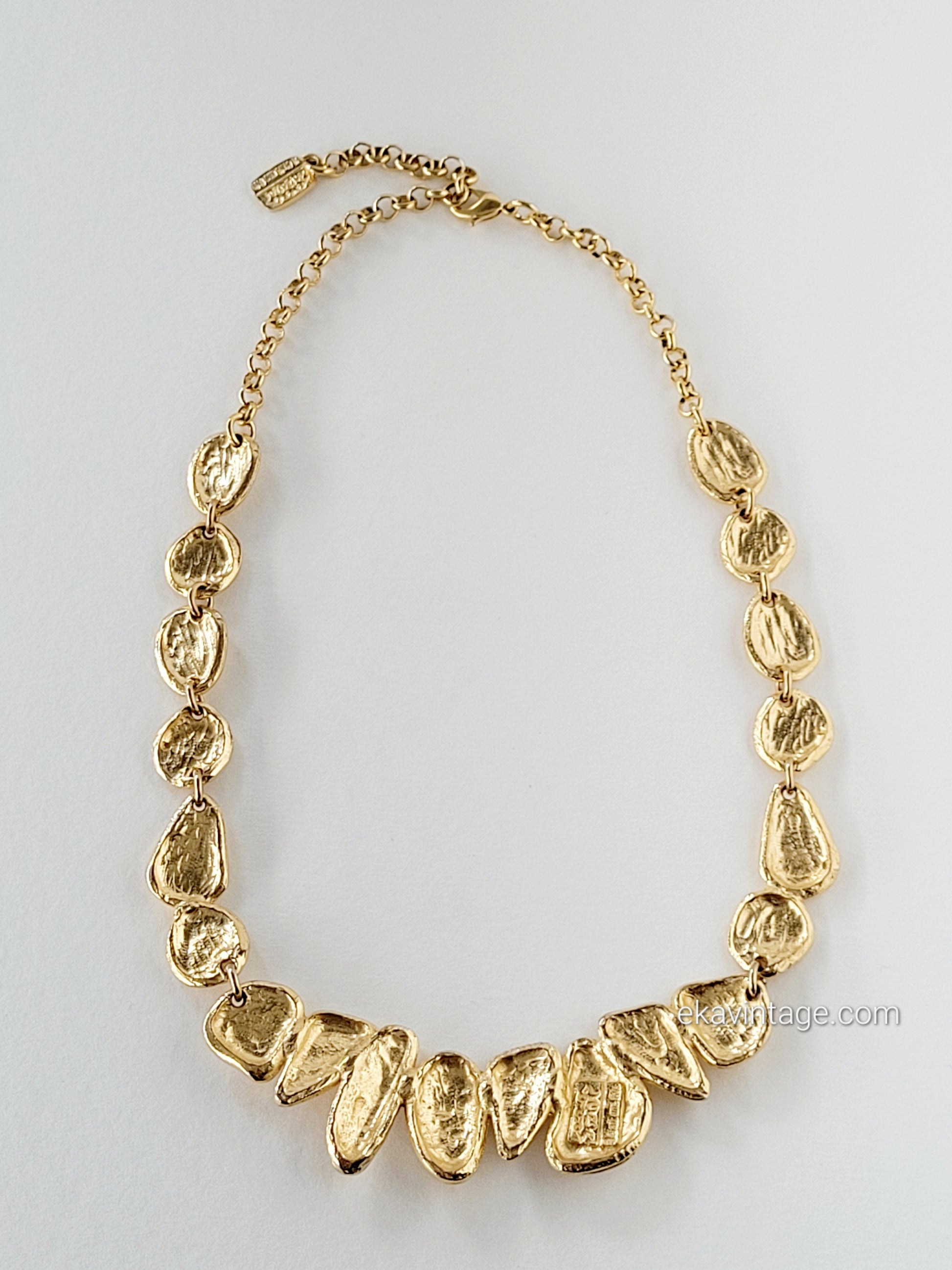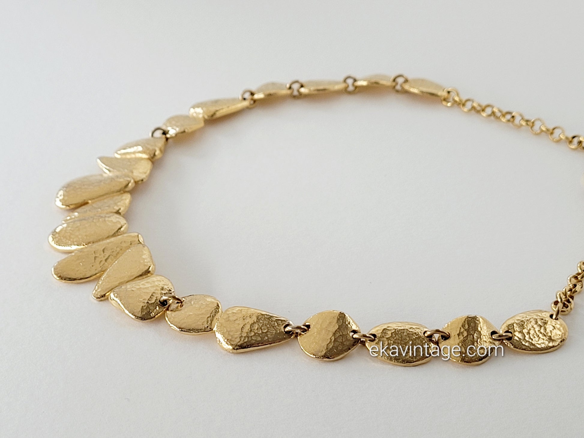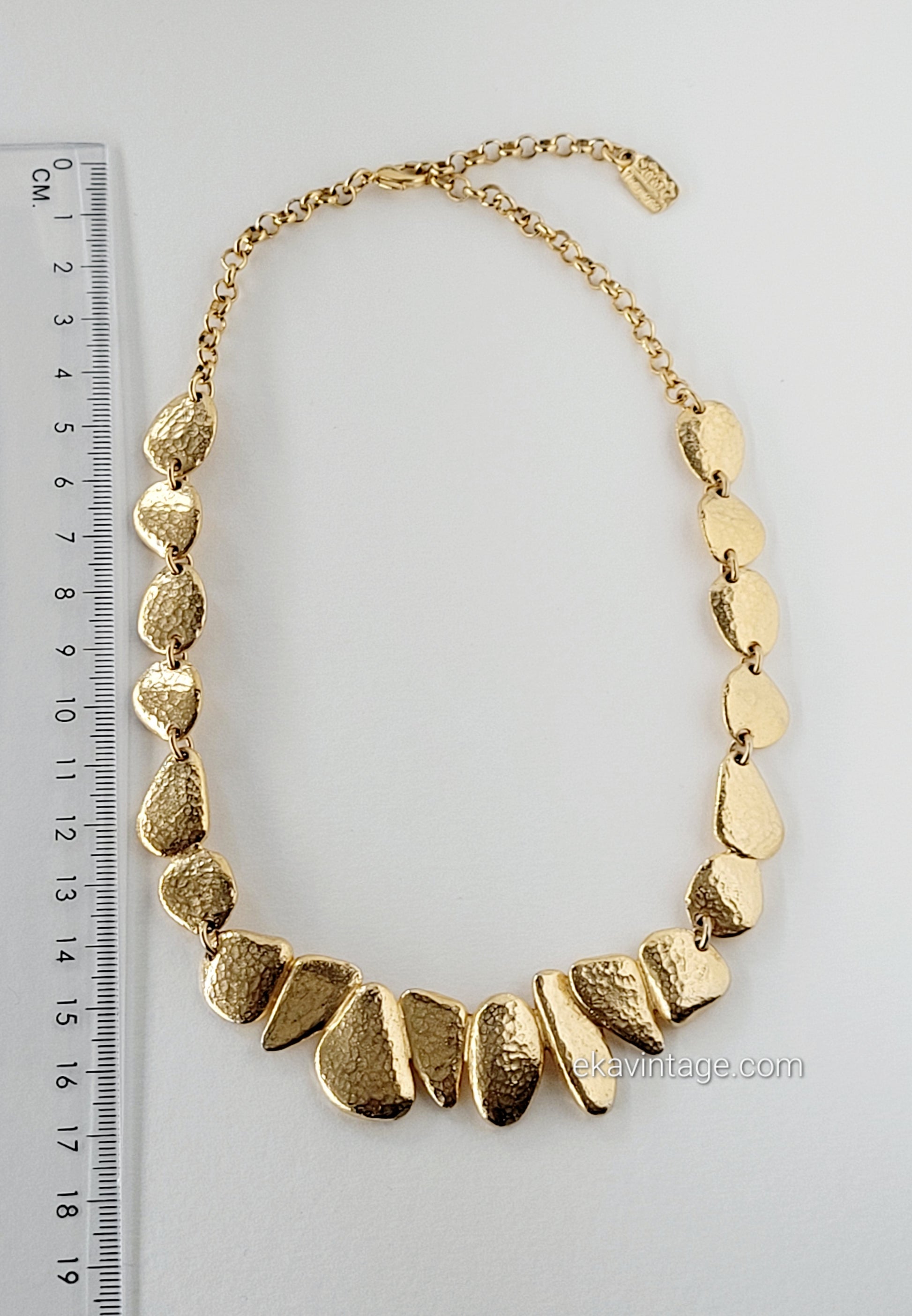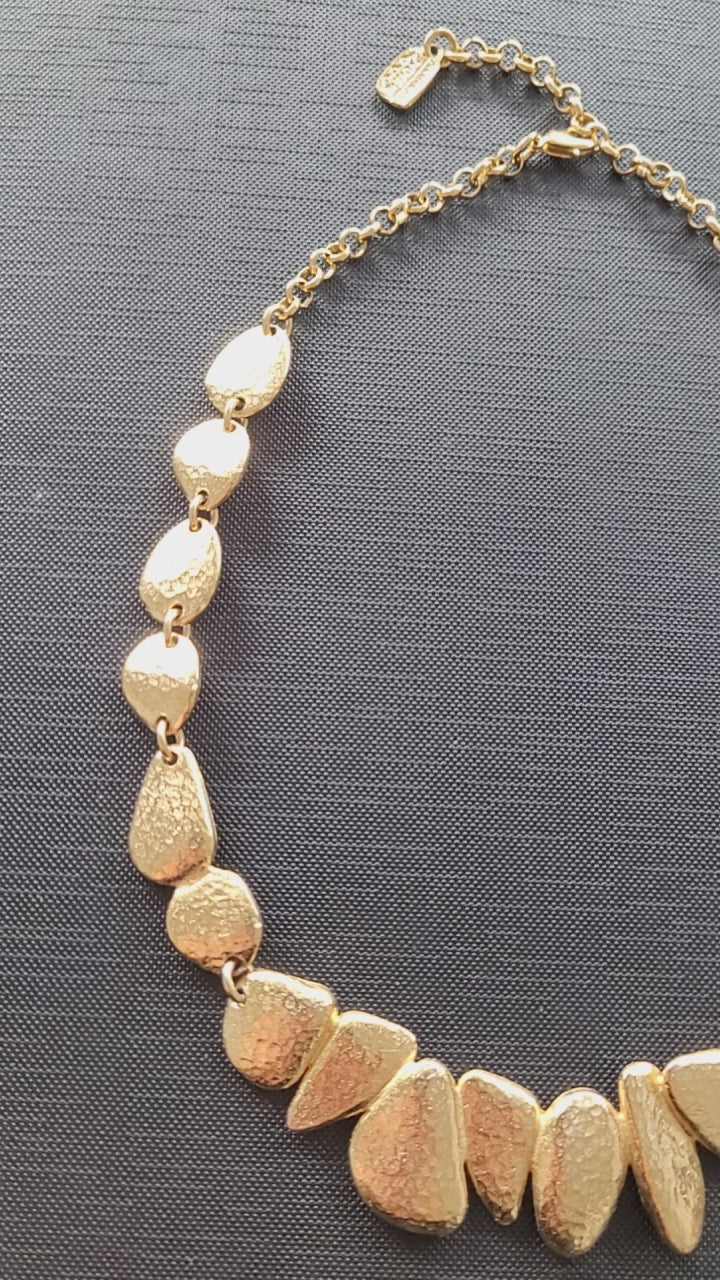 Magnifique collier Il était une fois vintage, en plaqué or martelé.