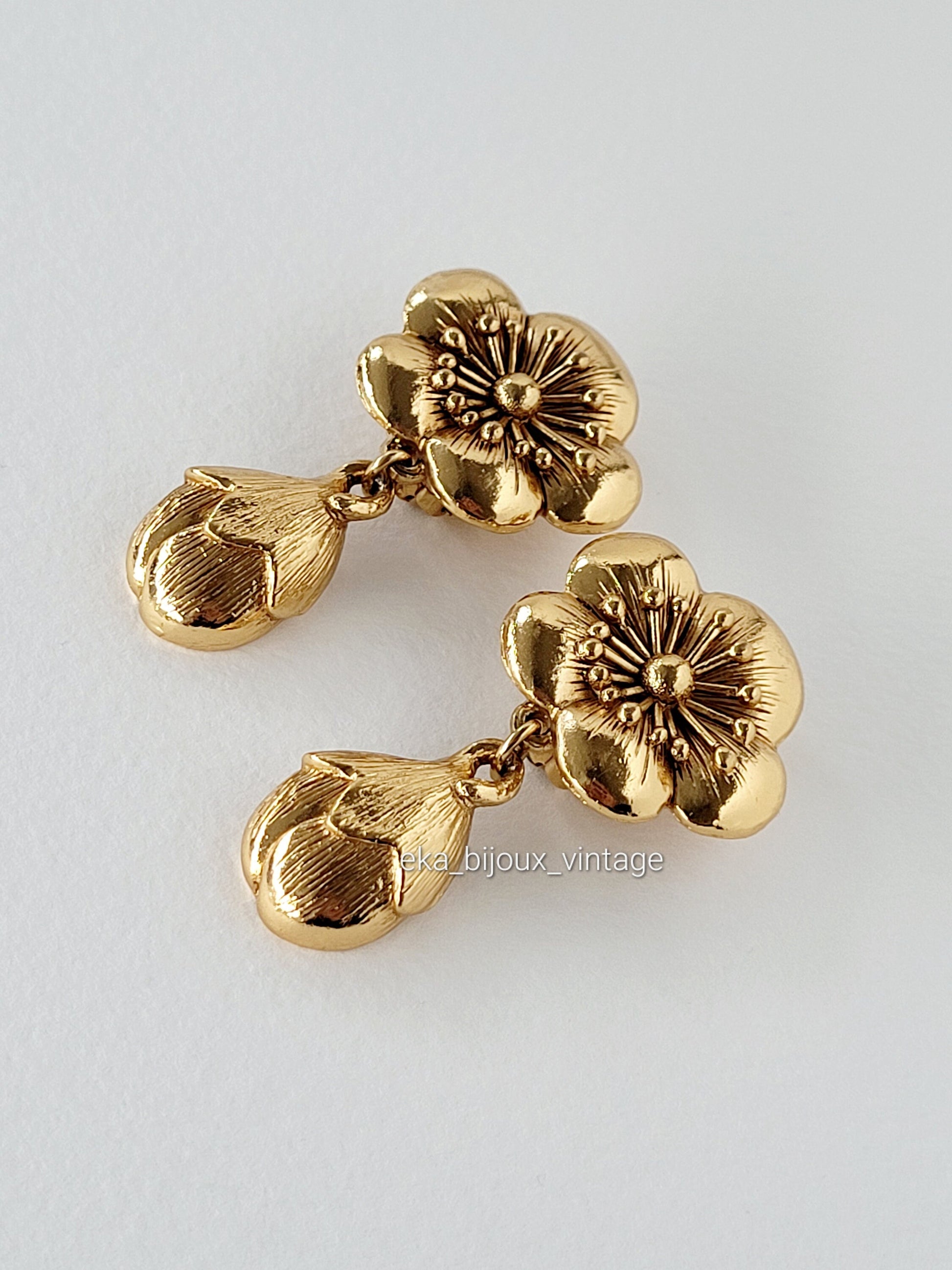 Très belles et authentiques boucles d'oreilles vintage Kenzo Paris en plaqué or.