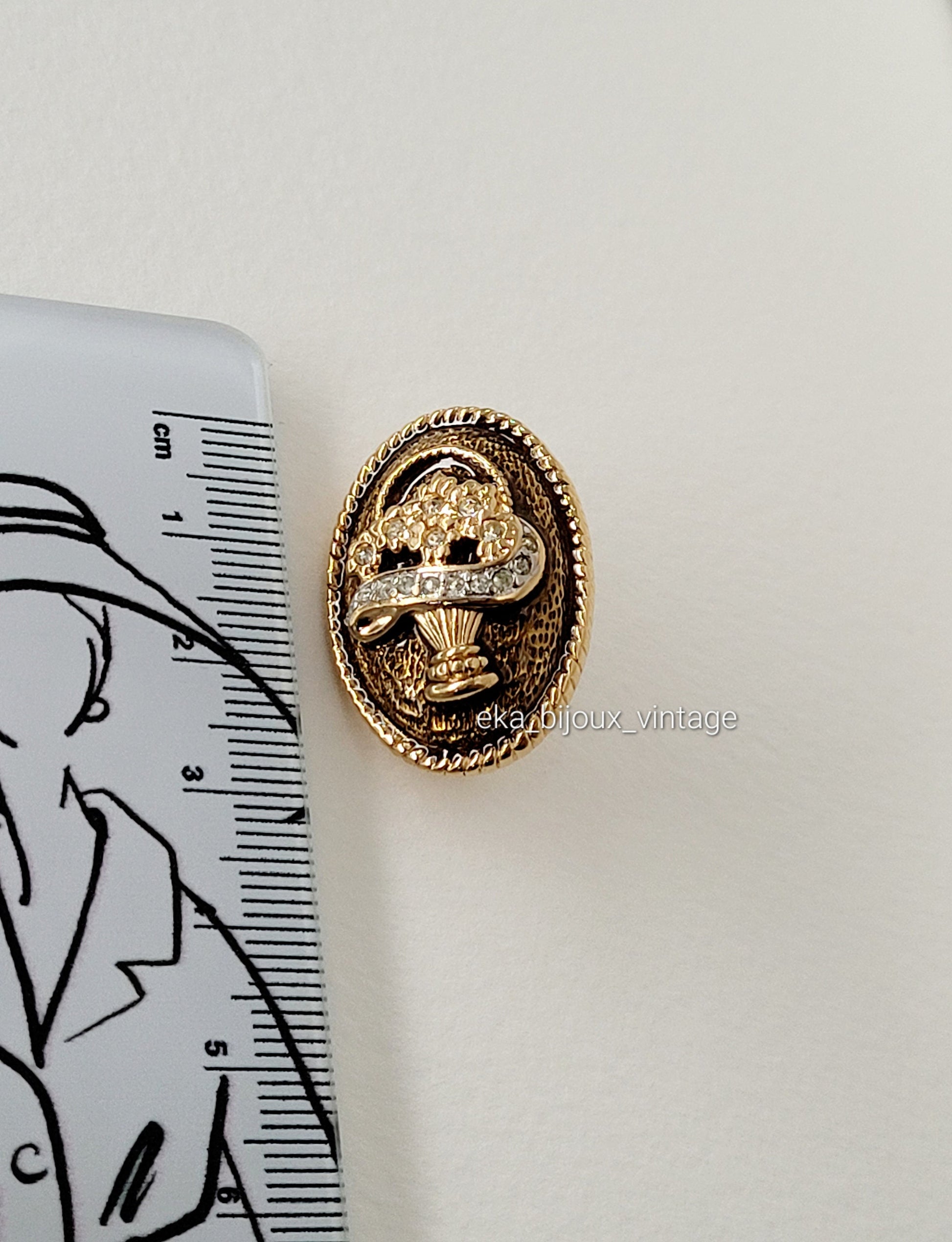 Très belles boucles d'oreilles vintage Nina Ricci, en plaqué or, cristaux et émail.